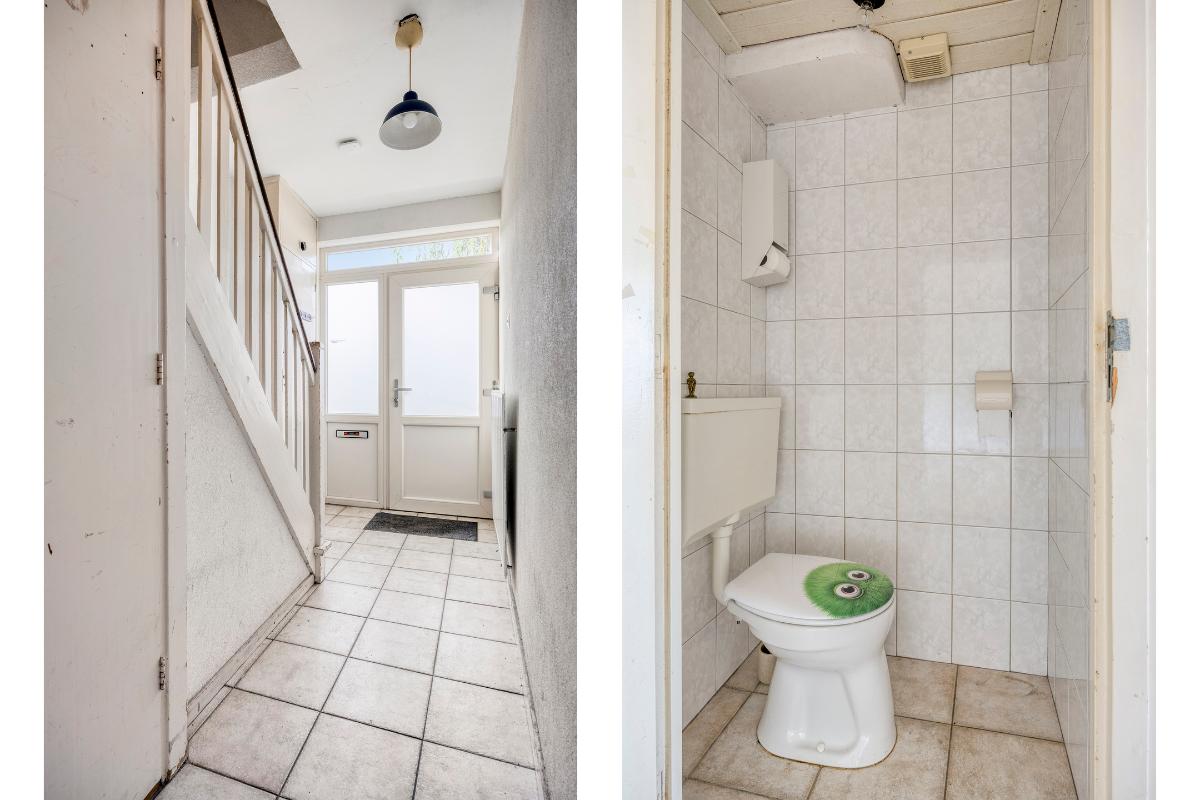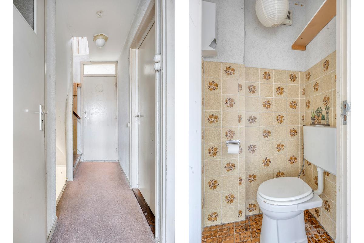 Separate toilet Het toilet beschikt over een staand closet en betegelde wanden en vloer. Deze ruimte is gedateerd en biedt mogelijkheden voor modernisering.
