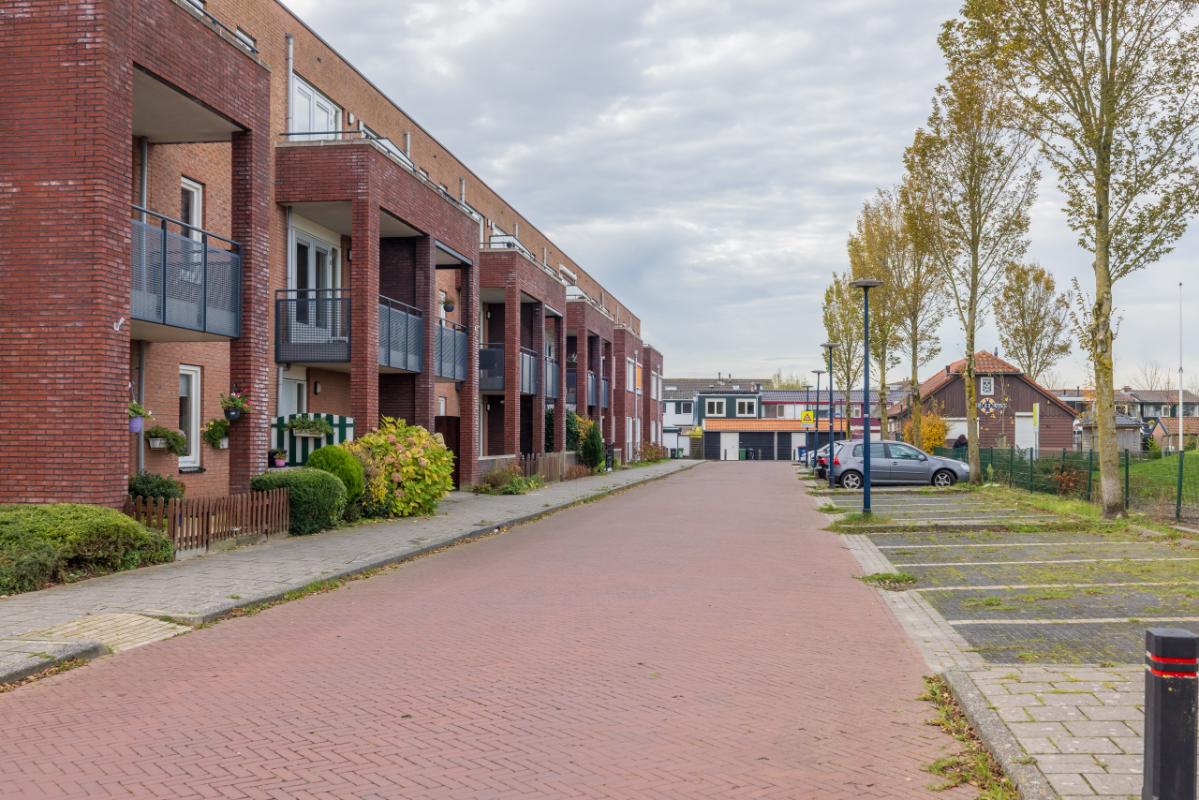 Buitenruimte Het appartement heeft een fijn terras van 7 m² op het noordwesten, met uitzicht op de speeltuin en de omliggende weilanden. Het terras is deels overkapt, zodat je hier zorgeloos van het buitenleven en mooie zonsondergangen kunt genieten.