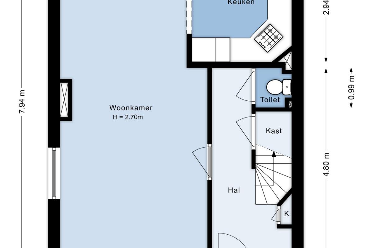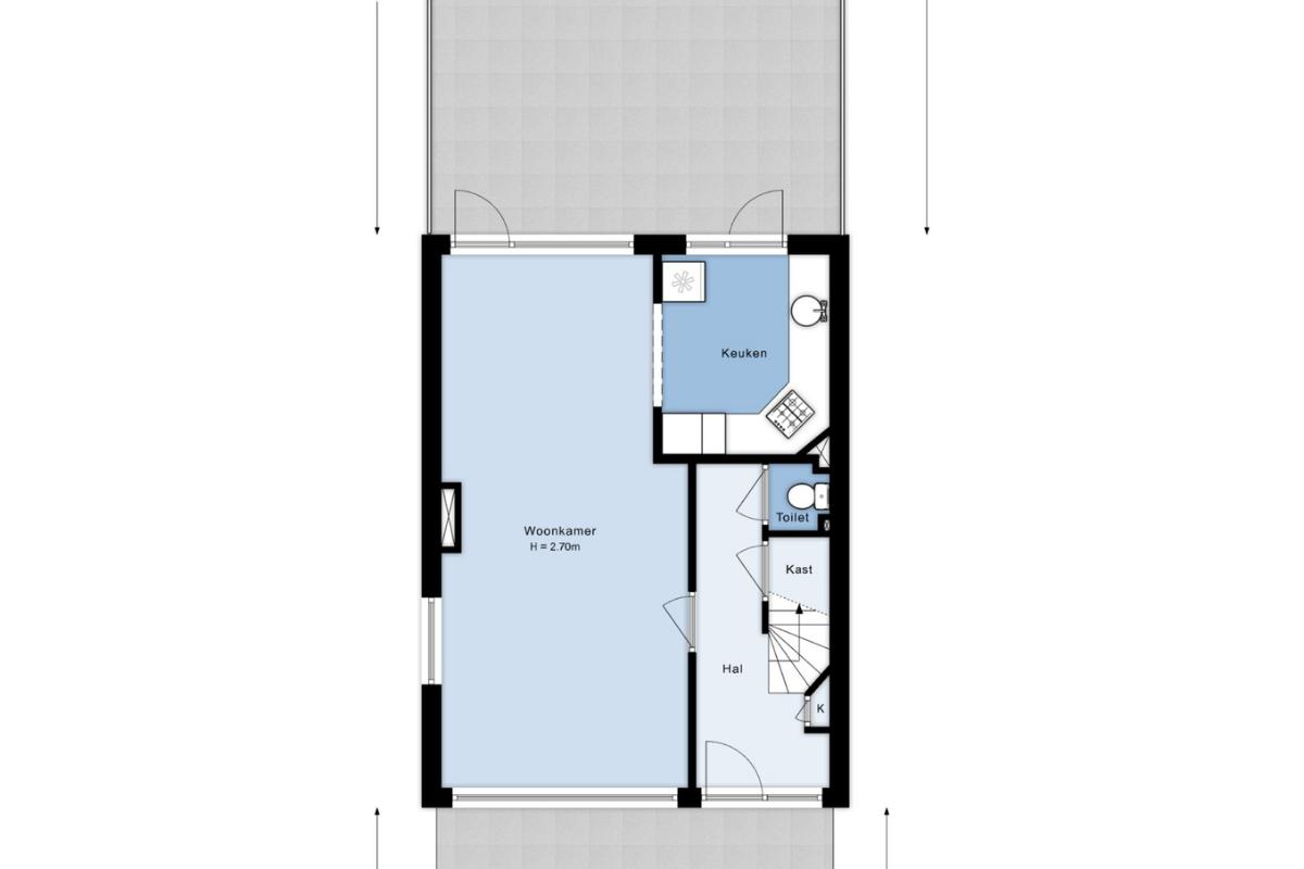 Indeling begane grond: Via de entree komt u in de hal, voorzien van een trapkast met praktische bergruimte en een toiletruimte. Vanuit de hal bereikt u de lichte doorzonwoonkamer, waar de grote ramen en het extra zijraam zorgen voor een aangename lichtinval. De half open keuken in hoekopstelling is voorzien van een oven, 4-pits gaskookplaat en vaatwasser. Zowel vanuit de woonkamer als vanuit de keuken is er toegang tot de zonnige achtertuin.