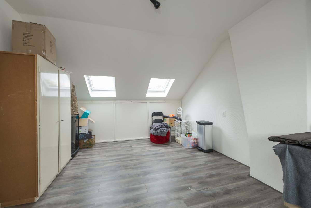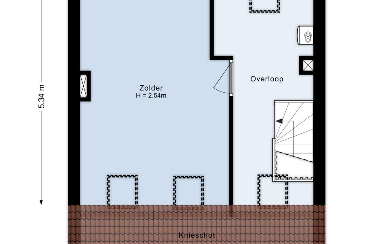 2e Etage: De ruime overloop is voorzien van twee dakvensters, waardoor ook deze verdieping aangenaam licht is. Hier vindt u tevens de aansluitingen voor de wasmachine en droger, evenals de opstelplaats van de CV-combiketel (Vaillant, 2014). De royale zolderkamer beschikt over een dakkapel en extra dakvensters, wat zorgt voor een lichte en veelzijdige ruimte die uitstekend kan dienen als slaapkamer, werkkamer of hobbyruimte. Tevens veel bergruimte achter de knieschotten.