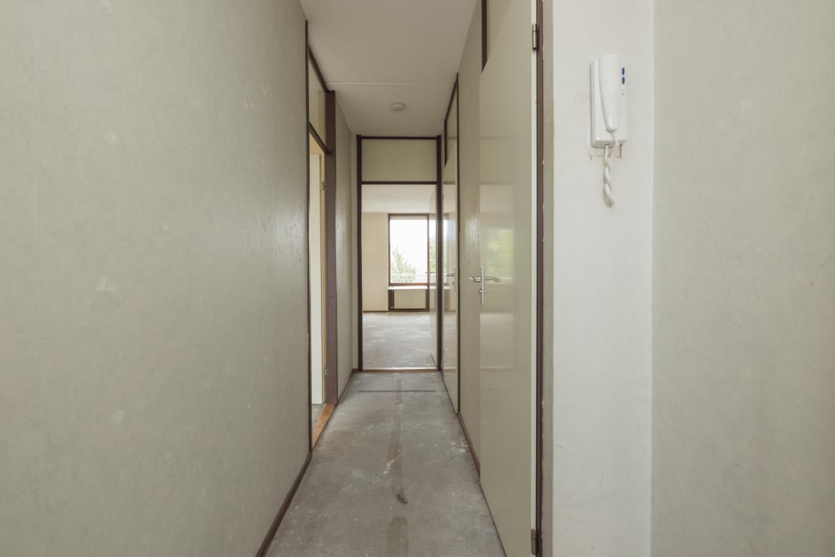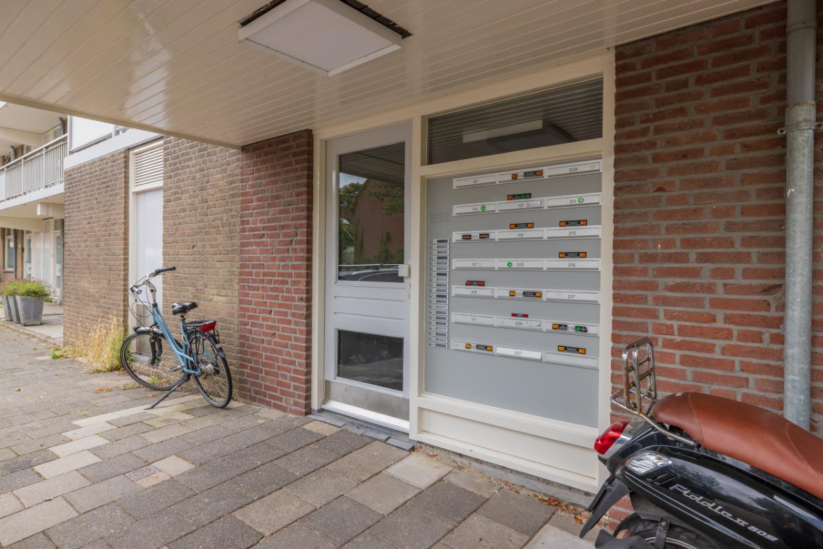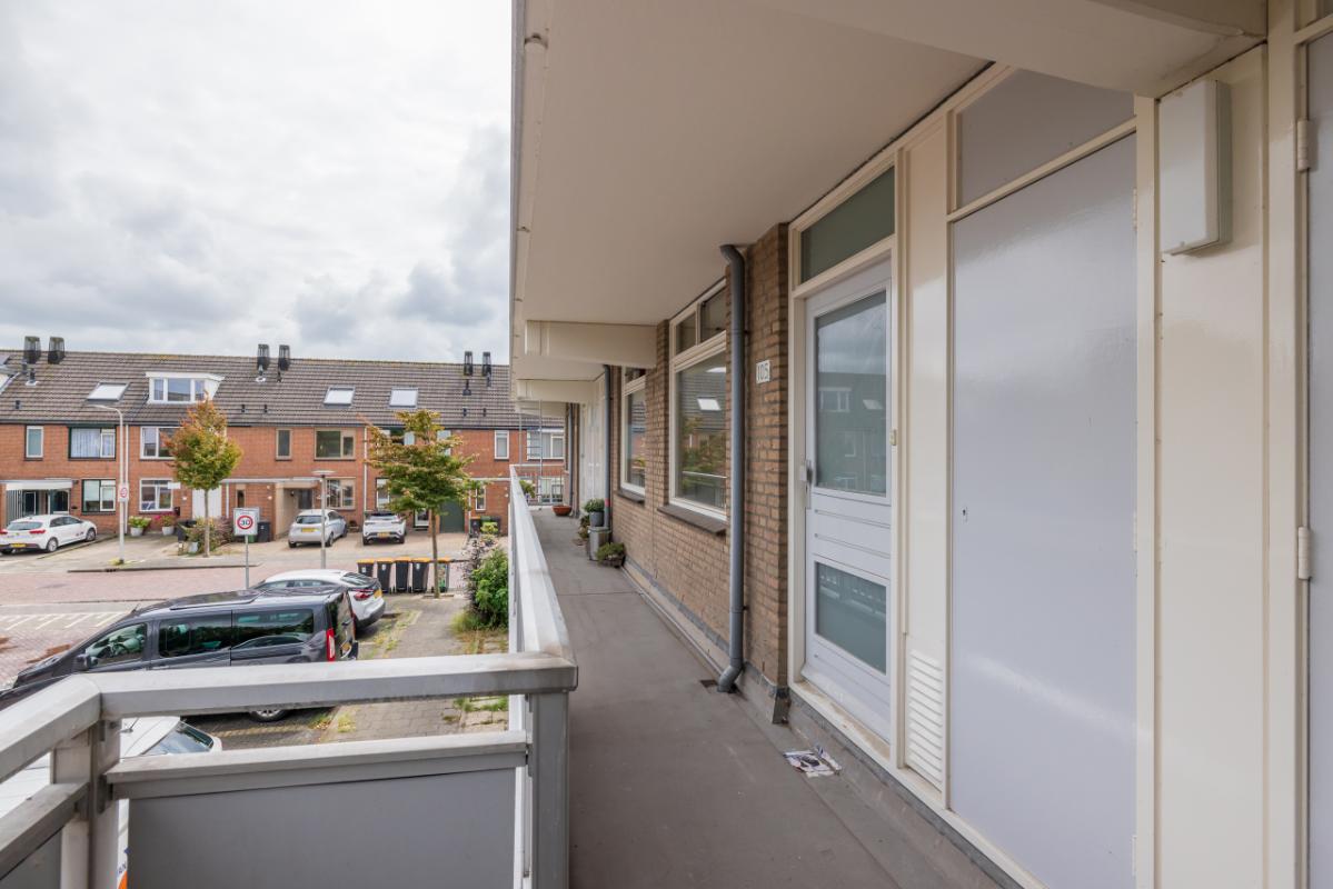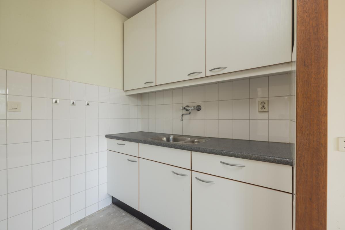 Indeling 1e etage: Entree, hal, toilet met fonteintje, vaste kast met opstelling van CV-combiketel en mechanische ventilatie-unit. De badkamer beschikt over een wastafel, inloopdouche en een aansluiting voor de wasmachine. De ruime slaapkamer bevindt zich aan de voorzijde van het appartement. De woonkamer aan de achterzijde is heerlijk licht met half-open keuken met keukenblok en deur naar het balkon op het zuidwesten.