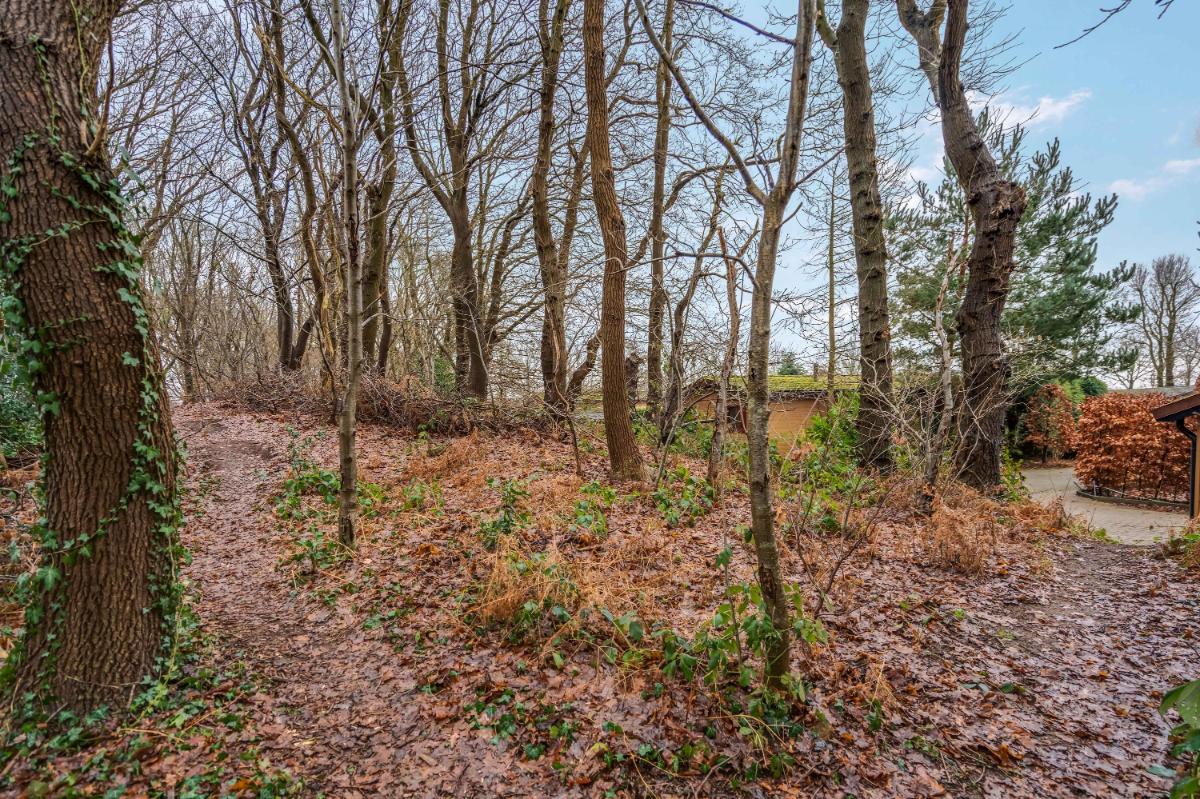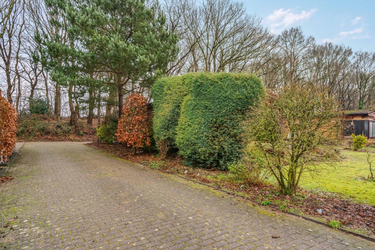 Buitenleven De buitenruimte is zonder twijfel een van de grootste pluspunten van dit chalet. Het perceel is royaal en groen, met een tuin die rondom het chalet loopt. Aan de achterzijde grenst het perceel aan een bosrand, wat zorgt voor een beschutte en rustige ligging.
