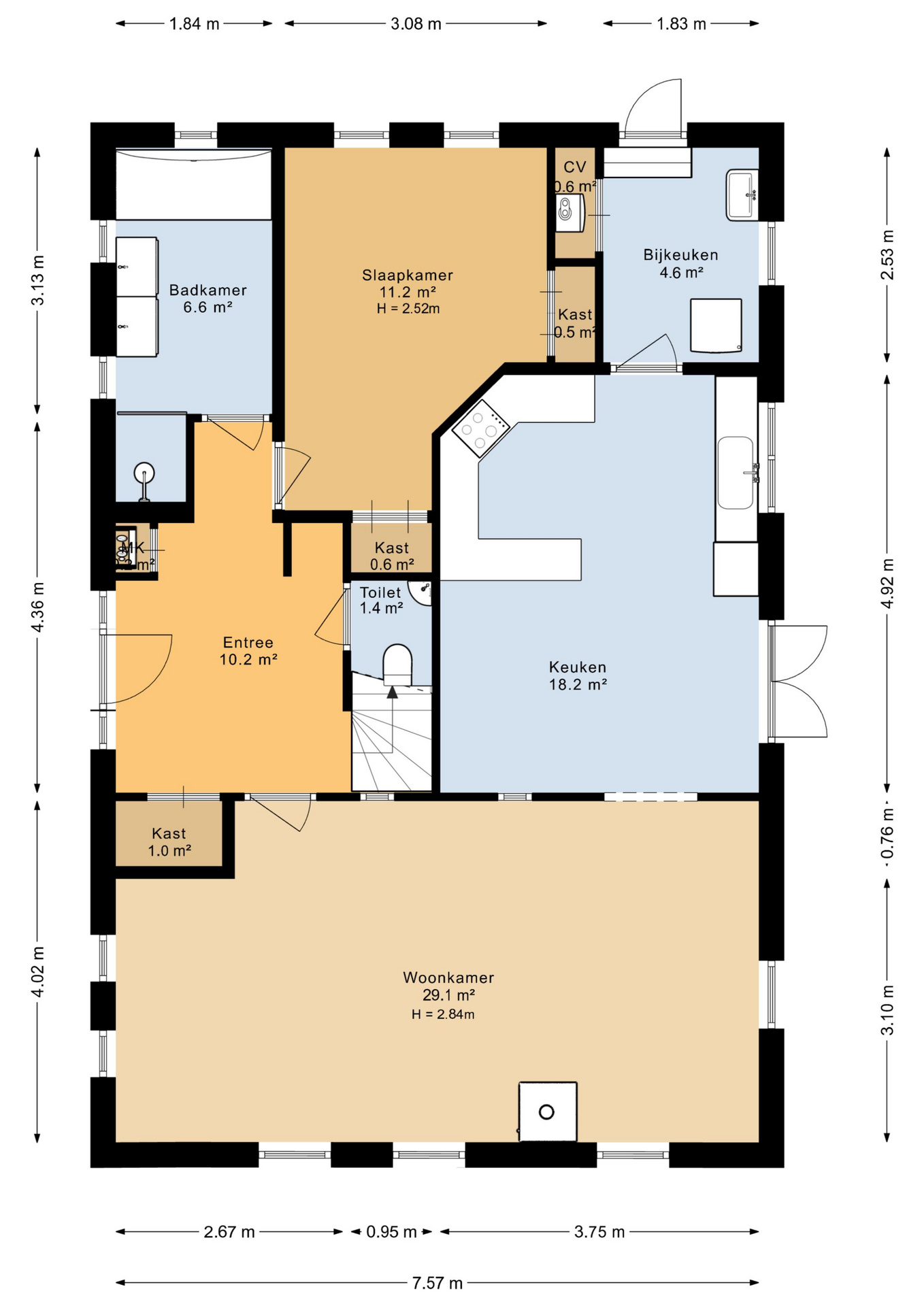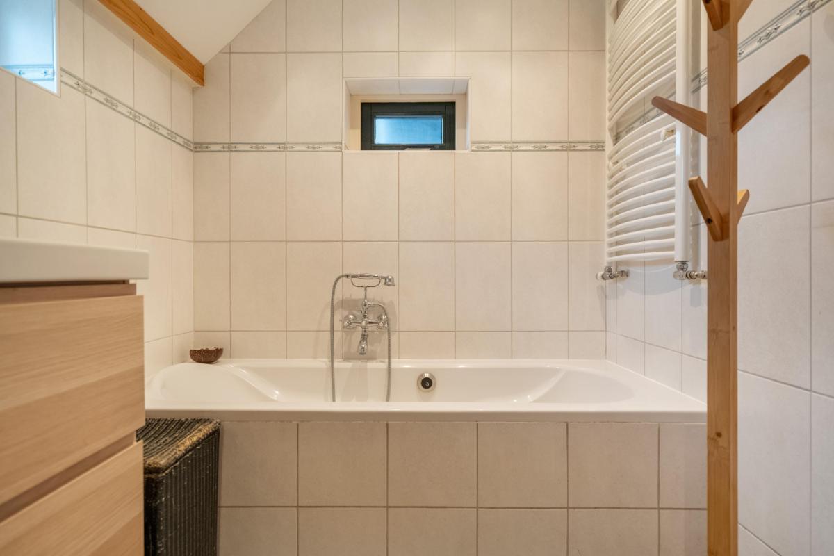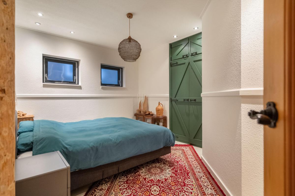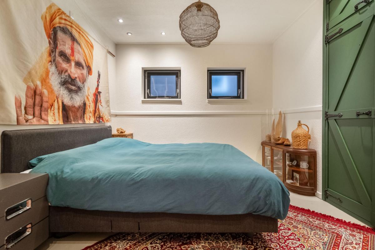 De bijkeuken biedt handige kastruimte en aansluitingen voor witgoed, en verbindt binnen met buiten – perfect voor wie houdt van praktisch gemak. Aan de achterzijde bevindt zich een ruime slaapkamer met directe toegang tot de moderne badkamer, compleet met ligbad, inloopdouche en dubbele wastafel. Dankzij deze indeling is gelijkvloers wonen hier moeiteloos mogelijk.