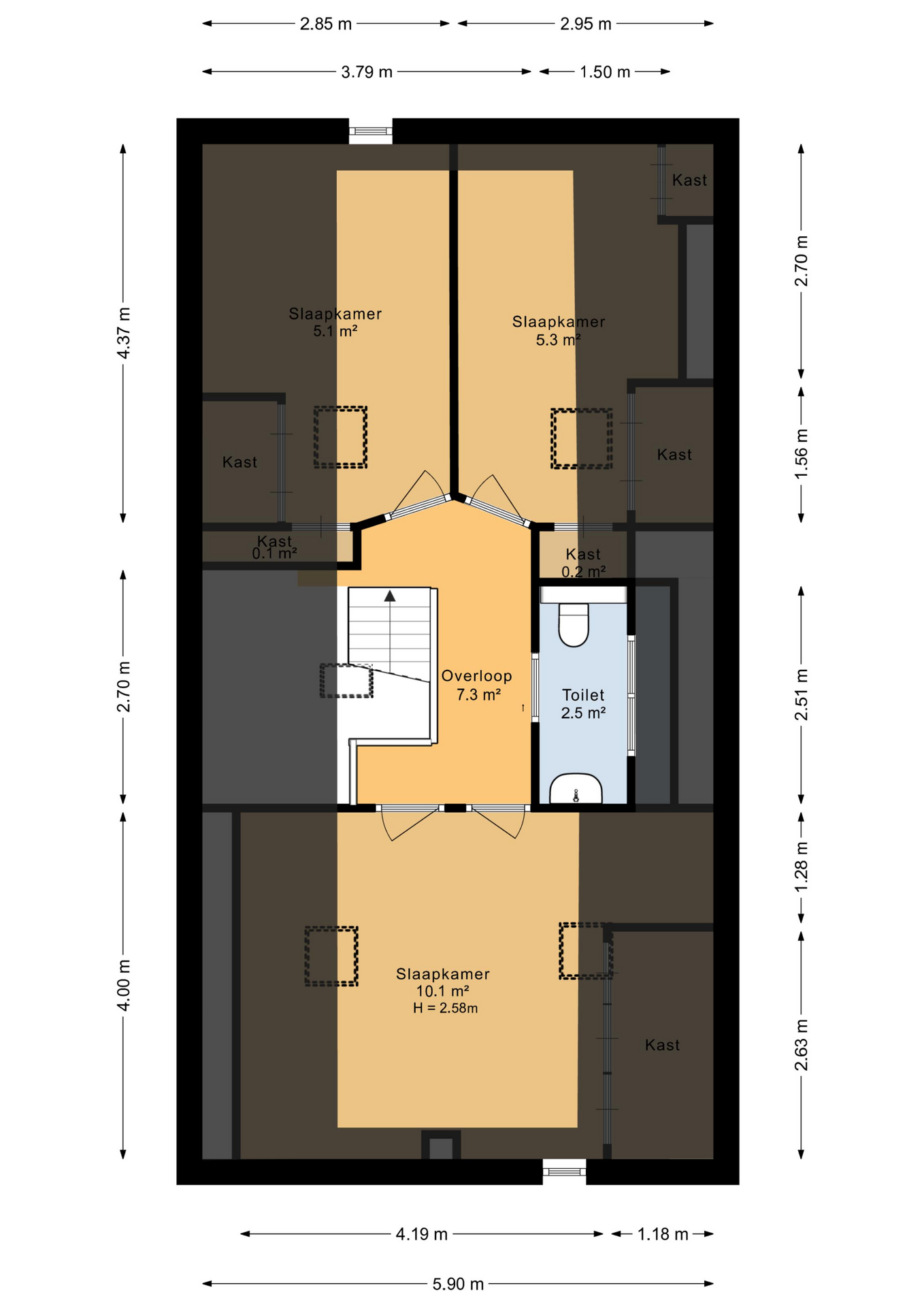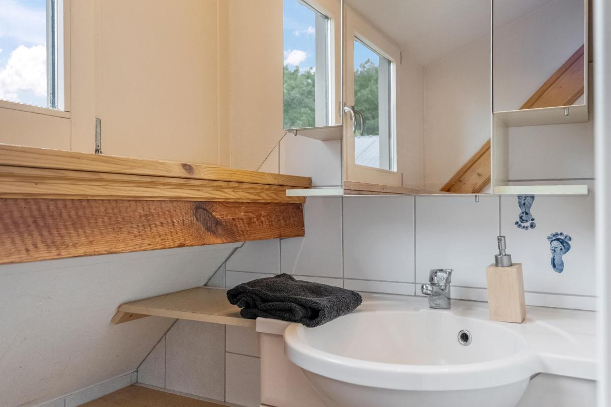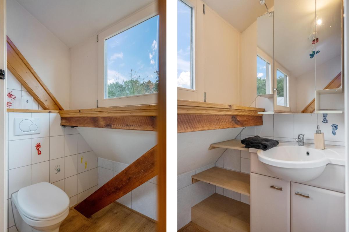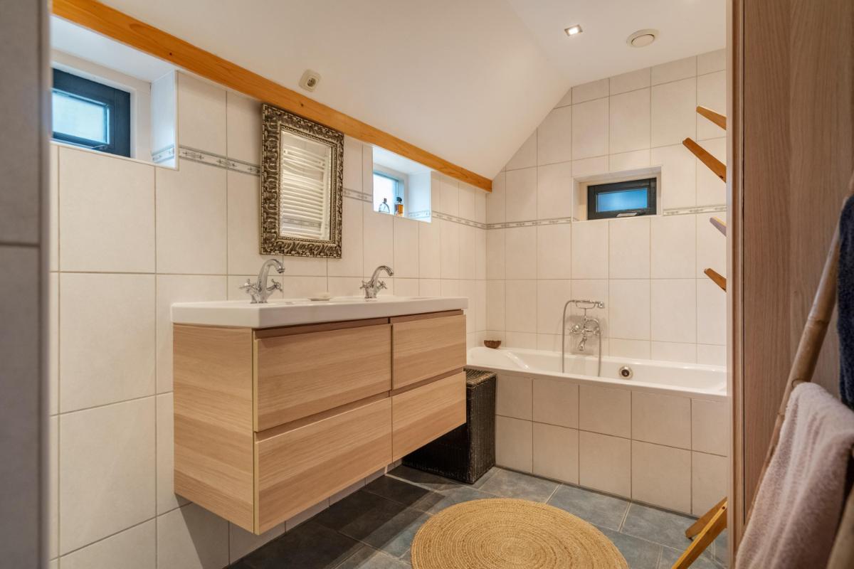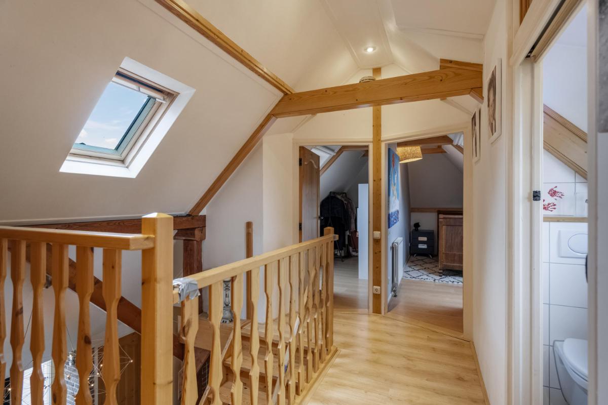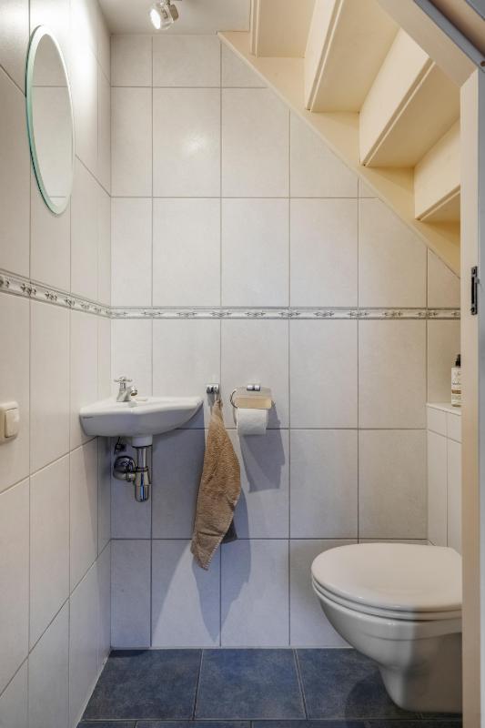 Verdieping met rust en flexibiliteit Boven vind je drie lichte, comfortabele slaapkamers met volop opbergruimte onder de schuine kap. De sanitaire ruimte op deze verdieping is voorzien van een wandcloset, wastafel en spiegelkast – keurig verzorgd en efficiënt ingedeeld. De verdieping leent zich uitstekend voor gezinnen, logees of een werkplek aan huis.