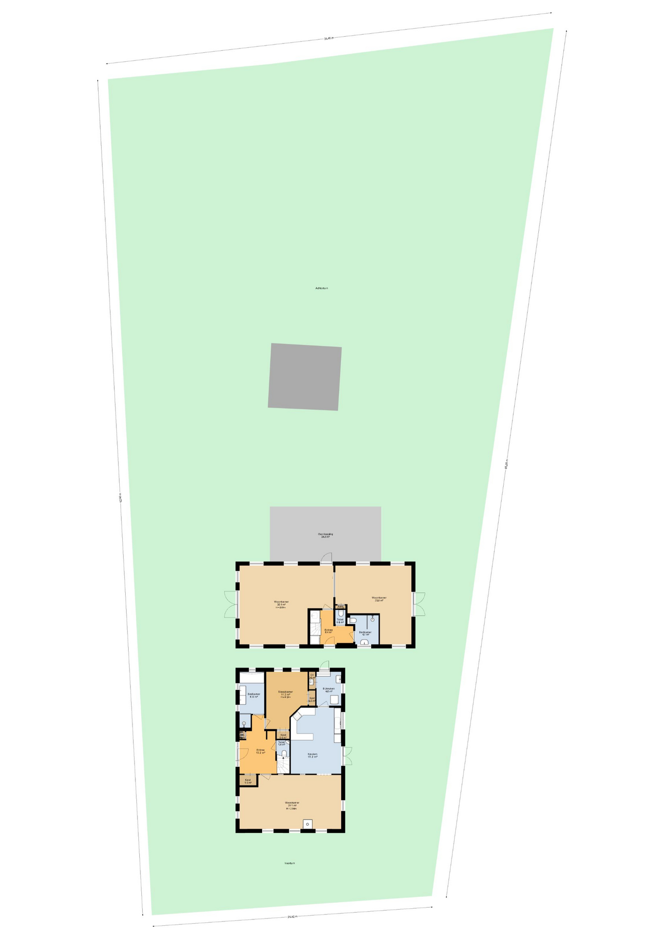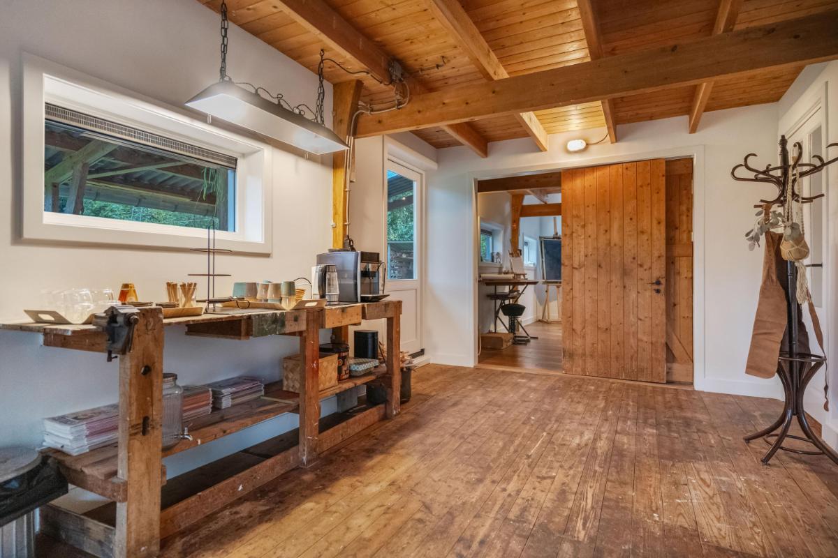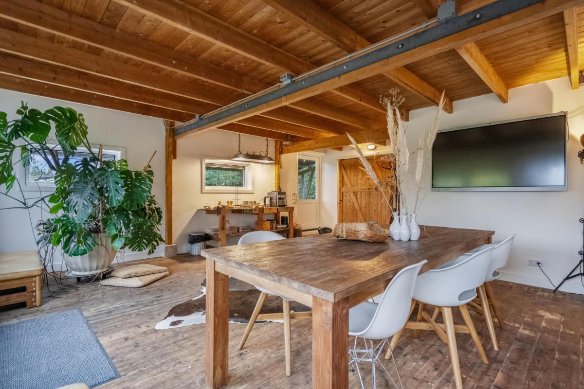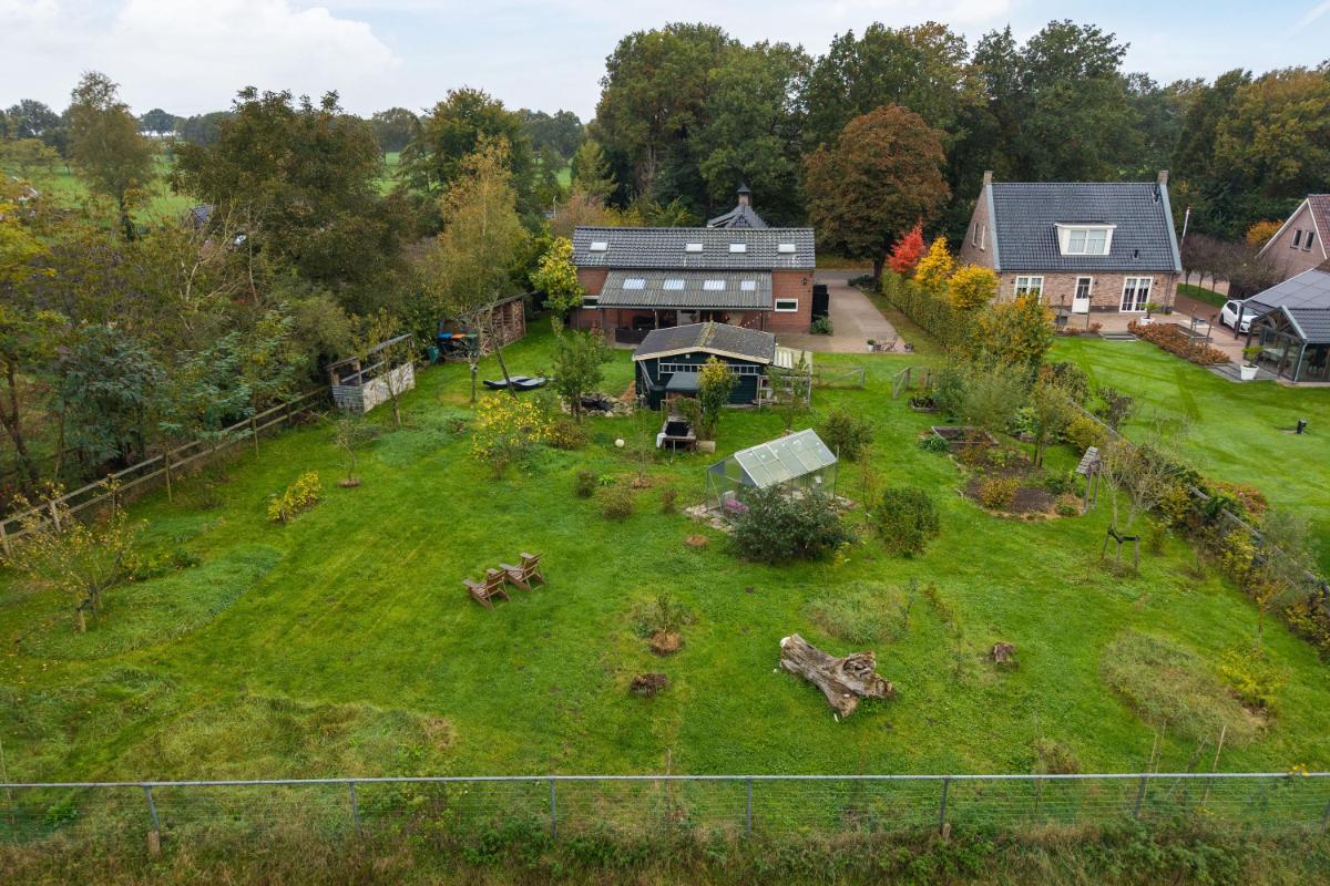 Bijzonderheden in één oogopslag • Vrijstaande woonboerderij (bouwjaar 1952) op 1.607 m² eigen grond • Ca. 245 m² gebruiksoppervlakte, verdeeld over woning en bijgebouw • 11 kamers, 7 slaapkamers, 4 toiletten en 2 badkamers - Woonhuis: 4 slaapkamers: 1 badkamer, 2 (separate) toiletten - Gastenverblijf: 3 slaapkamers: 1 badkamer, 2 toiletten • Bijgebouw (ca. 60 m², verbouwd 2025) met twee zelfstandige delen • Gelijkvloers wonen mogelijk • Energielabel A, 22 zonnepanelen, volledige isolatie • Vloerverwarming en airco aanwezig • Elektrische installatie vernieuwd in 2025 • Tuin met biologische pluktuin, vijver, dompelbad, kas, houthok, overkapping en bosgrens • Parkeren op eigen erf (plaats voor zes auto’s) • Geschikt voor B&B, kantoor aan huis, atelier of mantelzorg