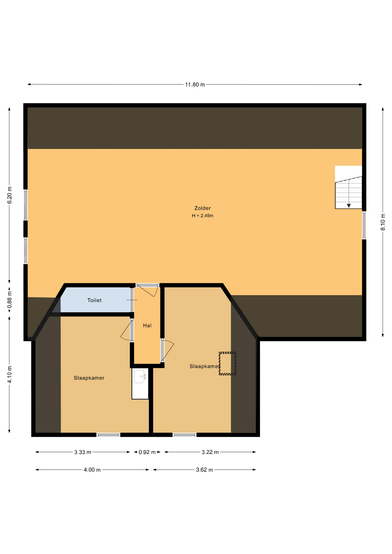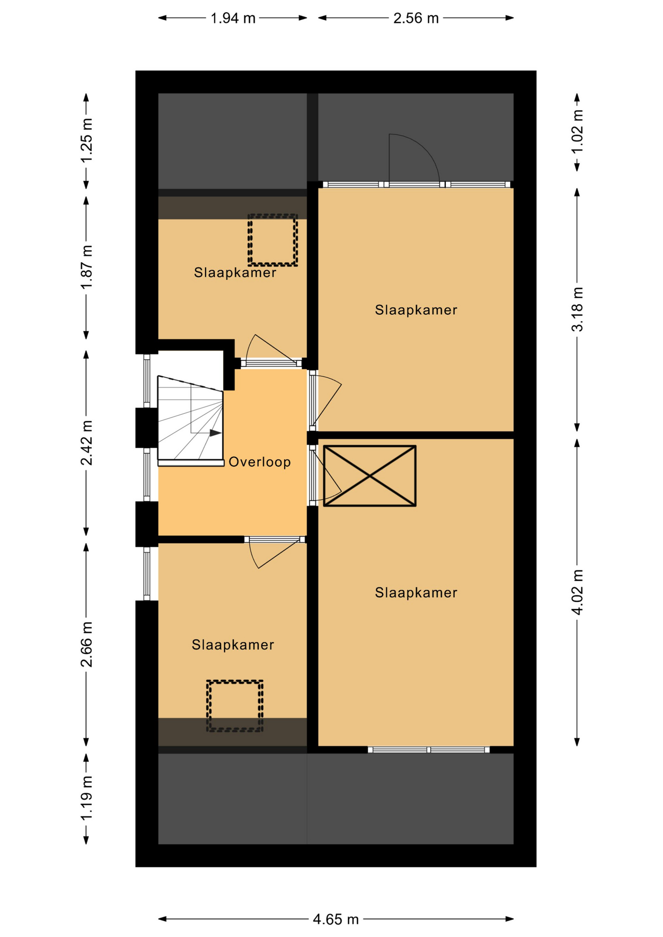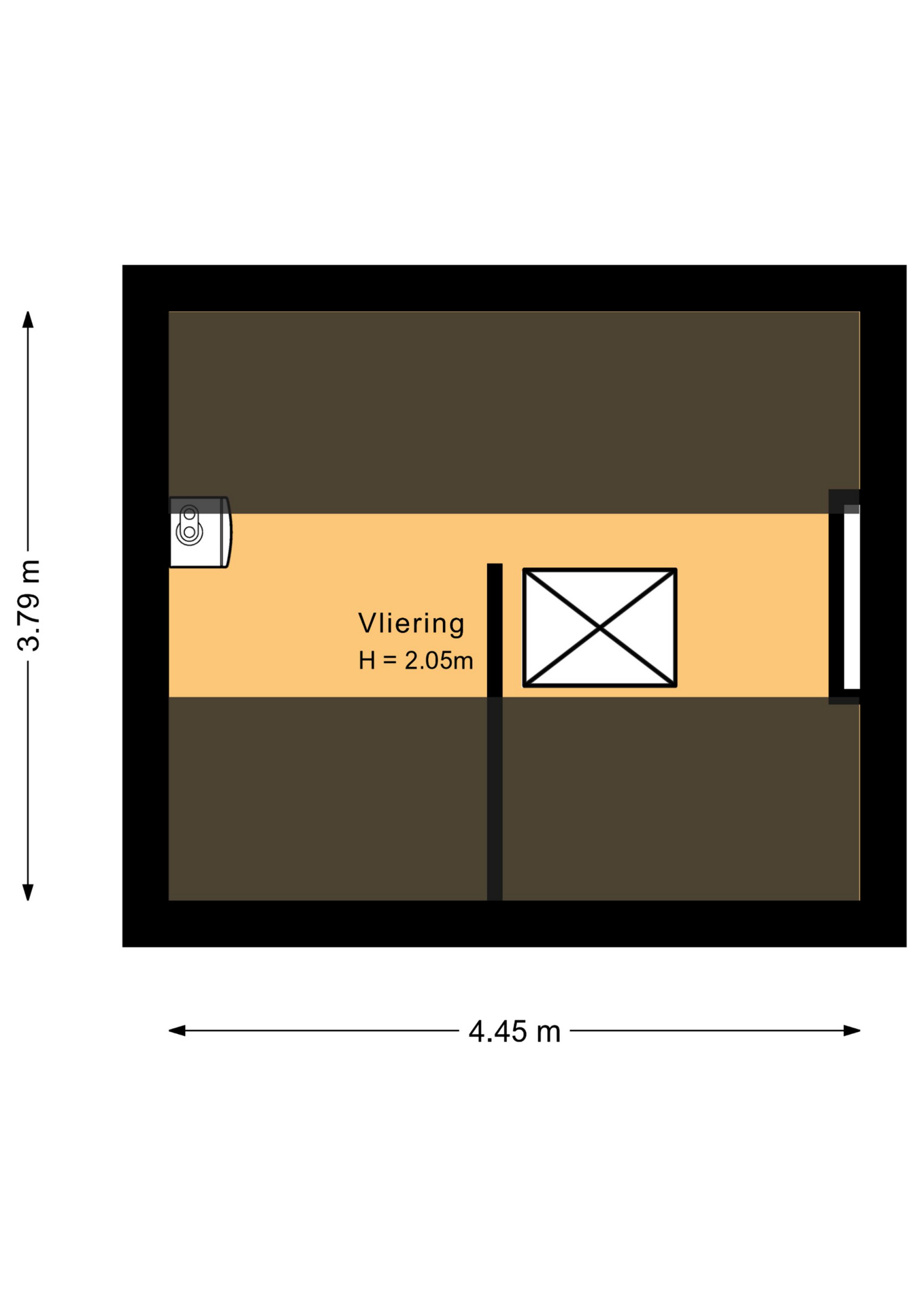 Zolder Via een vlizotrap bereik je de zolder van ca. 4,45 x 3,79 meter.