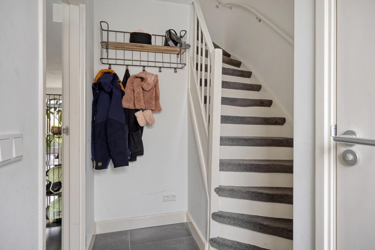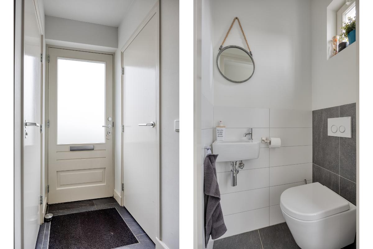 Begane grond Via de entree kom je in de hal met meterkast, trapopgang en een moderne toiletruimte, voorzien van een wandcloset en fonteintje.