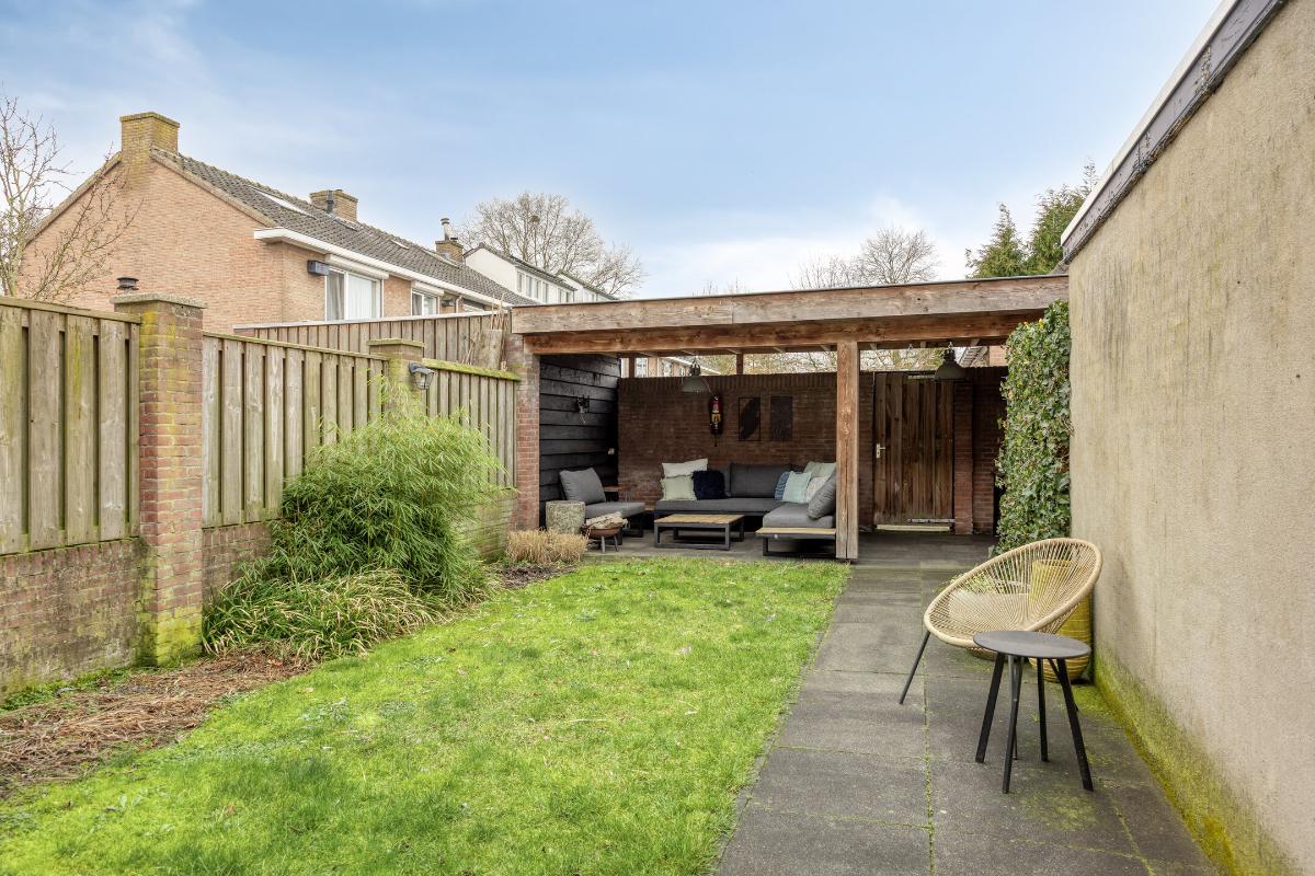 Tuin De achtertuin is gelegen op het westen, waardoor je hier volop van de zon kunt genieten. De tuin is verzorgd aangelegd met een gazon en borders met vaste beplanting. De ruime overkapping maakt het mogelijk om tot in de late uurtjes comfortabel buiten te zitten. In de tuin bevindt zich een nette stenen berging met elektra en een afgescheiden plek voor de kliko’s.