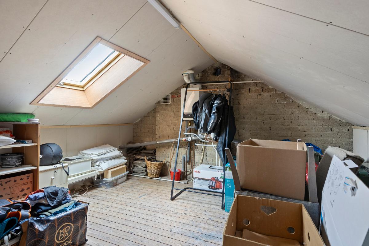 Tweede verdieping Middels een vaste trap bereik je de zolderverdieping. Deze ruimte biedt volop mogelijkheden, bijvoorbeeld voor het realiseren van een vierde slaapkamer, werkkamer of hobbyruimte. Ook vind je hier de opstelplaats voor de CV-ketel (Nefit Proline HR, 2016) en eventuele extra bergruimte.