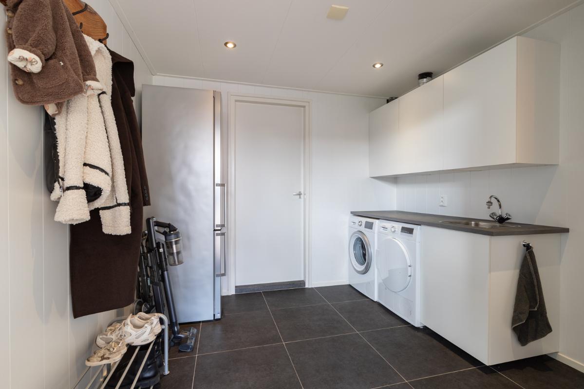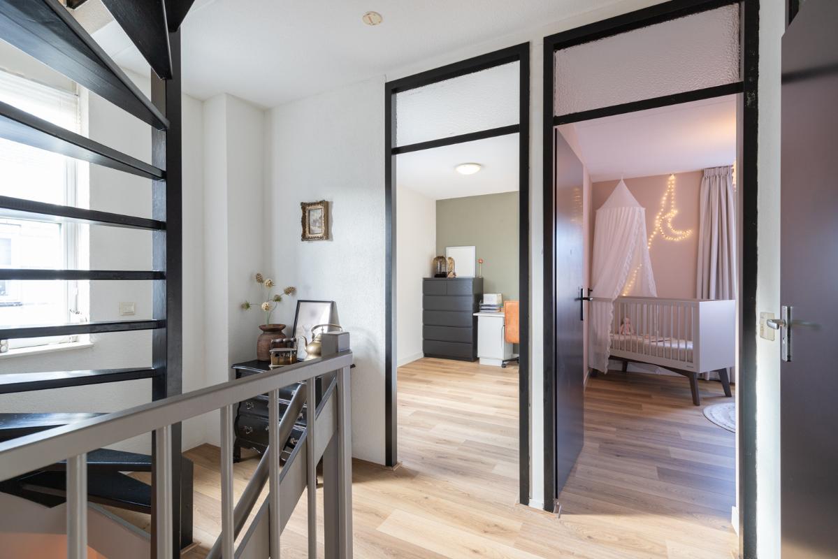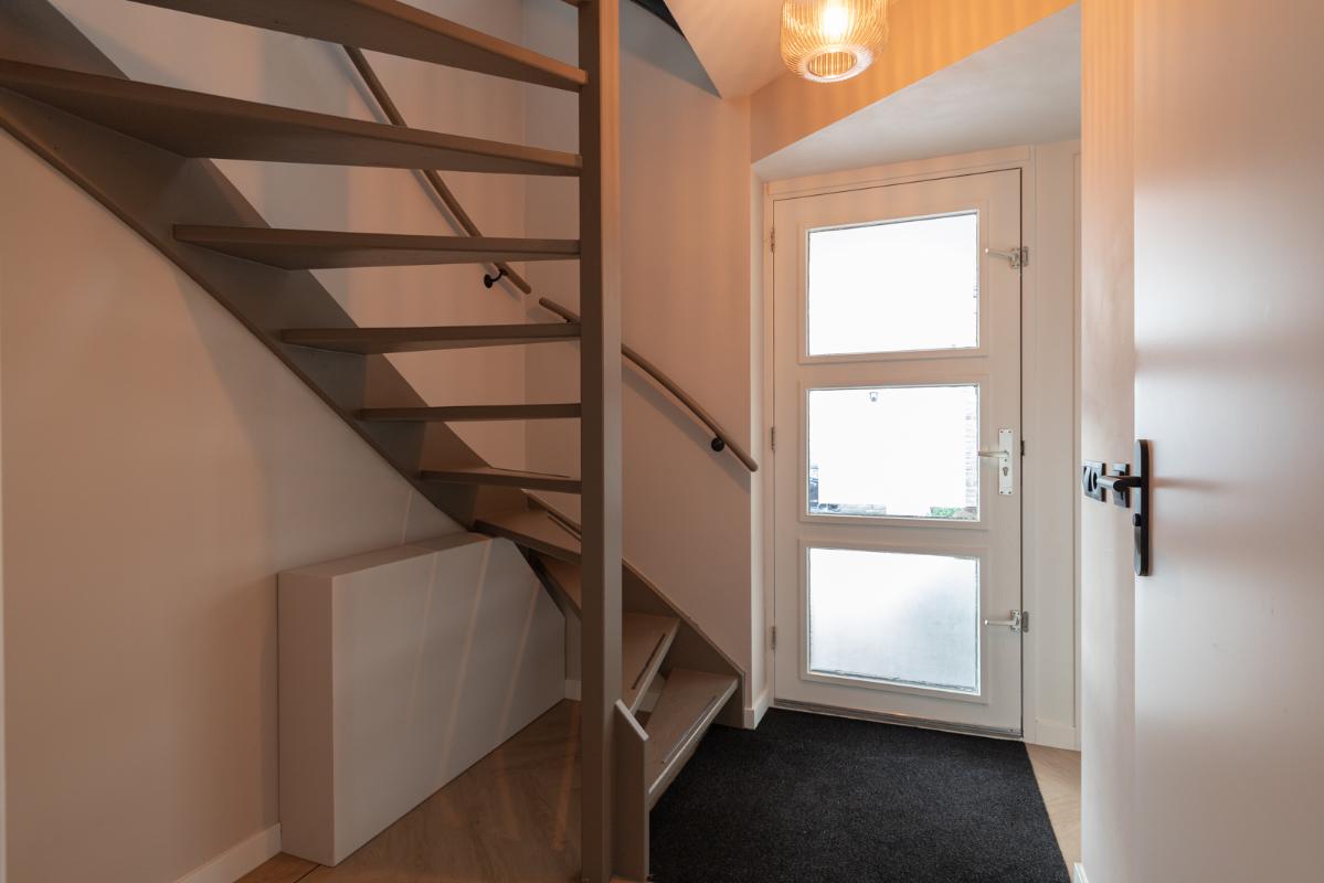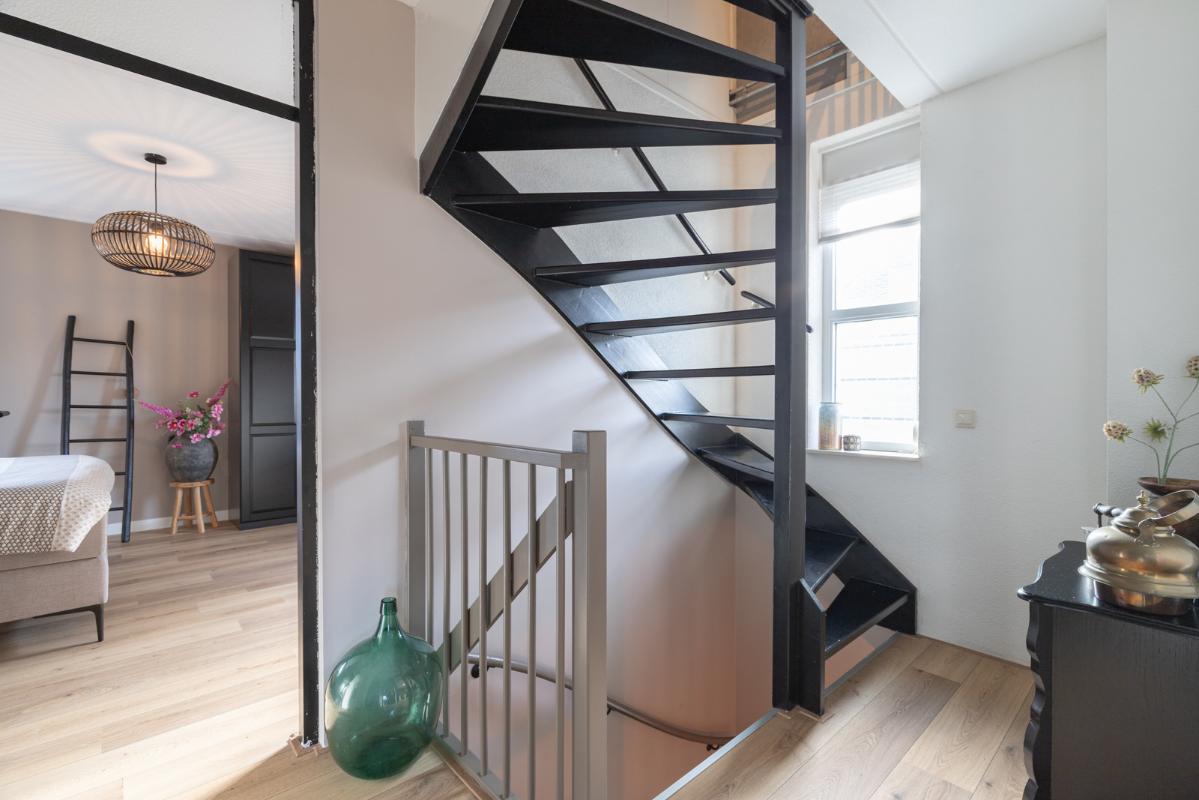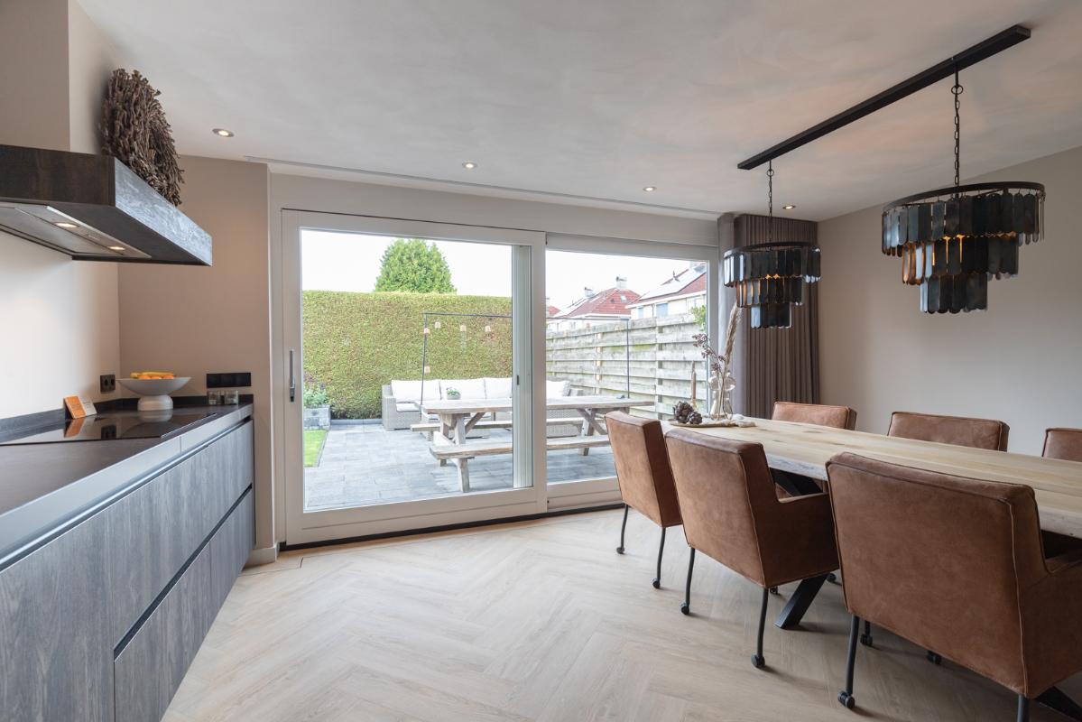 INDELING: Begane grond: hal/entree met toilet (wandcloset met fonteintje); een royale woonkamer met open woonkeuken (circa 52m²!) met een prachtige visgraatvloer, elektrische haard en een brede schuifpui naar de tuin. De stijlvolle luxe uitgevoerde keuken (2024) is voorzien van een inductie-kookplaat, afzuigschouw, combi-oven, koelkast, vaatwasser, Quooker en veel kast- en werkruimte. Vanuit de hal toegang tot de bijkeuken met extra keukenblok, wasmachine/drogeropstelling en binnendoor naar de (fietsen)berging. Eerste verdieping: overloop; 3 keurige slaapkamers (circa 19, 9 en 8m²) en een moderne badkamer (2020) voorzien van een ruime inloopdouche, wastafelmeubel met verwarmde spiegel, wandcloset en vloerverwarming. Tweede verdieping: ruime overloop met schuifwand voor de knieschotten; een grote vierde slaapkamer (circa 18m² vloeroppervlakte) met Velux-dakraam.