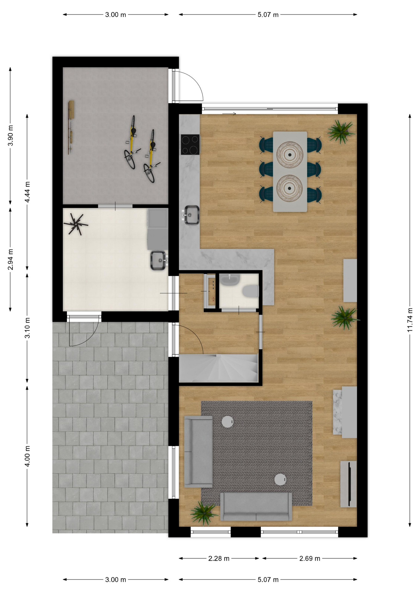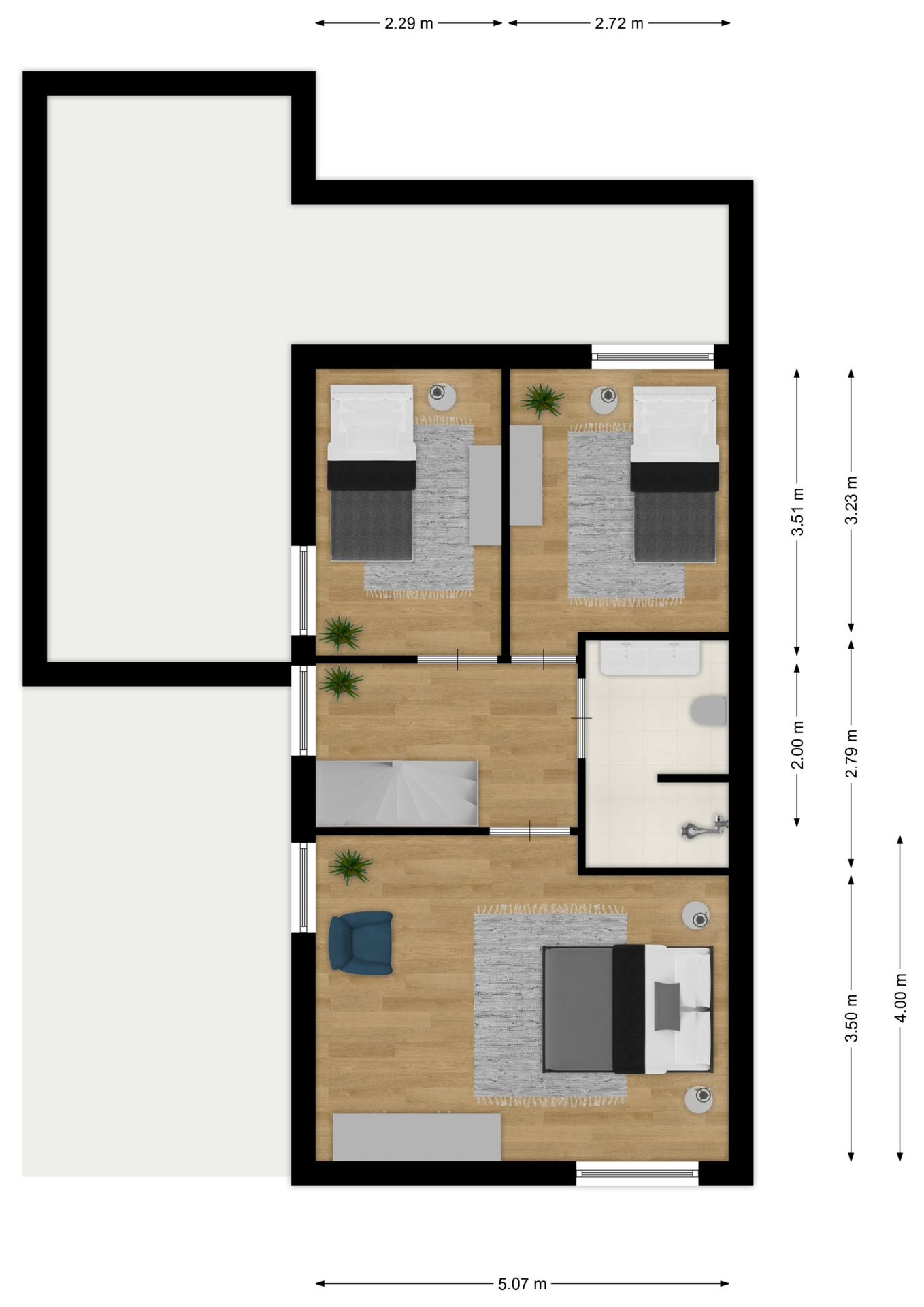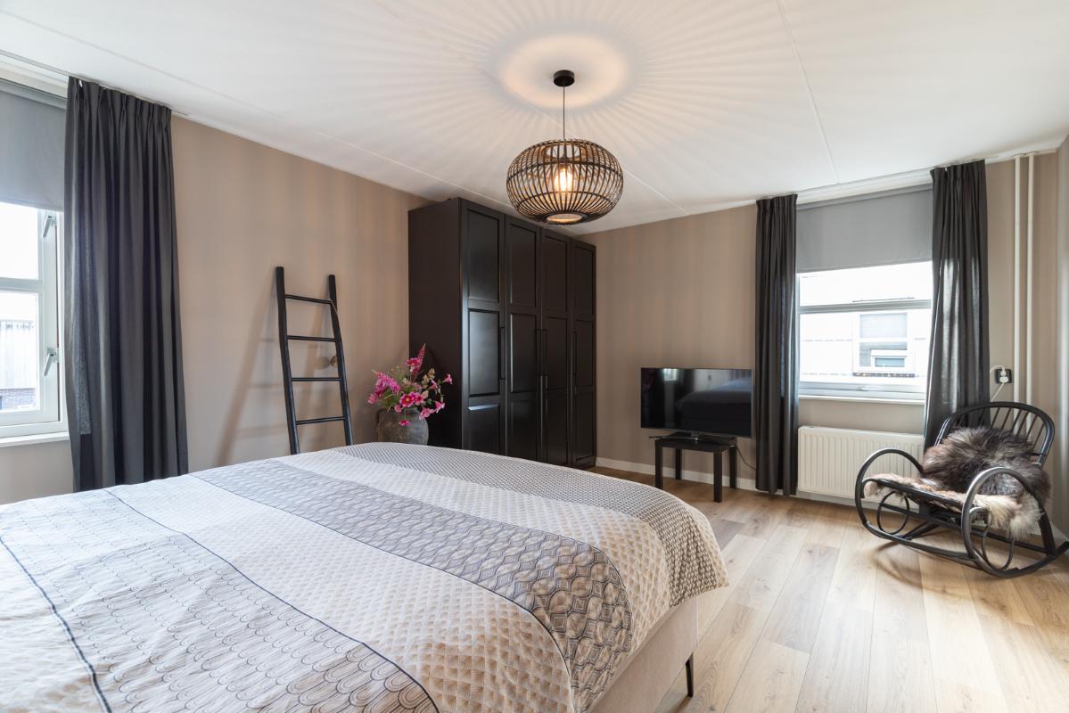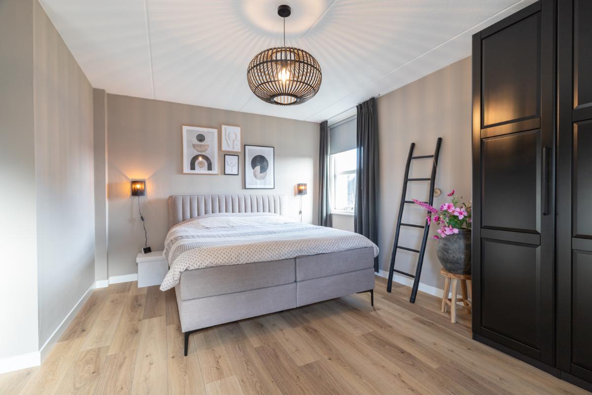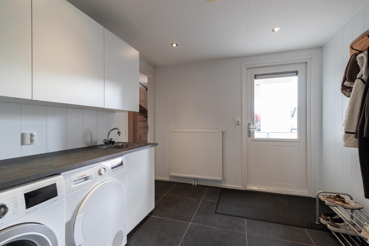 INDELING: Begane grond: hal/entree met toilet (wandcloset met fonteintje); een royale woonkamer met open woonkeuken (circa 52m²!) met een prachtige visgraatvloer, elektrische haard en een brede schuifpui naar de tuin. De stijlvolle luxe uitgevoerde keuken (2024) is voorzien van een inductie-kookplaat, afzuigschouw, combi-oven, koelkast, vaatwasser, Quooker en veel kast- en werkruimte. Vanuit de hal toegang tot de bijkeuken met extra keukenblok, wasmachine/drogeropstelling en binnendoor naar de (fietsen)berging. Eerste verdieping: overloop; 3 keurige slaapkamers (circa 19, 9 en 8m²) en een moderne badkamer (2020) voorzien van een ruime inloopdouche, wastafelmeubel met verwarmde spiegel, wandcloset en vloerverwarming. Tweede verdieping: ruime overloop met schuifwand voor de knieschotten; een grote vierde slaapkamer (circa 18m² vloeroppervlakte) met Velux-dakraam.
