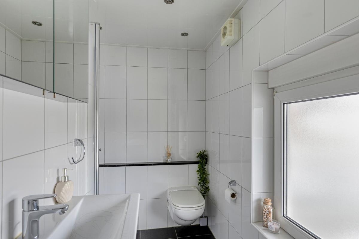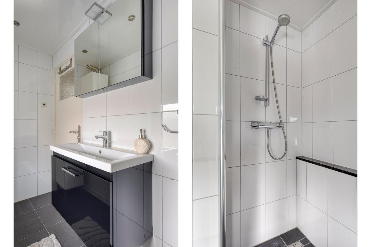 Badkamer Compact maar compleet: inloopdouche met thermostaatkraan, wastafelmeubel met spiegelkast en toilet (sanibroyeur). Ventilatie kan zowel natuurlijk (raam) als mechanisch, tevens beschikt de badkamer over elektrische vloerverwarming.