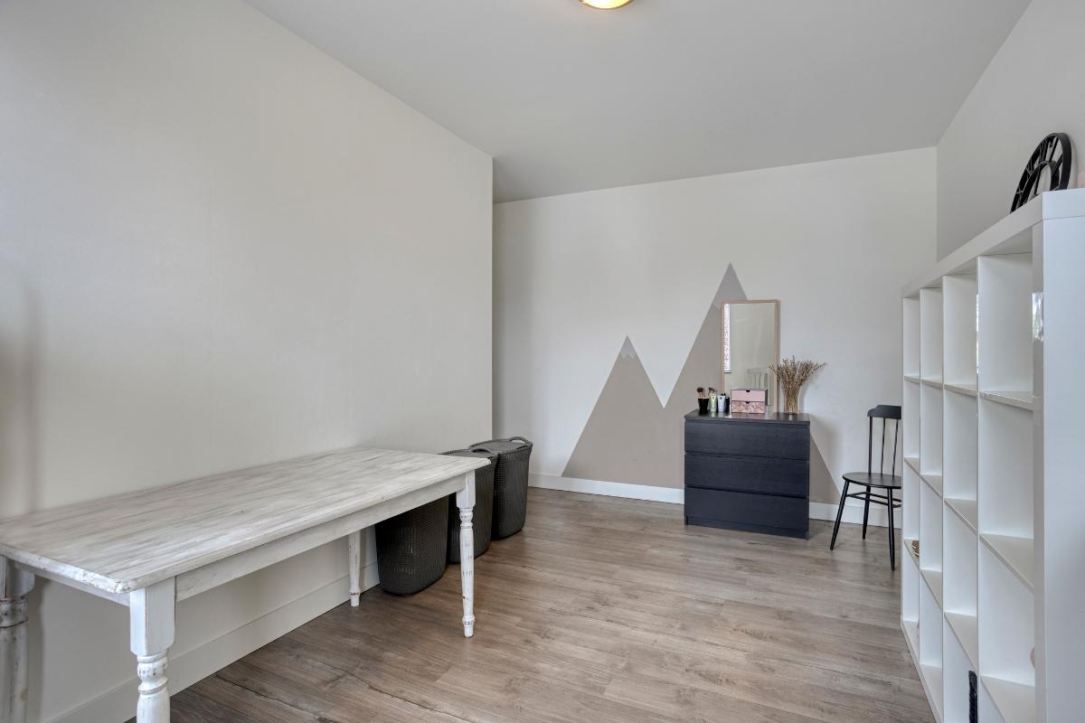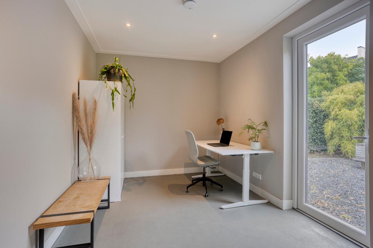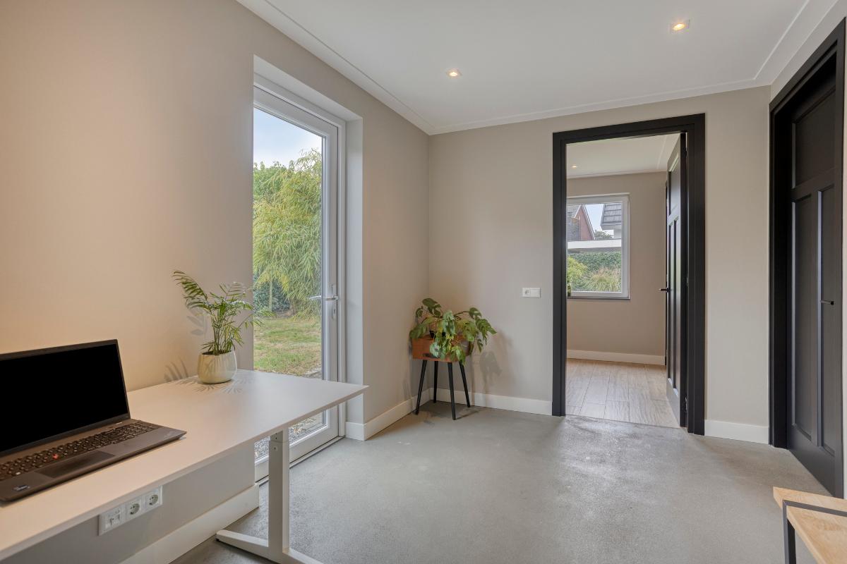Extra kamer – achterzijde woning Aan de achterzijde ligt een tweede extra kamer met directe toegang tot de tuin. Deze kamer is eveneens strak afgewerkt en voorzien van veel lichtinval. Ideaal als werkkamer of speelruimte.