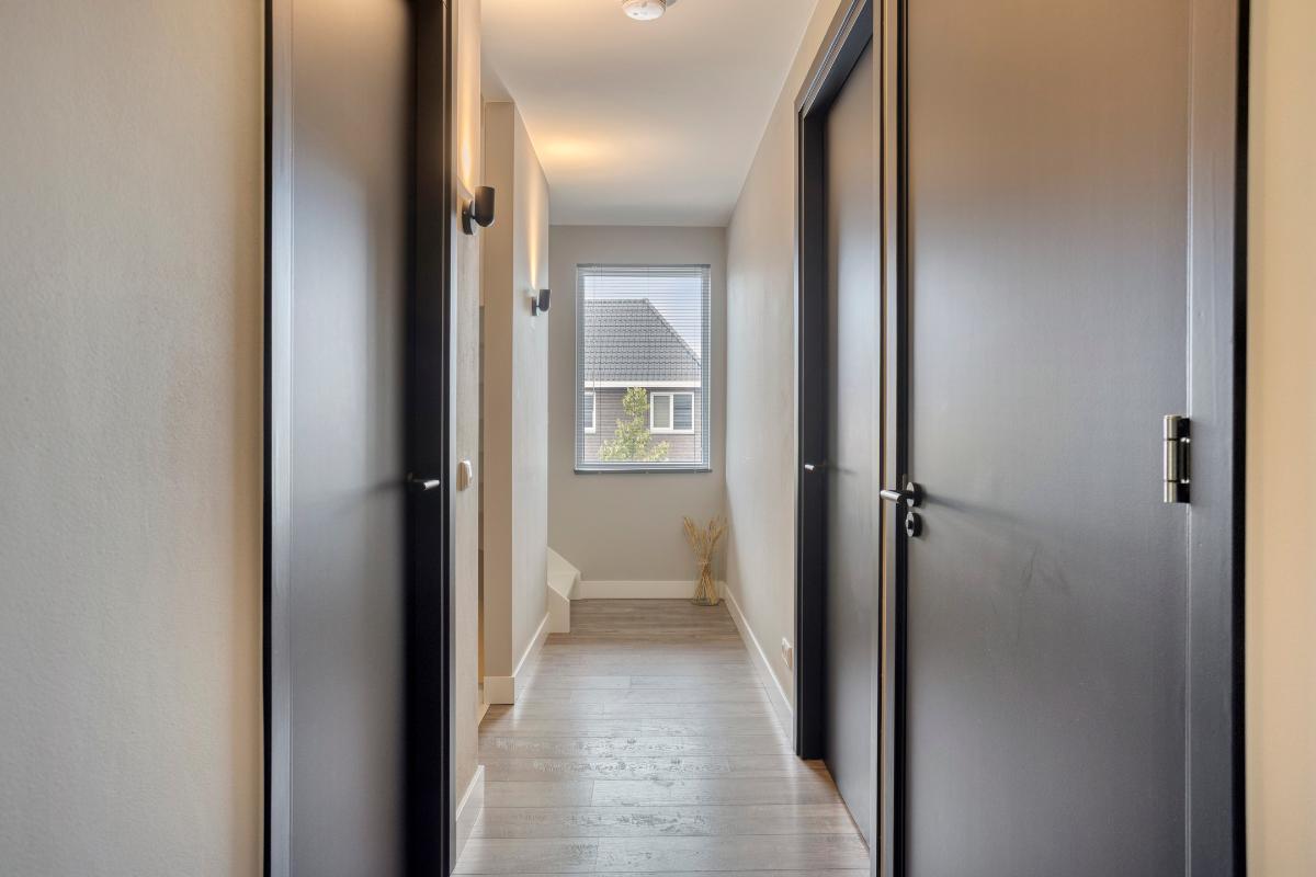 De overloop is licht en ruimtelijk, met toegang tot vier slaapkamers, een badkamer en een separate toiletruimte. De overloop en slaapkamers zijn voorzien van een laminaatvloer. Alle wanden en plafonds zijn strak gestuukt. Dit geeft ook deze verdieping een rustige uitstraling.