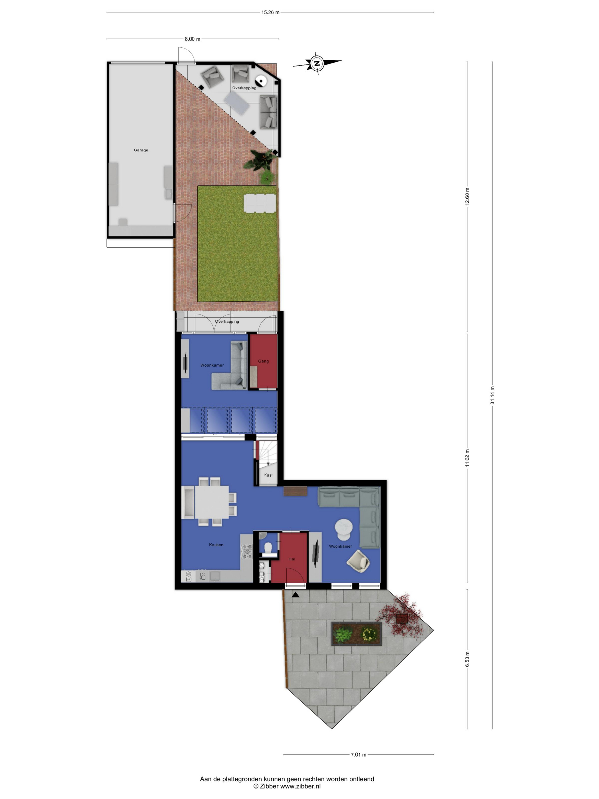 Achtertuin met overkapping, achterom en garage De achtertuin is onderhoudsvriendelijk aangelegd en vormt een heerlijke plek om buiten te ontspannen. De combinatie van sierbestrating en kunstgras zorgt voor een verzorgde uitstraling en maakt de tuin praktisch in gebruik. Dankzij de gunstige diepte is er volop ruimte voor zowel een loungehoek als een eetgedeelte. Door de ligging op het westen is er volop zon in de achtertuin.