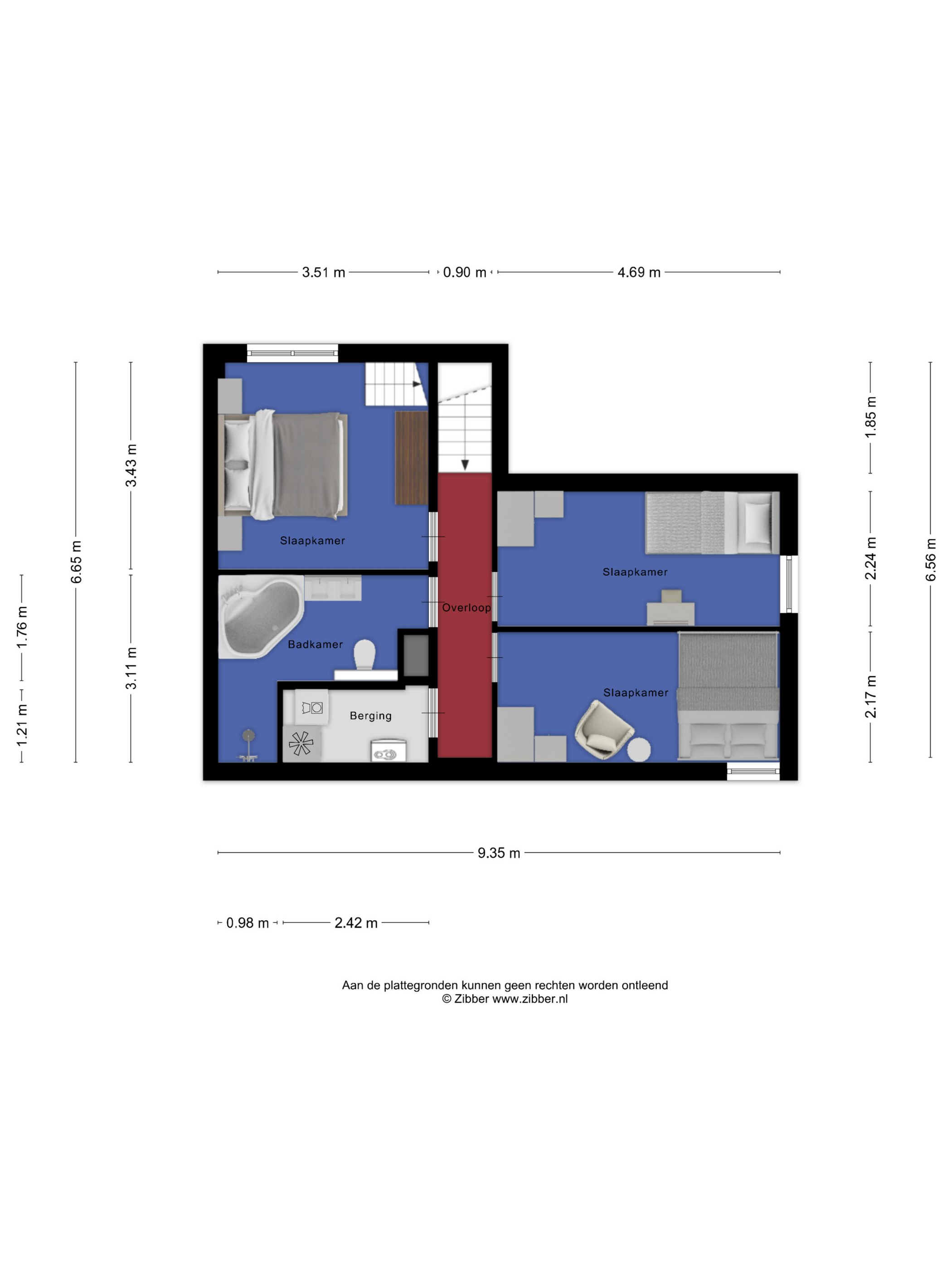 Slaapkamer II: De kamer is met ca. 10m² goed van formaat om te gebruiken als slaapkamer. Er is voldoende plek voor een bed, kast en bureau. Slaapkamer III: Deze slaapkamer is nagenoeg identiek aan slaapkamer II. Gelegen aan de voorzijde van de woning. Ook hier voldoende ruimte voor een bed, kast en bureau. Een perfecte kinderslaapkamer dus.