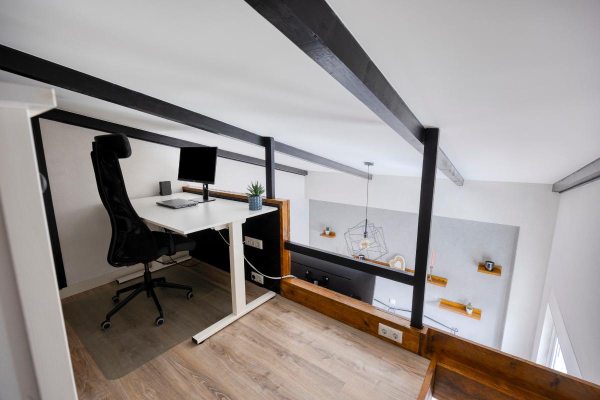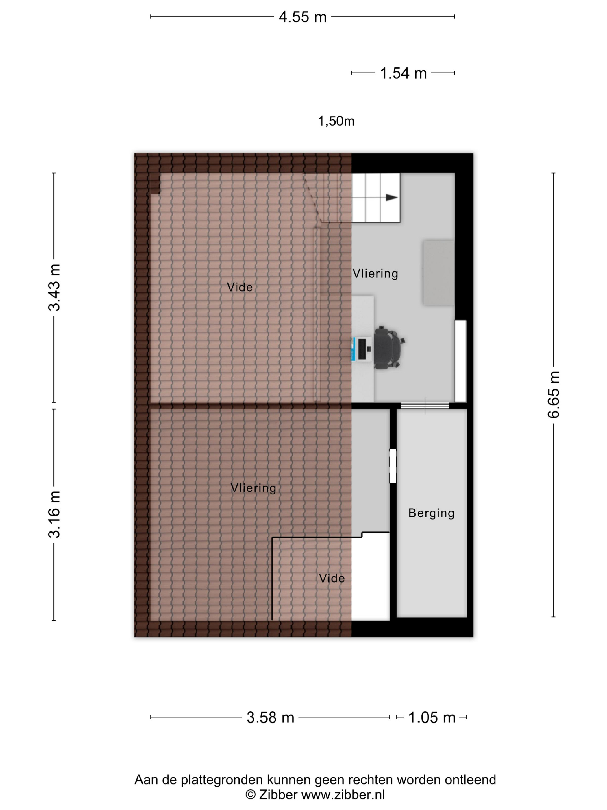 Via een trap is de vide bereikbaar. Deze multifunctionele extra ruimte is op dit moment ingericht als thuiswerkplek, maar zou bijvoorbeeld ook ingericht kunnen worden als hobbyruimte of rustige leeshoek. Vanuit hier de praktische bergruimte toegankelijk, ideaal voor het opbergen van diverse (seizoens)spullen.