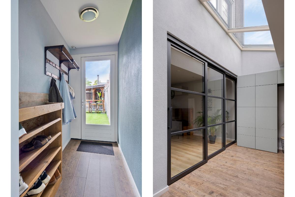 Hal/portaal De tuin is eveneens te bereiken via het halletje aan de achterzijde. Een praktische binnenkomst met voldoende mogelijkheden voor het opbergen van jassen, tassen en schoenen. Zeker in de periodes met wat minder weer een fijne ruimte. Enerzijds voor natte spullen, maar ook als sluis voor de kou van buiten. Een groot pluspunt want zeker niet vanzelfsprekend is bij een tussenwoning.
