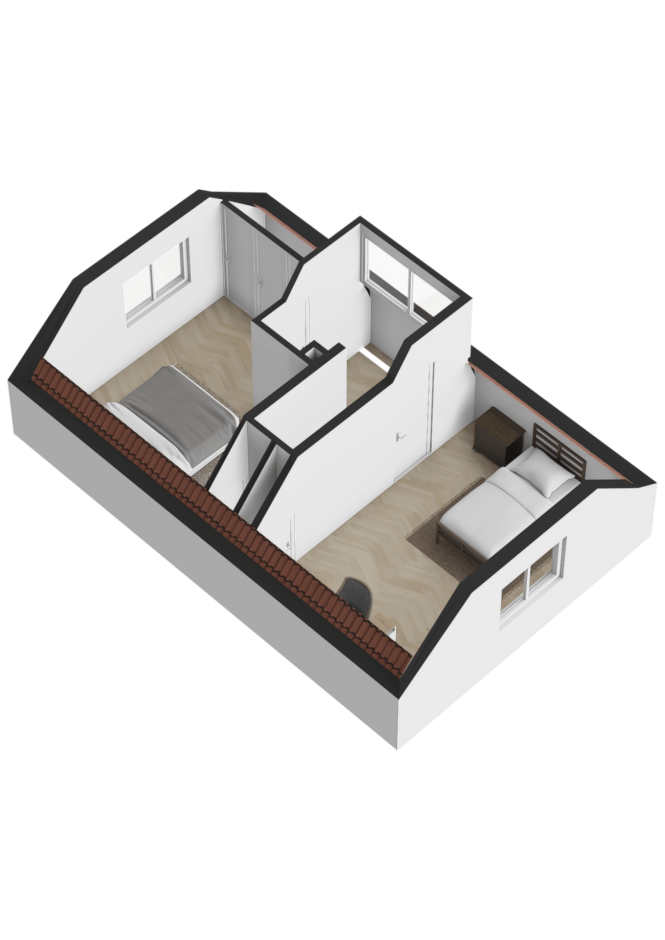 Elke kamer biedt voldoende ruimte voor bijvoorbeeld een groot bed, kastruimte en een eventuele werk- of studeerplek.