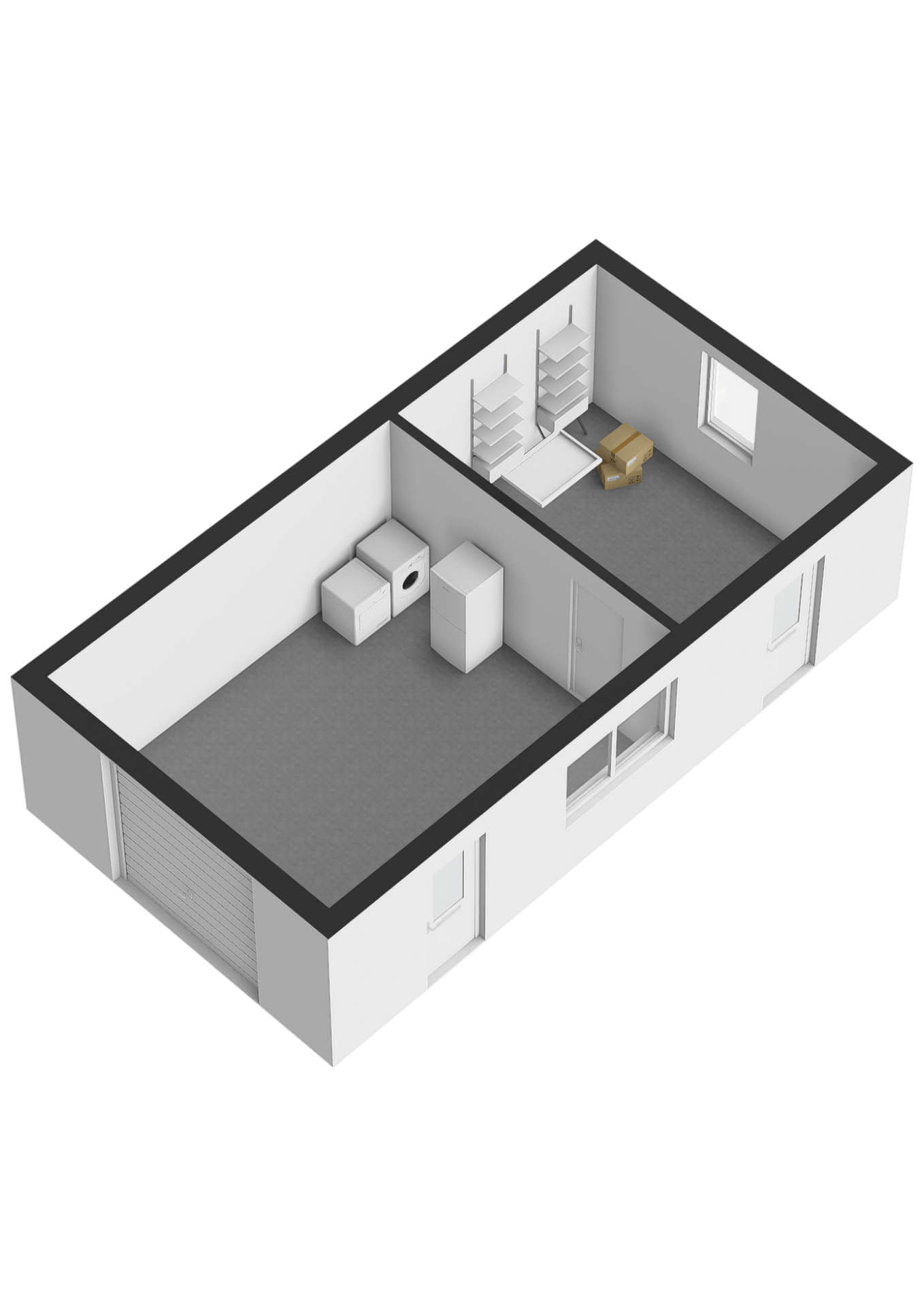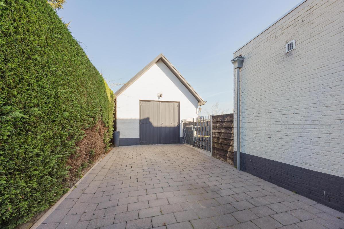 Garage/multifunctionele ruimte De garage is bereikbaar via openslaande deuren aan de oprit en via een loopdeur vanuit de achtertuin. Garage is verdeeld in 2 ruimtes en beschikt over een vliering, water en elektra.