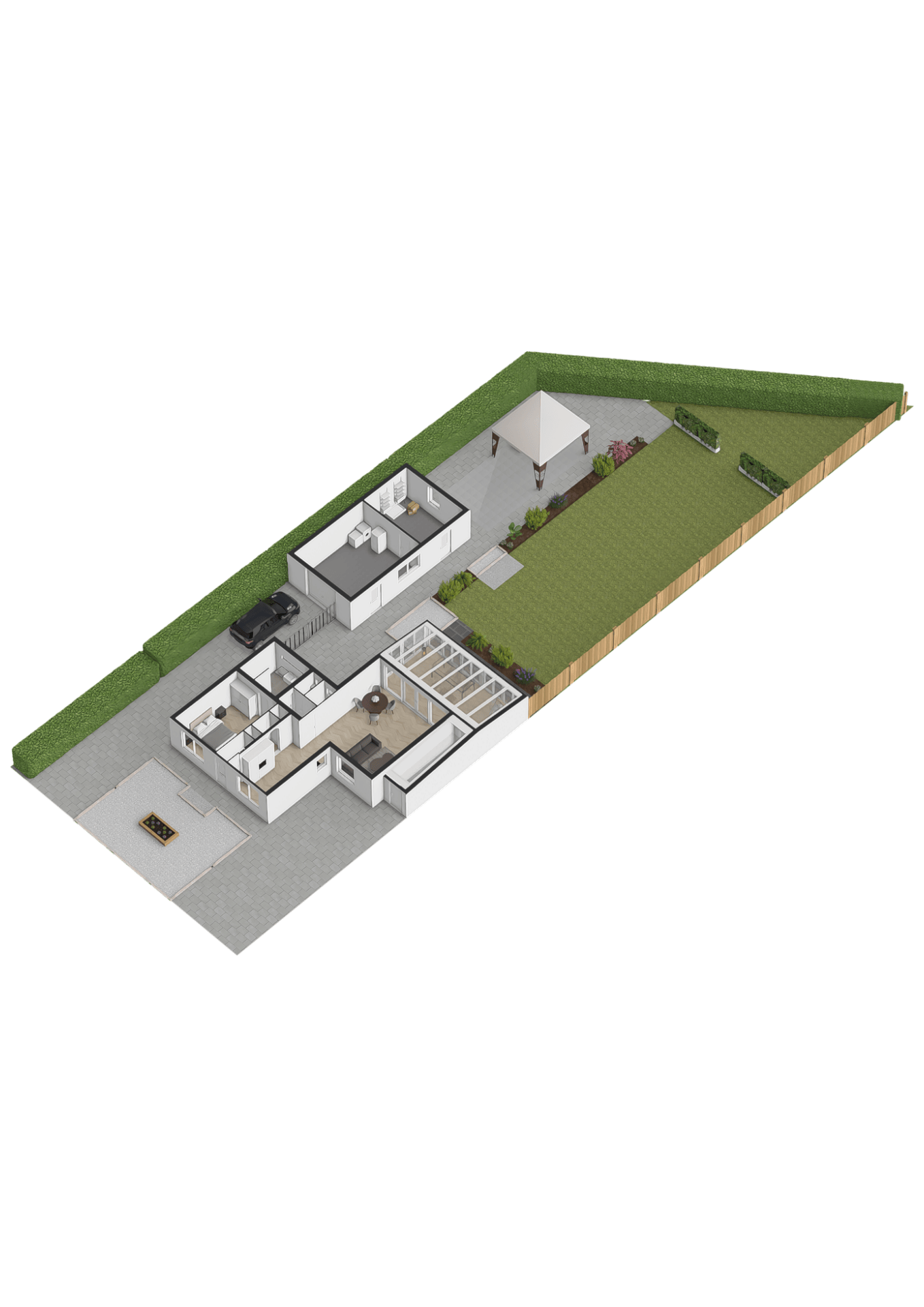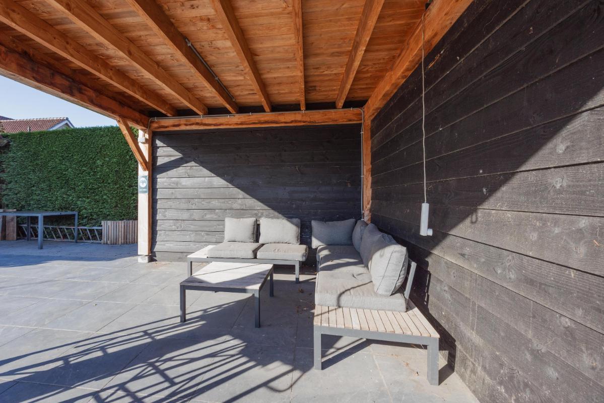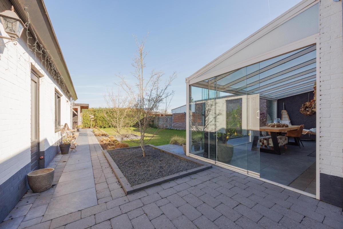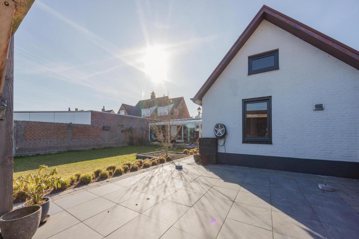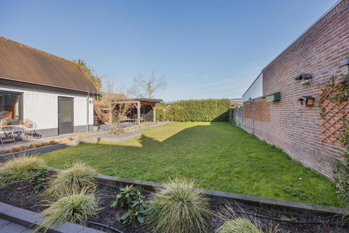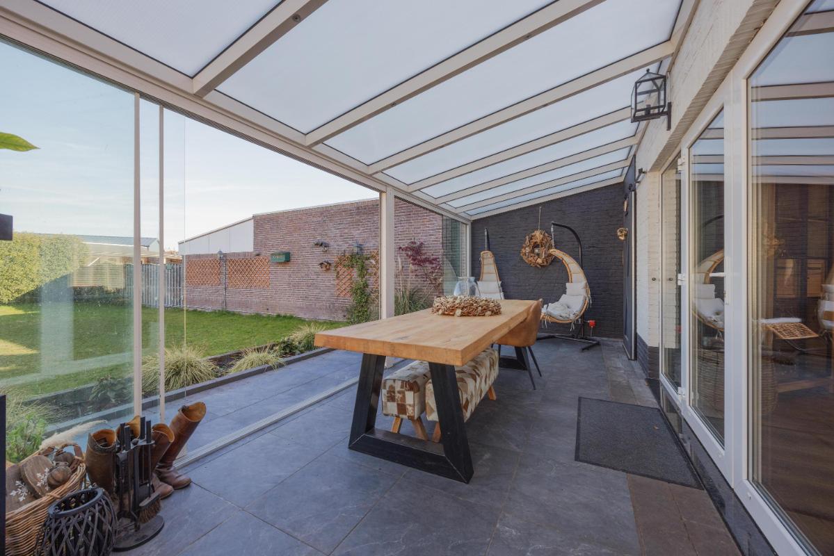 Achtertuin met veel groen Het hele jaar genieten van het buiten/binnen gevoel in de fijne serre direct aan de woning. De serre biedt door de glazen schuifwanden een heerlijk verblijf. De achtertuin is ruim, zonnig en aangelegd met sierbestrating, gazon, borders met vaste planten, tuinverlichting, een buitenkraan en een heerlijke overkapping. Dankzij de afmetingen van de tuin kunt u hier op meerdere plekken van de rust in uw tuin genieten.