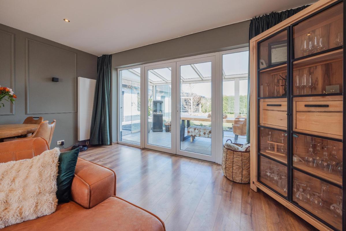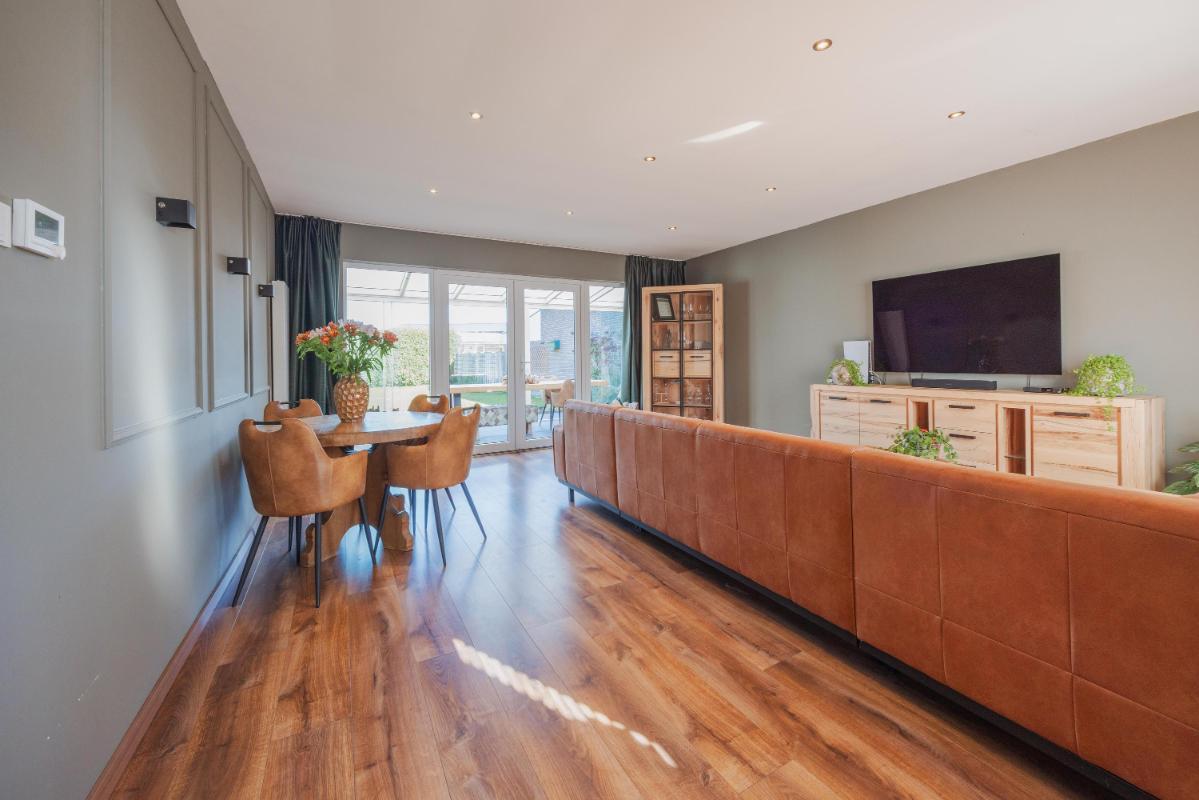 De woonkamer is royaal van afmeting en tuingericht. De woonkamer biedt toegang tot de serre middels openslaande tuindeuren. De ruimte voelt aangenaam licht en biedt volop mogelijkheden qua inrichting.