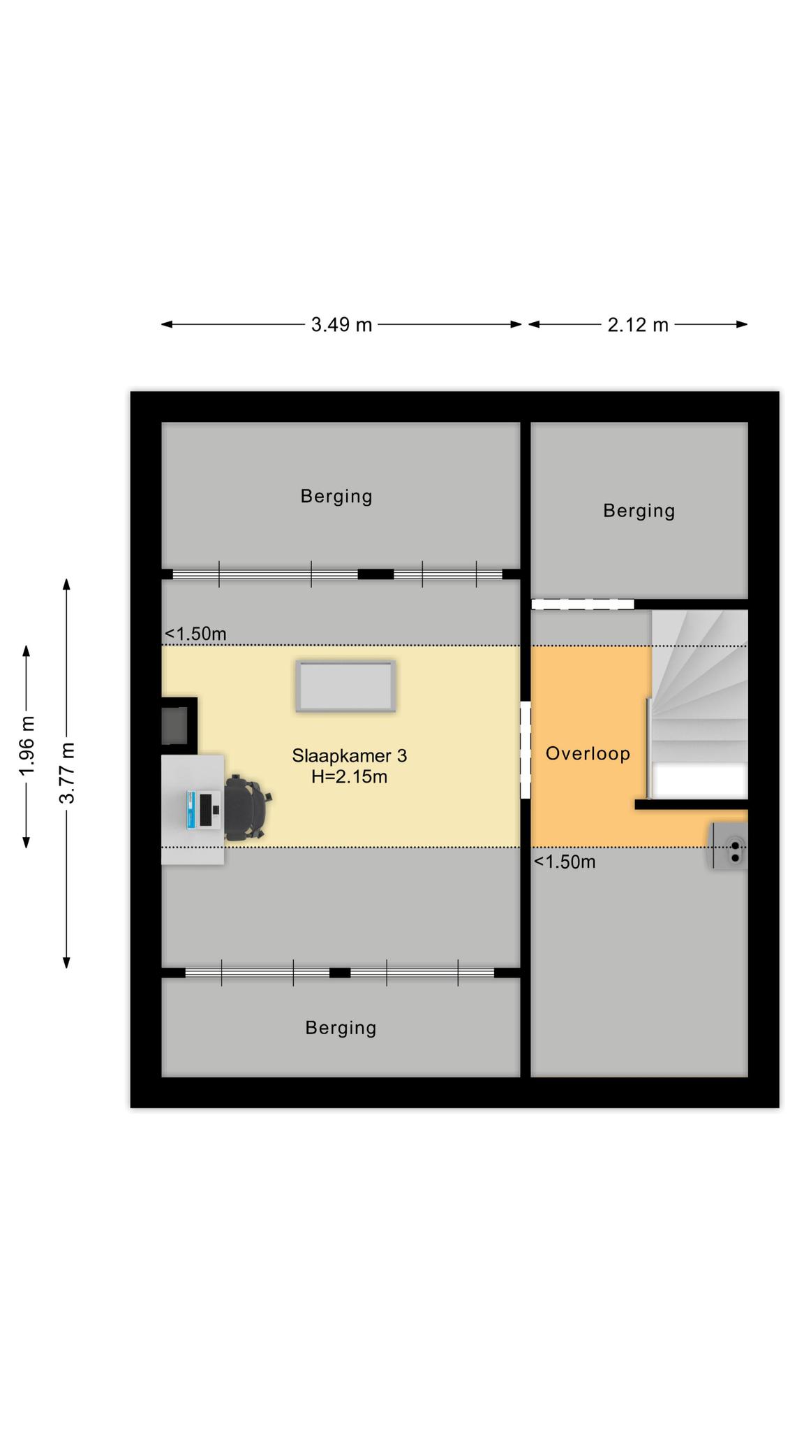Tweede verdieping: Via de vaste trap kom je op de tweede verdieping, waar je een recent in 2024 afgewerkte verdieping aantreft. Hier is de derde slaapkamer gerealiseerd. Dit is een volwaardige, lichte ruimte die perfect is als extra slaapkamer, werkkamer of hobbyruimte.