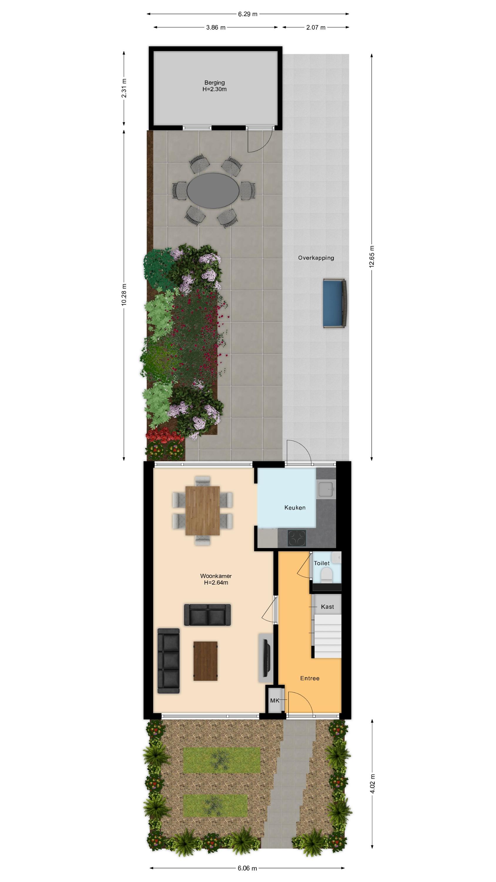 Tuin: De ruime achtertuin is onderhoudsvriendelijk aangelegd met een combinatie van bestrating en groene borders. Onder de overkapping kun je heerlijk beschut zitten en genieten van het buitenleven. Achterin de tuin bevindt zich een praktische stenen berging met voldoende ruimte voor meerdere fietsen én zelfs een scooter of motor.