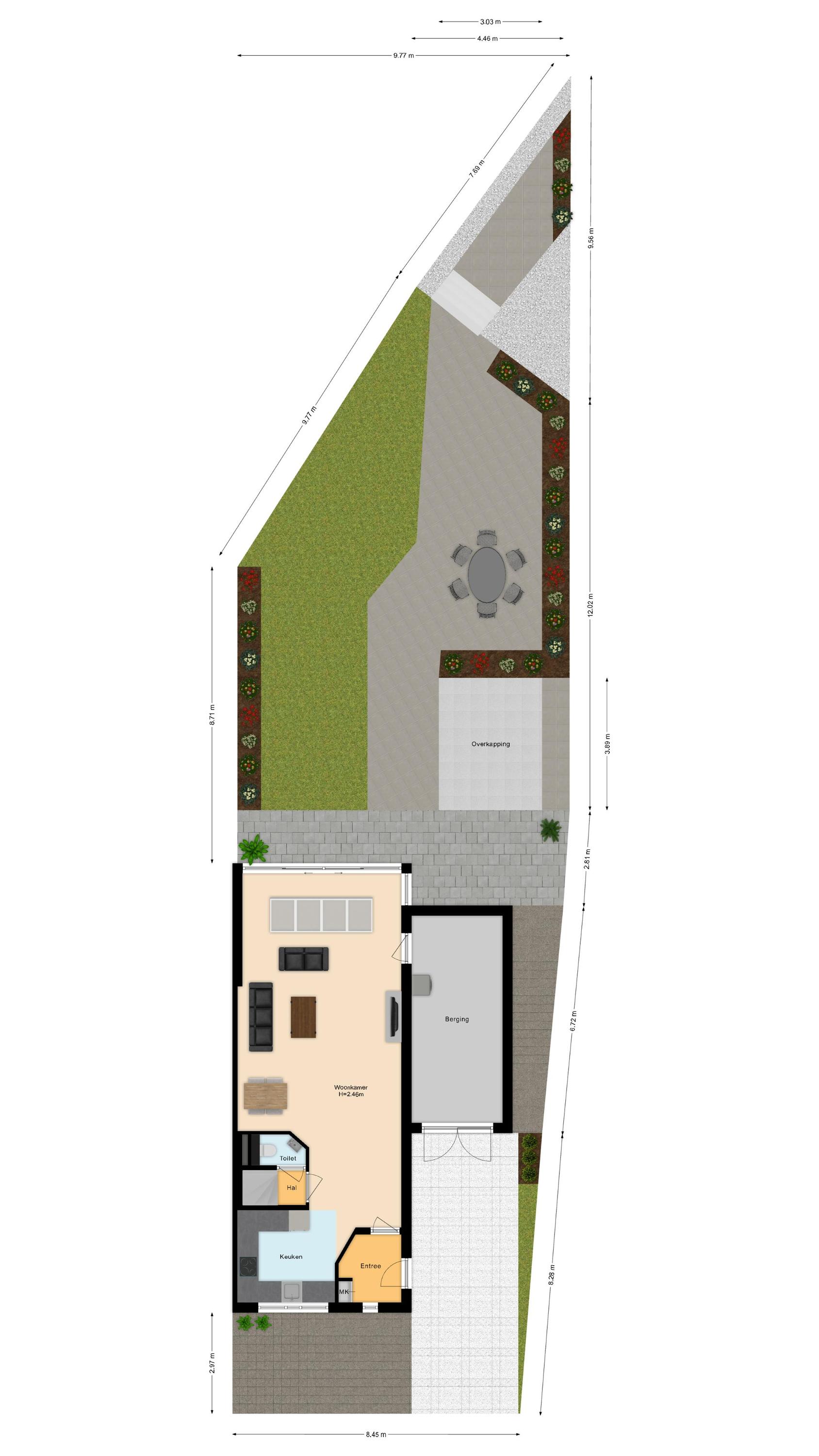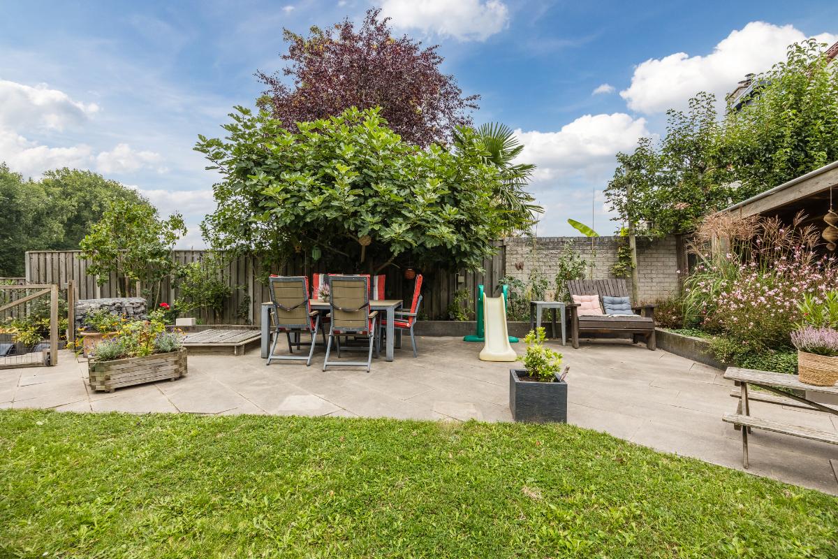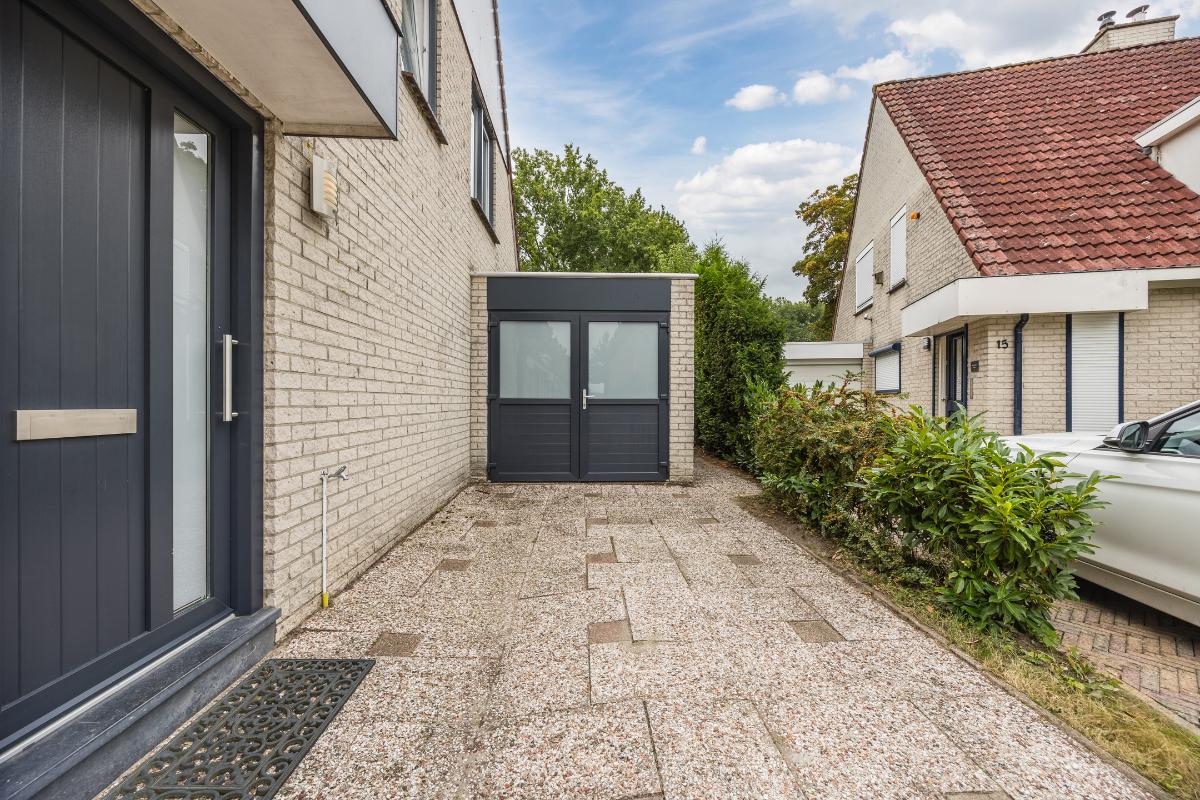 Vanuit de woonkamer loop je door naar de inpandig te bereiken garage, die momenteel in gebruik is als bijkeuken met aansluitingen voor wasmachine en droger. Deze wordt ook gebruikt als fietsenberging met openslaande deuren naar de oprit. Heb je andere plannen? Dan kun je deze ruimte eenvoudig omtoveren tot bijvoorbeeld een kantoor, praktijkruimte of slaapkamer, waardoor gelijkvloers wonen mogelijk wordt.