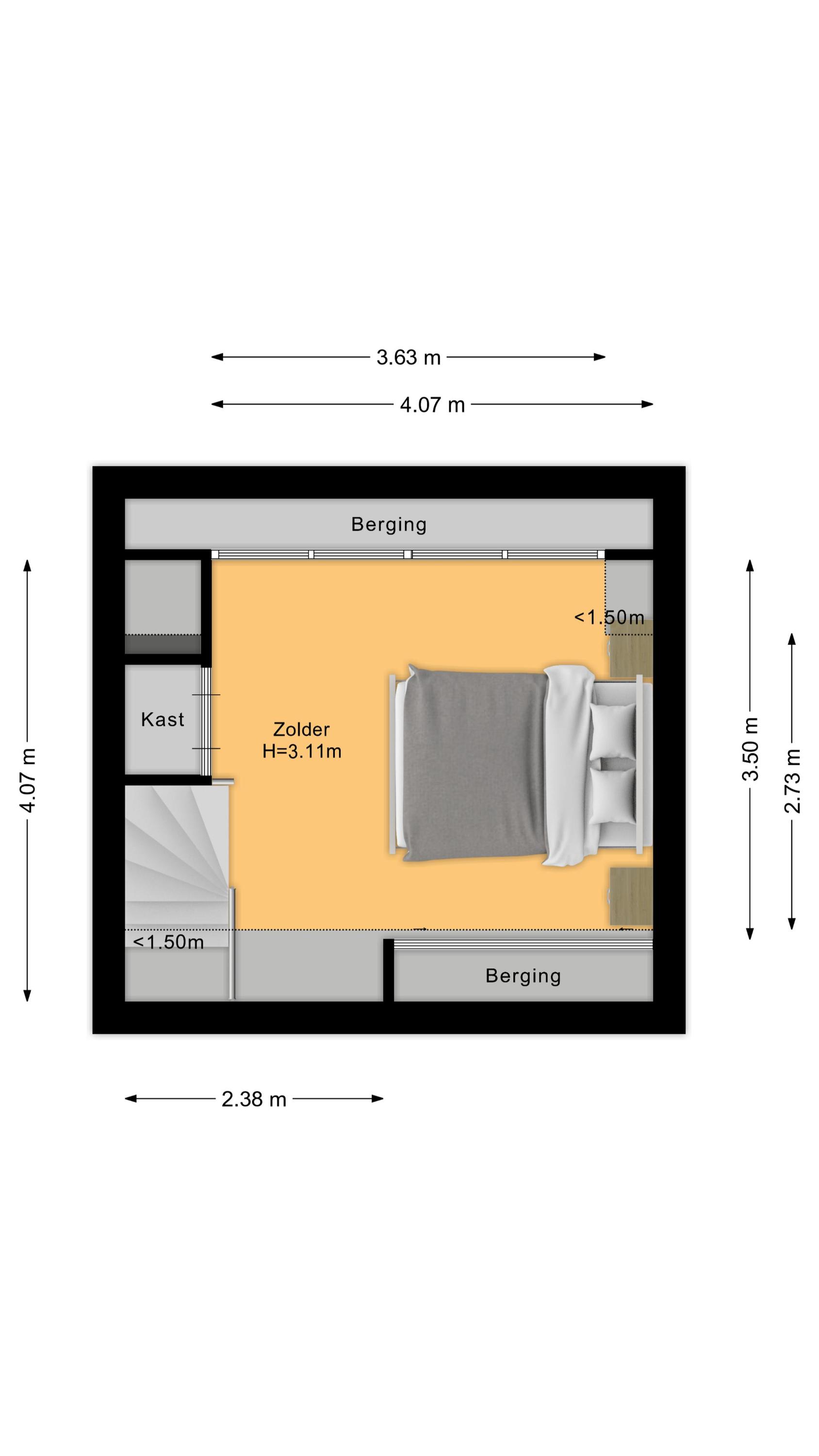 Daarnaast vind je op deze verdieping de opstelling van de CV-ketel en de mechanische ventilatie en in de nok is in extra bergruimte voorzien.