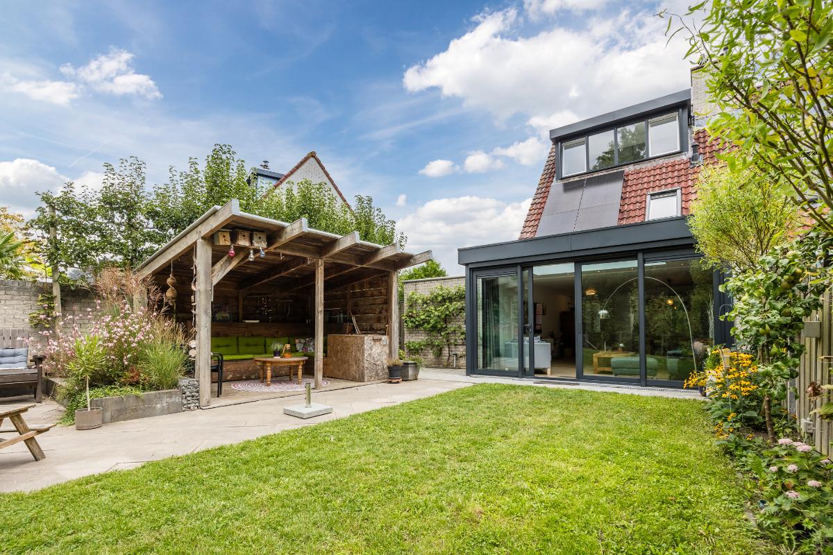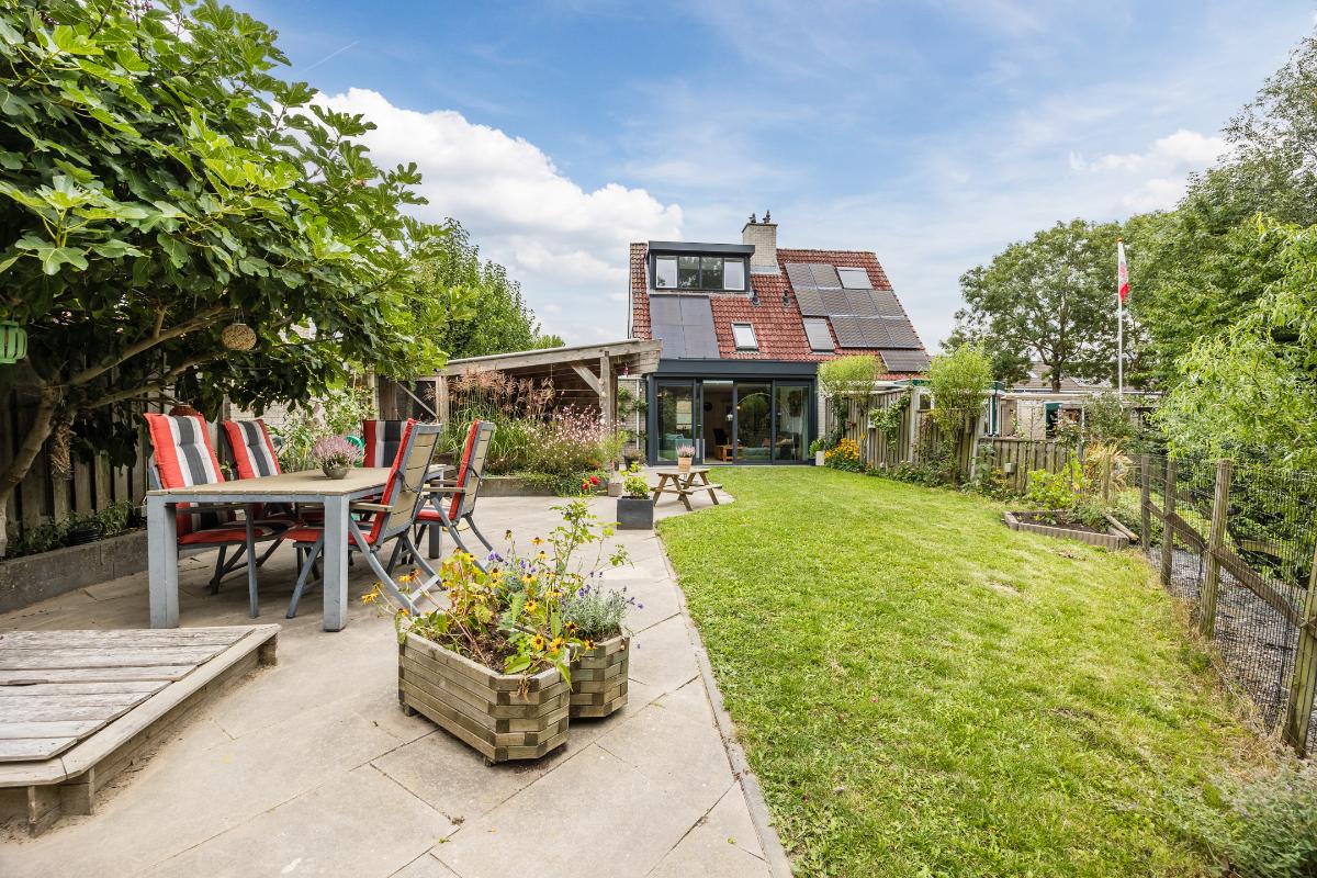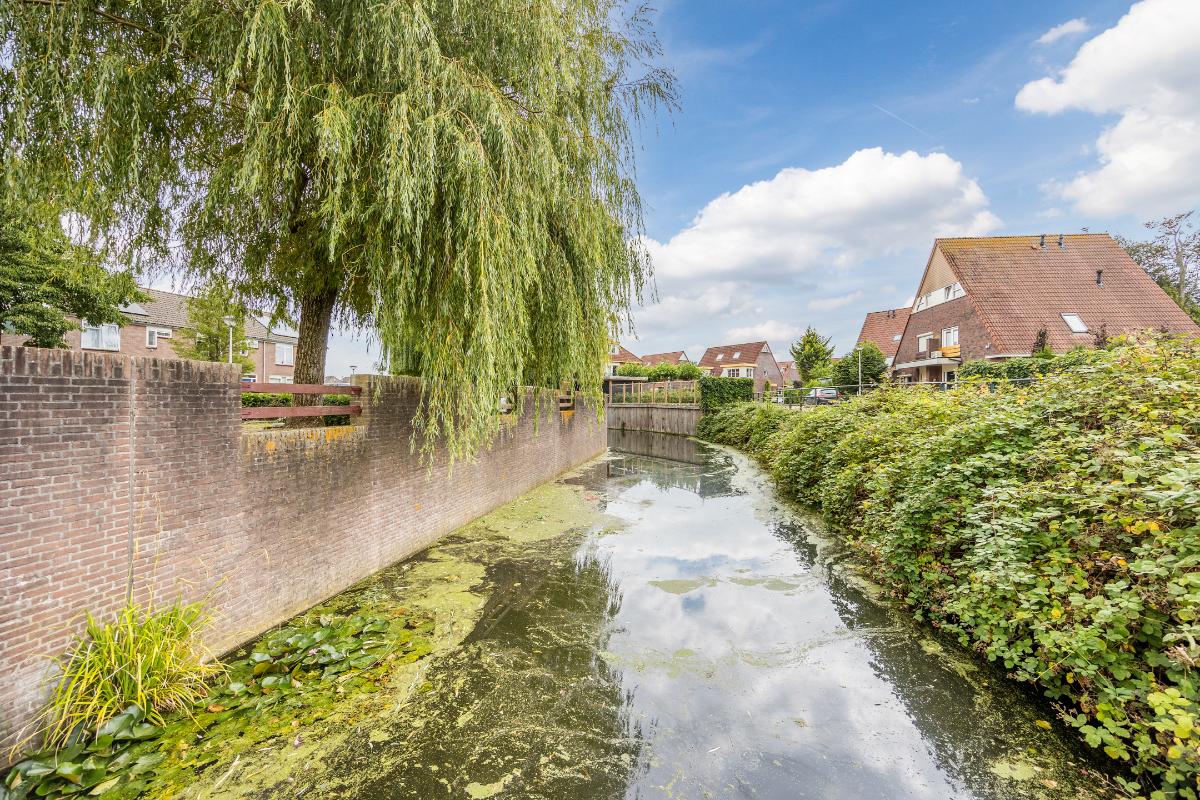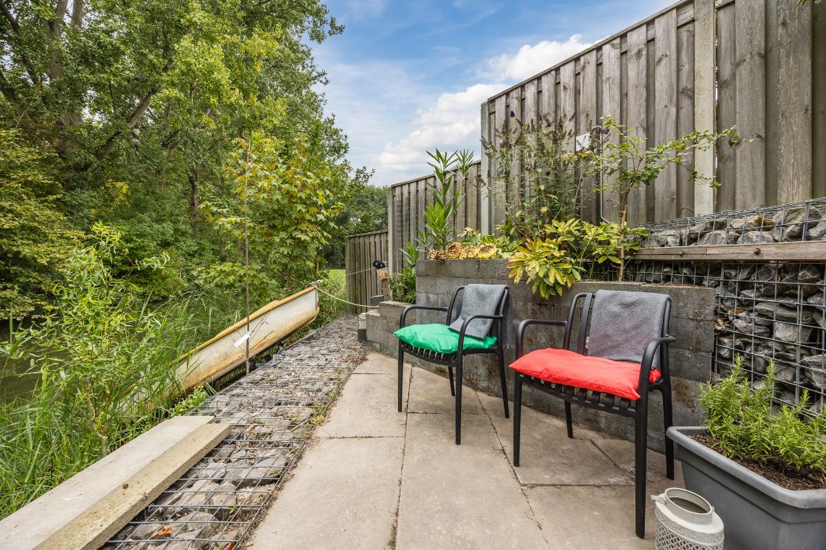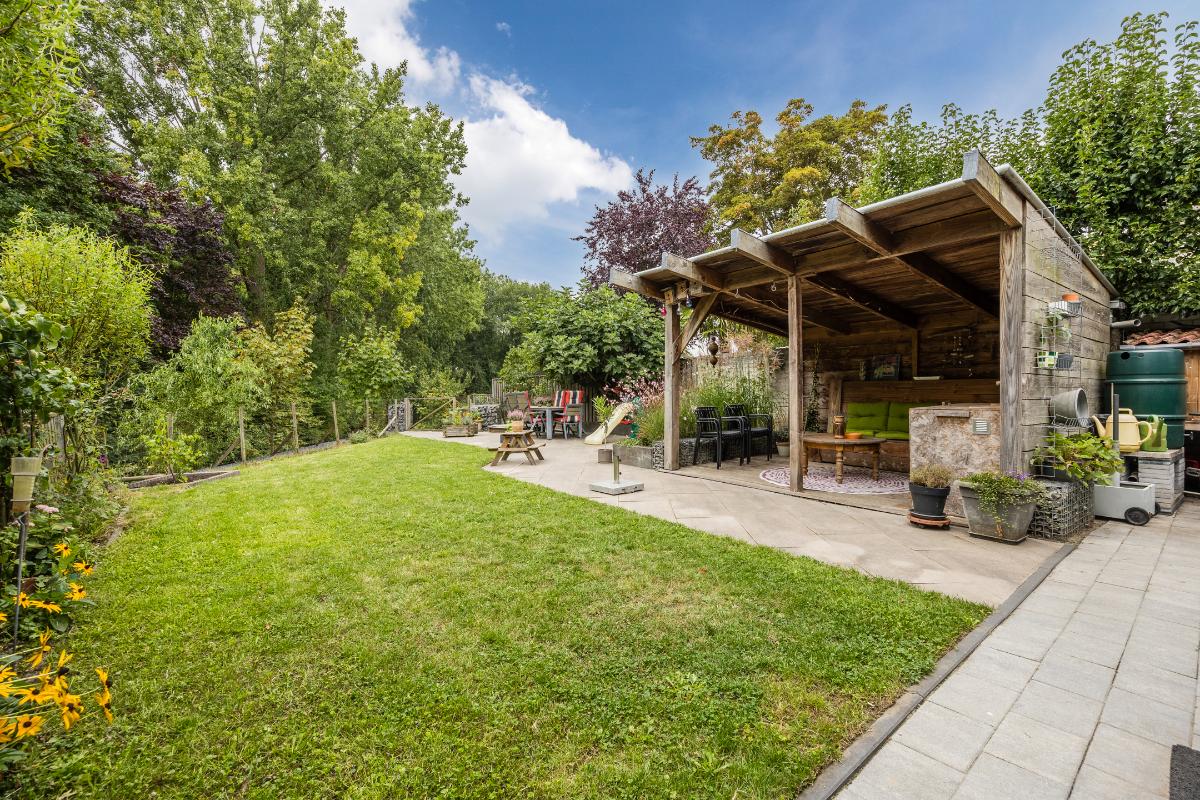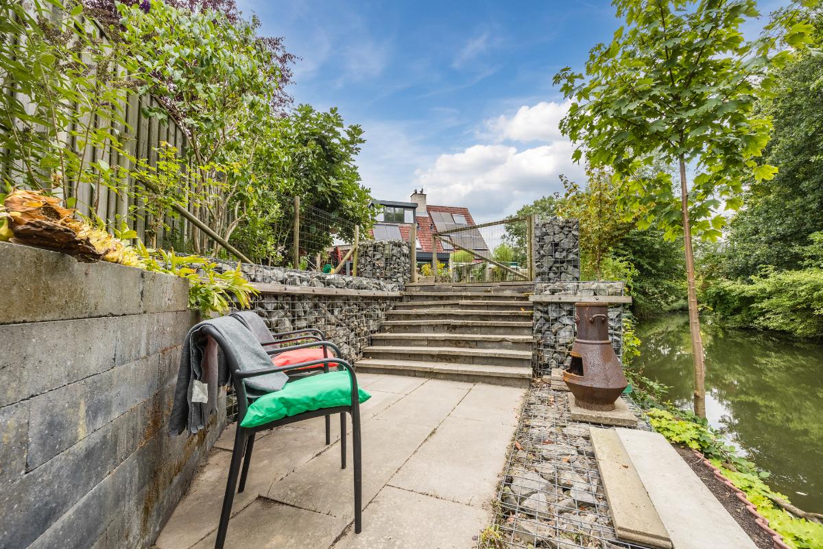 Tuin: Achter de woning ligt een heerlijke, ruime tuin op het zonnige zuidwesten. Dankzij de toegang naast de garage is de tuin gemakkelijk bereikbaar. Achterin de tuin vind je een gezellige zitkuil direct aan het water, waar je optimaal kunt genieten van de rust en het schitterende groene uitzicht. Bovendien zorgt de overkapping ervoor dat je hier het hele jaar door een fijne plek hebt om buiten te zitten.