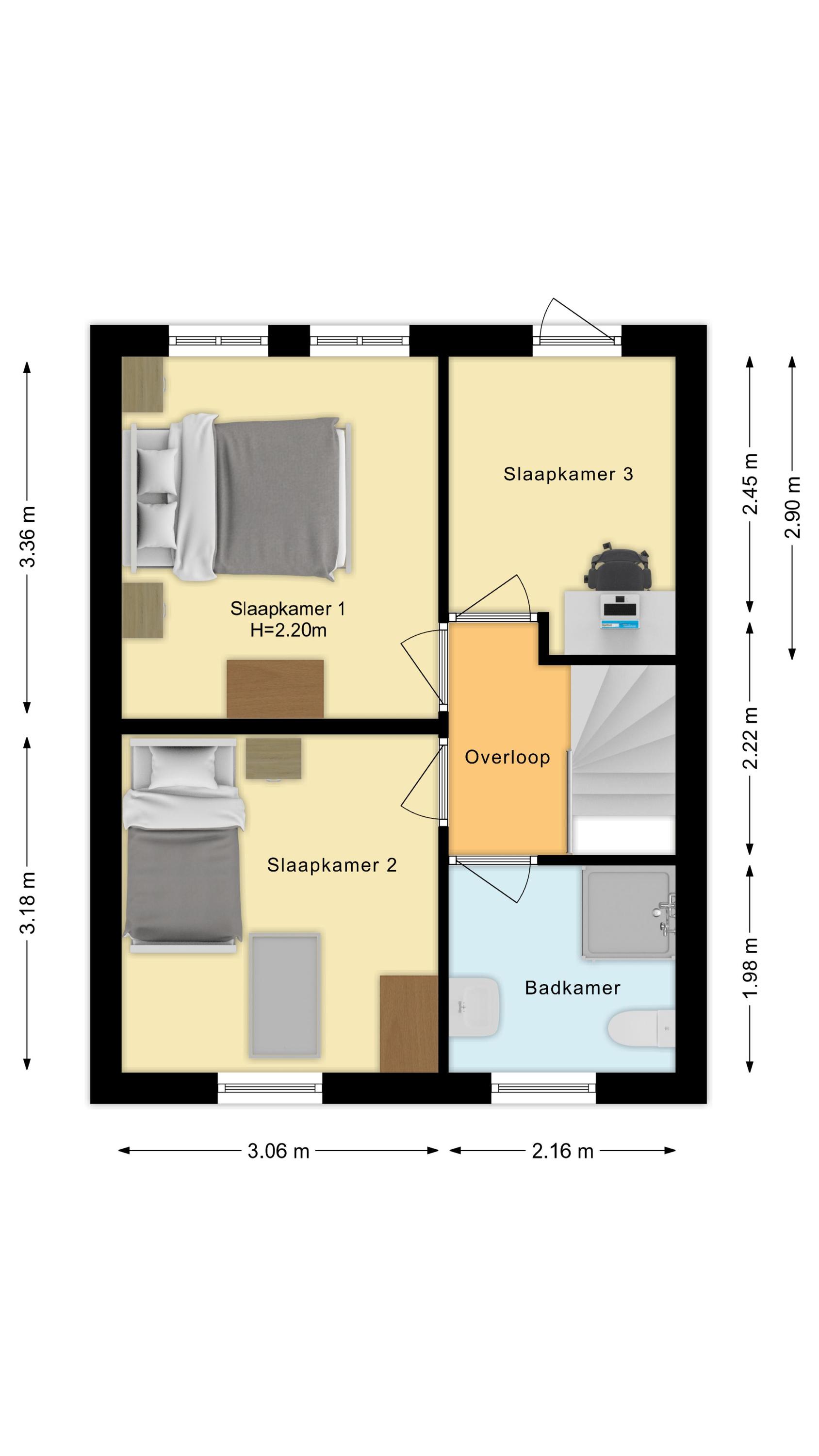 Drie fijne slaapkamers dus, die samen met de badkamer zorgen voor een comfortabele bovenverdieping.