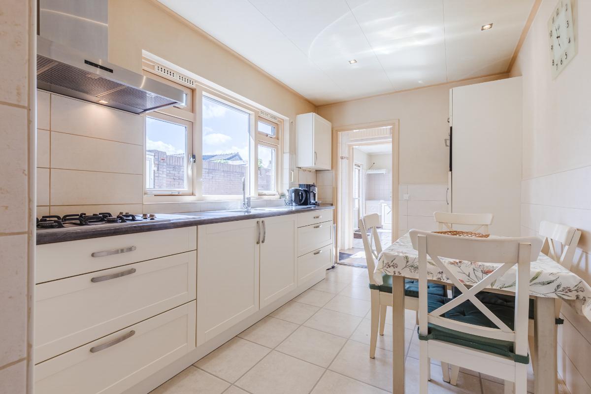 De bijkeuken is voorzien van een extra keukenblok en aansluitingen voor wasmachine en droger. Daarnaast biedt deze ruimte mogelijkheden voor de toekomst: met eenvoudige aanpassingen maak je hier een slaapkamer, zodat gelijkvloers wonen tot de opties behoort. Ook vanuit de bijkeuken loop je zo de zonnige achtertuin in.