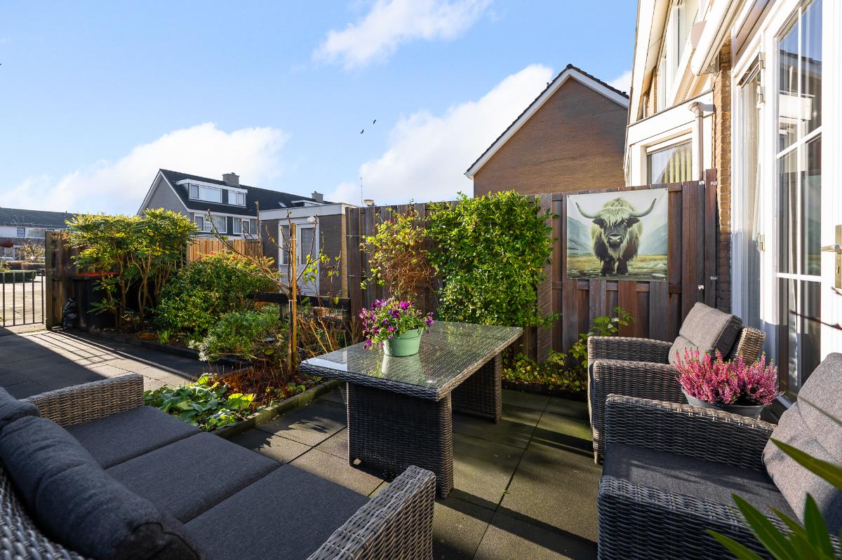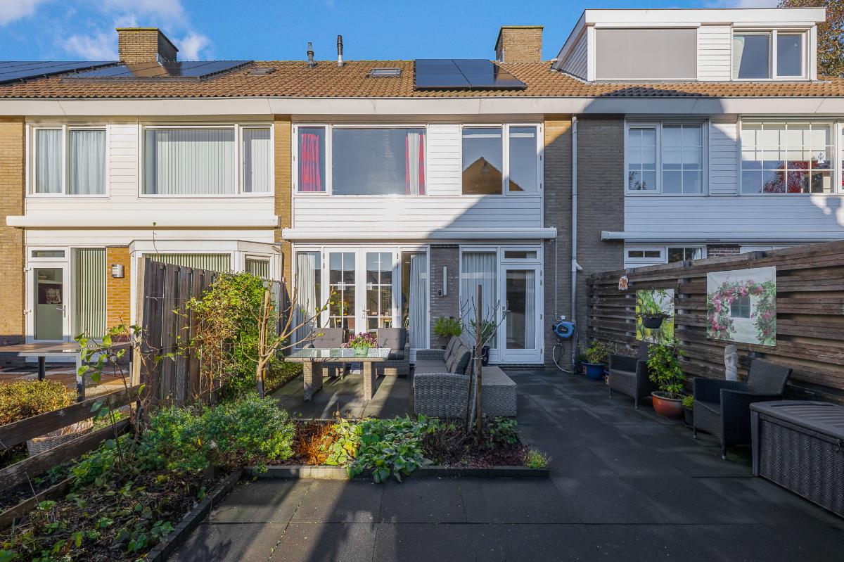 Feiten op een rij: Zeer lichte tussenwoning door grote raampartijen en openslaande deuren Moderne keuken vernieuwd in 2020 Vier slaapkamers en extra bergruimte op de tweede verdieping Zonnig dakterras met mogelijkheid voor dakkapel Vrijstaande stenen berging met elektra Diepe tuin op het westen, met achterom Elektrische zonnewering (2023) Schilderwerk buiten (2023) Kunststof kozijnen aan de voorzijde en hardhout kozijnen aan de achterzijde met HR++ glas CV-ketel Vaillant (2024) Nette badkamer, douchecabine en kranen vernieuwd in 2024 6 zonnepanelen (2024) Energielabel B Prachtig vrij uitzicht aan de voorzijde over groot gazon Openslaande deuren naar de tuin gelegen op het zuidwesten Speelse split-level trap in de woonkamer Voor- en achtertuin opnieuw bestraat in 2023