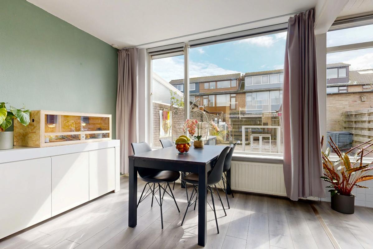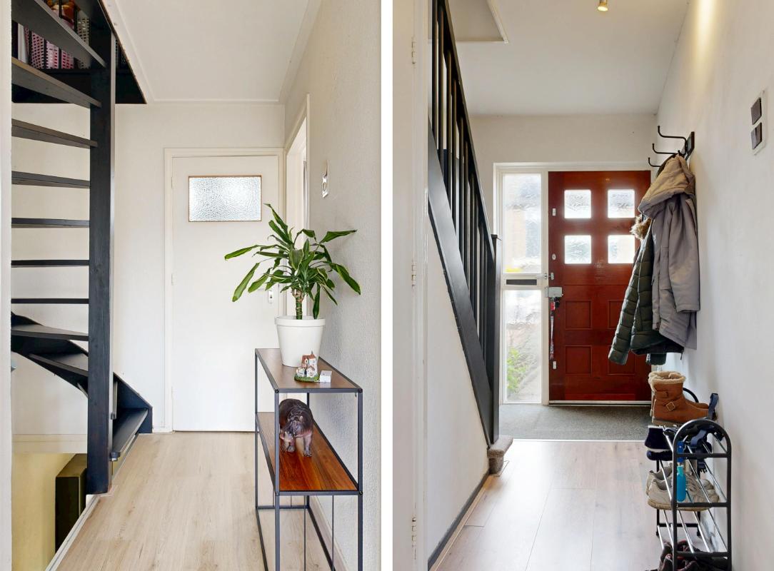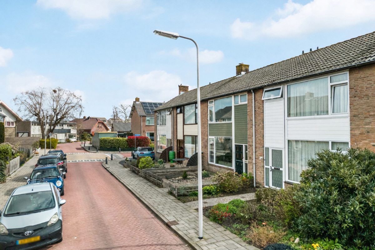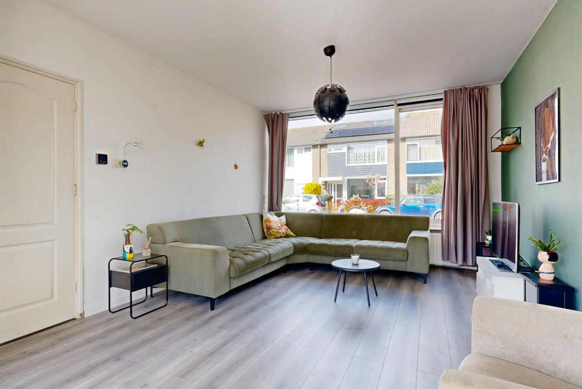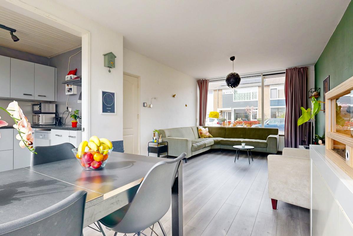 Binnenkomst vindt plaats via de entree met hal, meterkast (vernieuwd), toilet en trapopgang. De doorzon woonkamer is licht door de grote raampartijen en voorzien van een nette laminaatvloer. Aan de achterzijde bevindt zich de eigentijdse open keuken met toegang tot de achtertuin. Op de eerste verdieping zijn drie slaapkamers aanwezig, allen voorzien van laminaatvloeren, en een badkamer met douche en wastafel. De open zolderverdieping is bereikbaar via een vaste trap en beschikt over een dakraam, opstelplaats voor de c.v.-ketel en wasmachineaansluiting. Hier bestaat de mogelijkheid tot het realiseren van een extra slaapkamer.