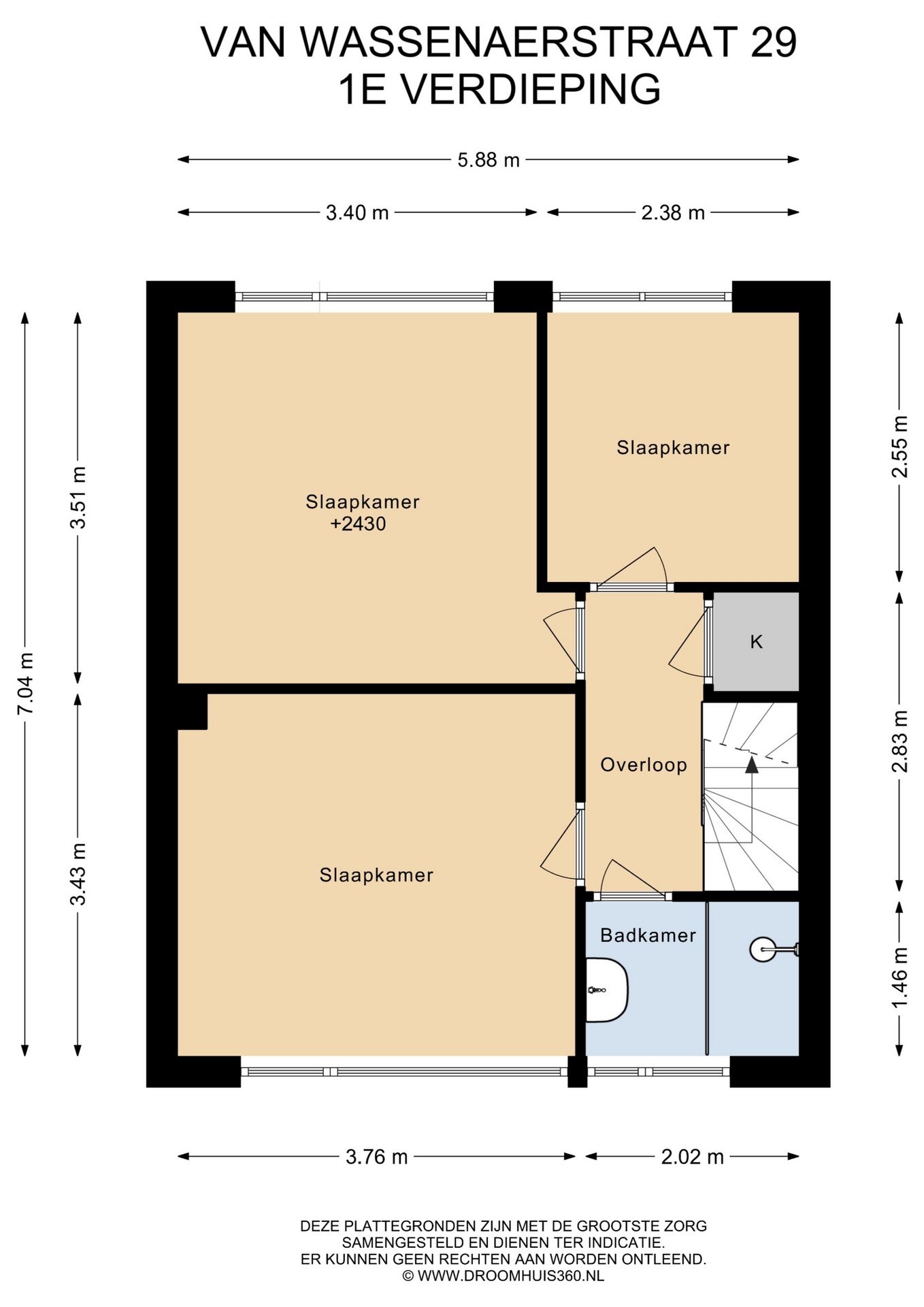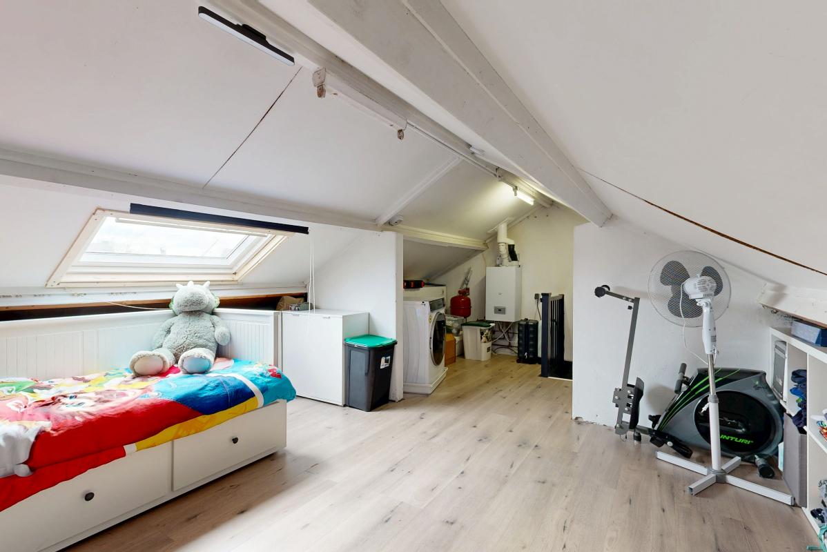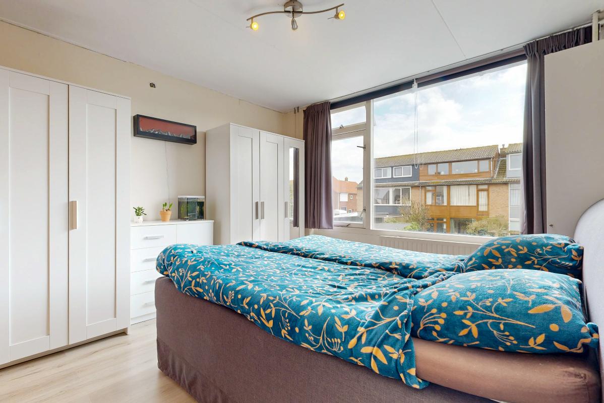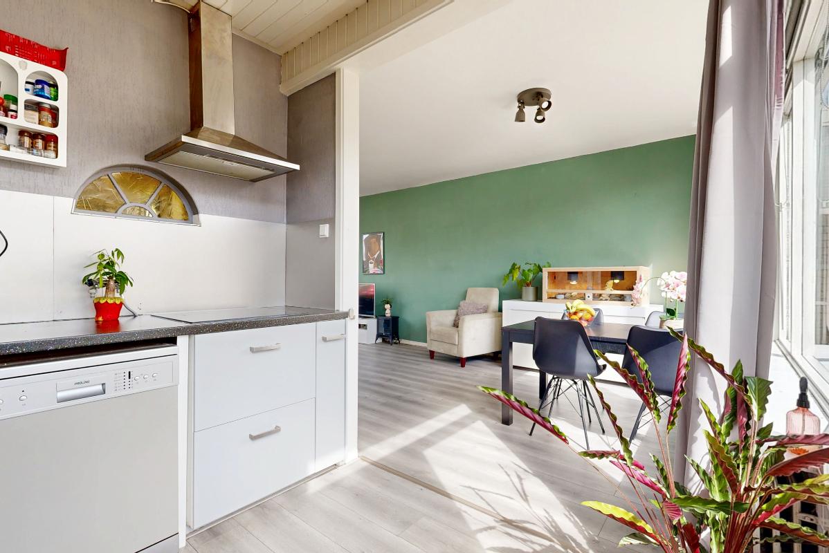 Binnenkomst vindt plaats via de entree met hal, meterkast (vernieuwd), toilet en trapopgang. De doorzon woonkamer is licht door de grote raampartijen en voorzien van een nette laminaatvloer. Aan de achterzijde bevindt zich de eigentijdse open keuken met toegang tot de achtertuin. Op de eerste verdieping zijn drie slaapkamers aanwezig, allen voorzien van laminaatvloeren, en een badkamer met douche en wastafel. De open zolderverdieping is bereikbaar via een vaste trap en beschikt over een dakraam, opstelplaats voor de c.v.-ketel en wasmachineaansluiting. Hier bestaat de mogelijkheid tot het realiseren van een extra slaapkamer.