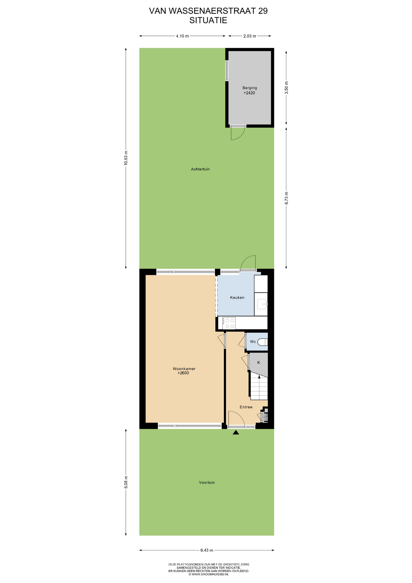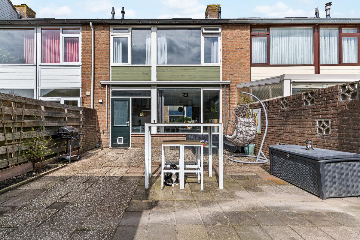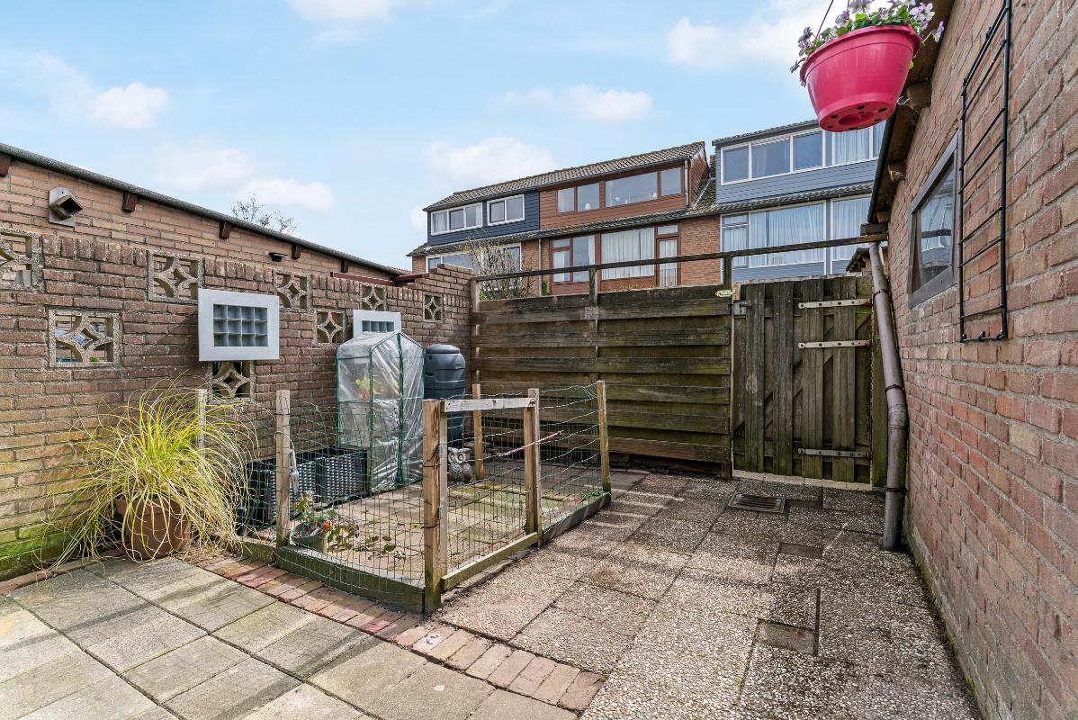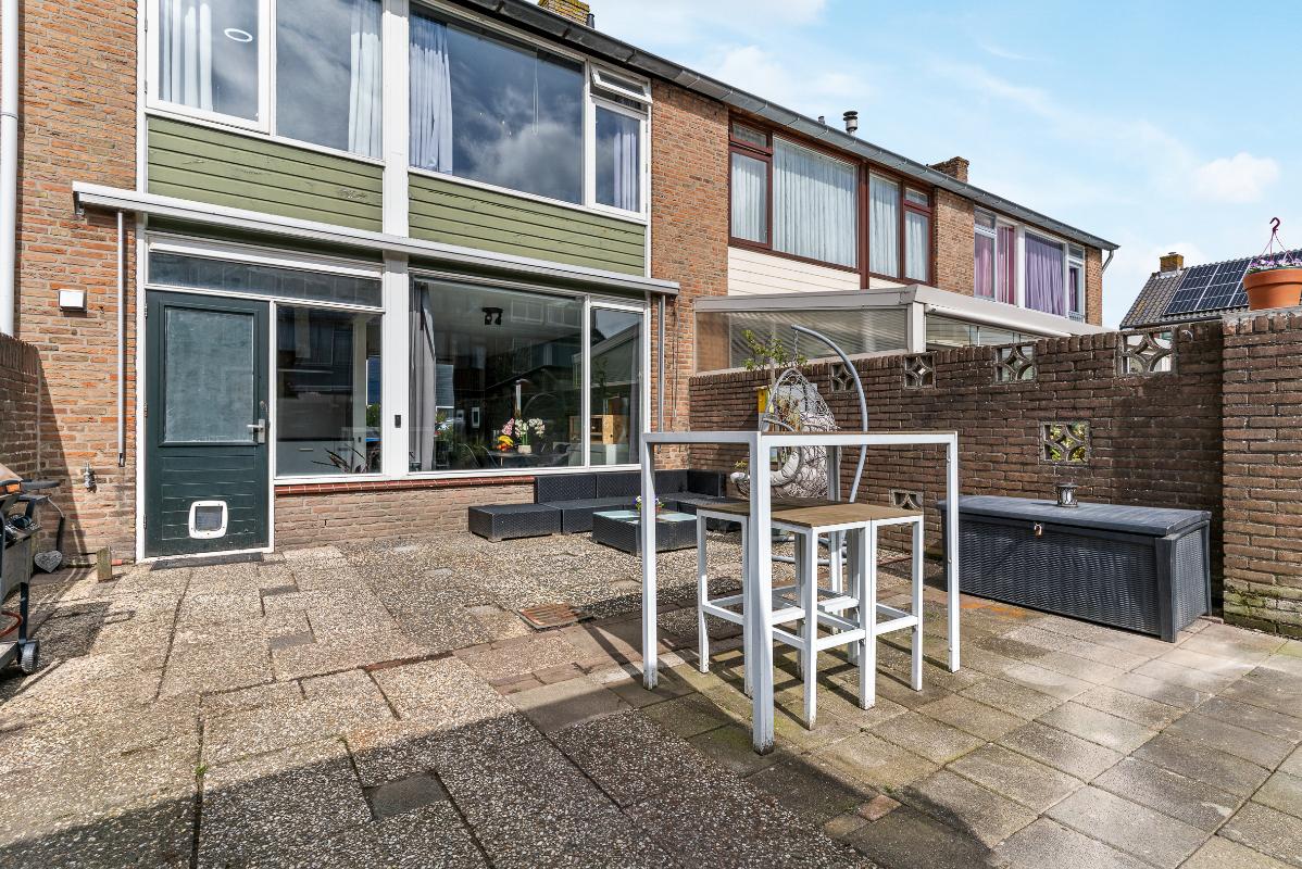 De ruime achtertuin met achterom is gelegen op het zuiden en beschikt over een vrijstaande stenen berging voorzien van elektra. De woning is verder uitgerust met handmatige buitenzonwering en grotendeels dubbel glas