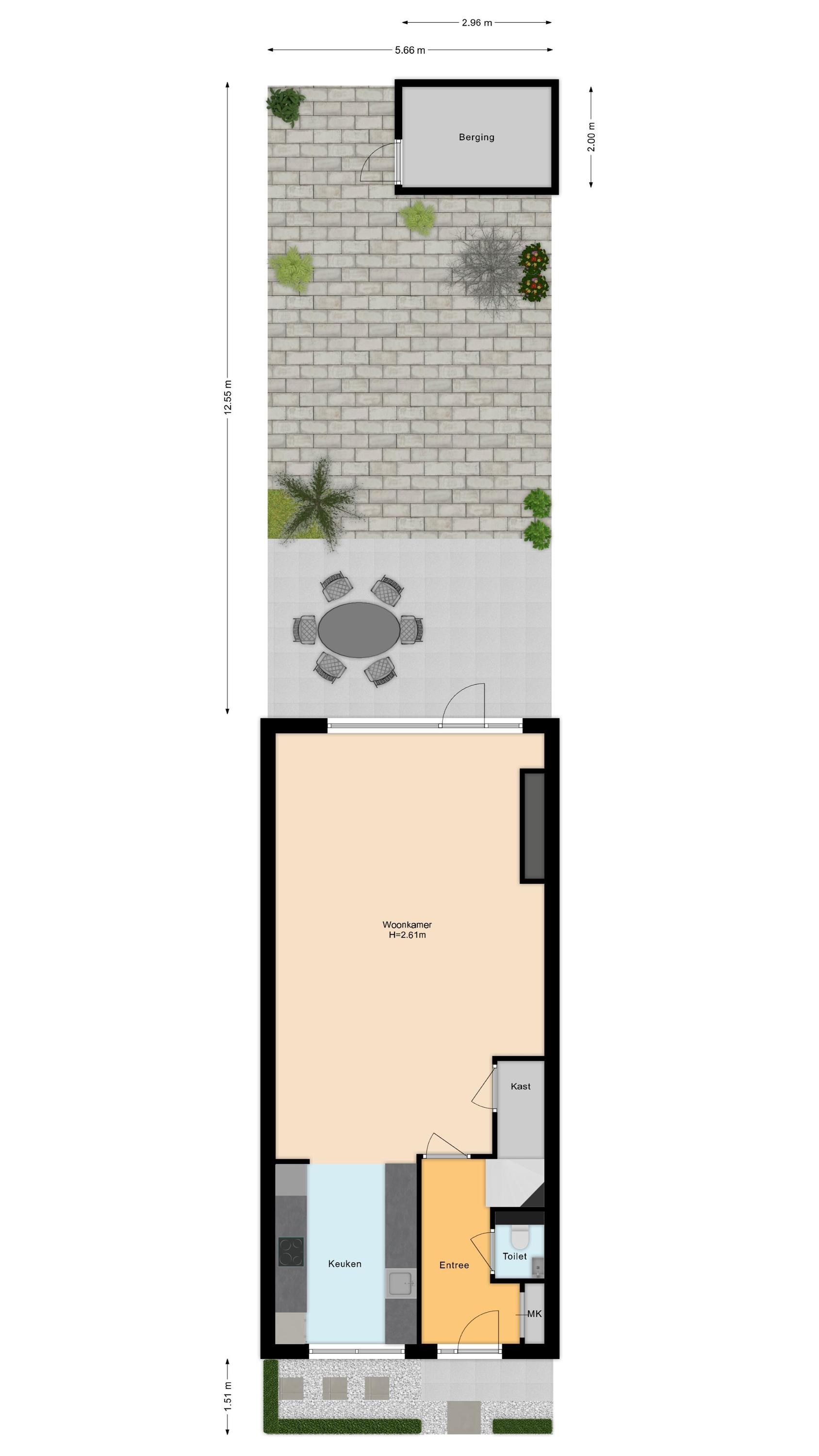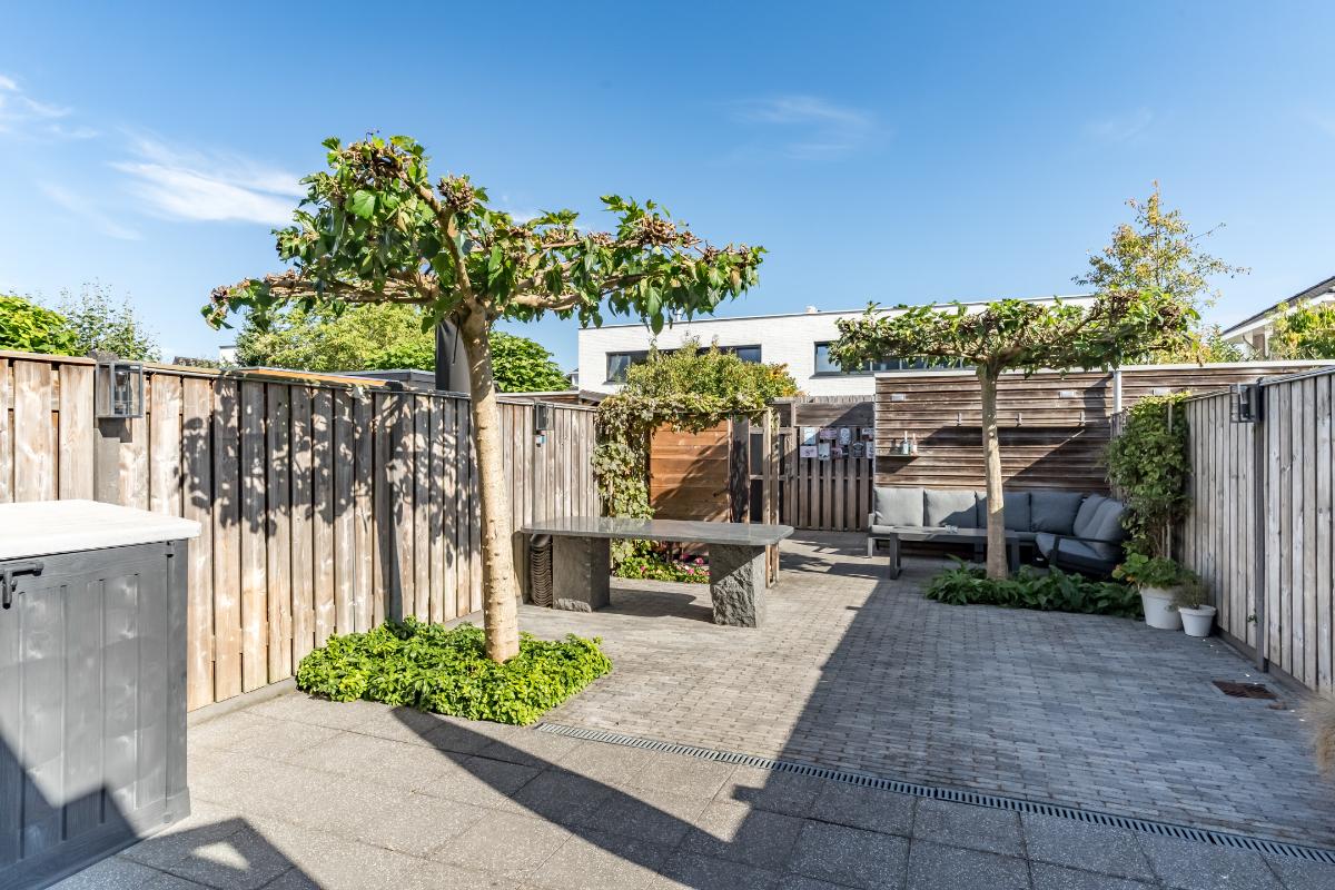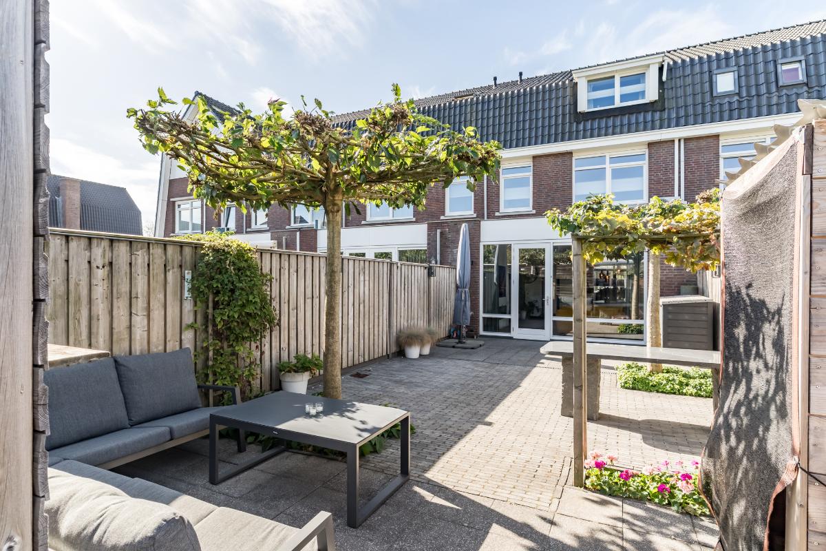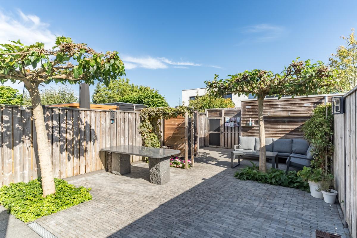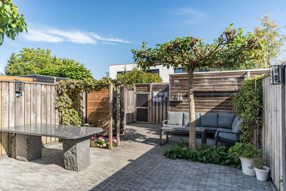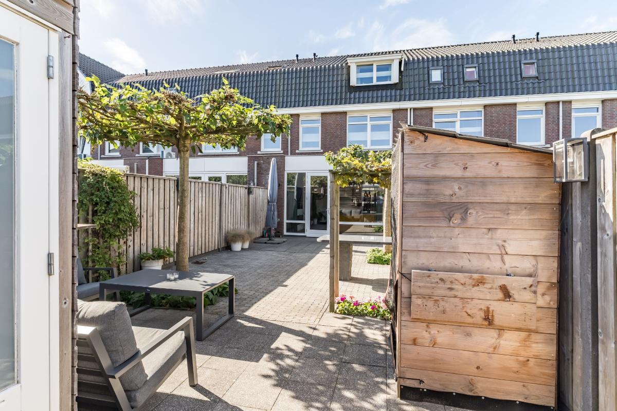 Tuin De zonnige, diepe achtertuin is een heerlijke plek voor jong en oud. Er is ruimte genoeg voor een loungeset en een grote eettafel en eventuele speeltoestellen. Helemaal achterin bevindt zich een houten berging met elektra en een achterom.