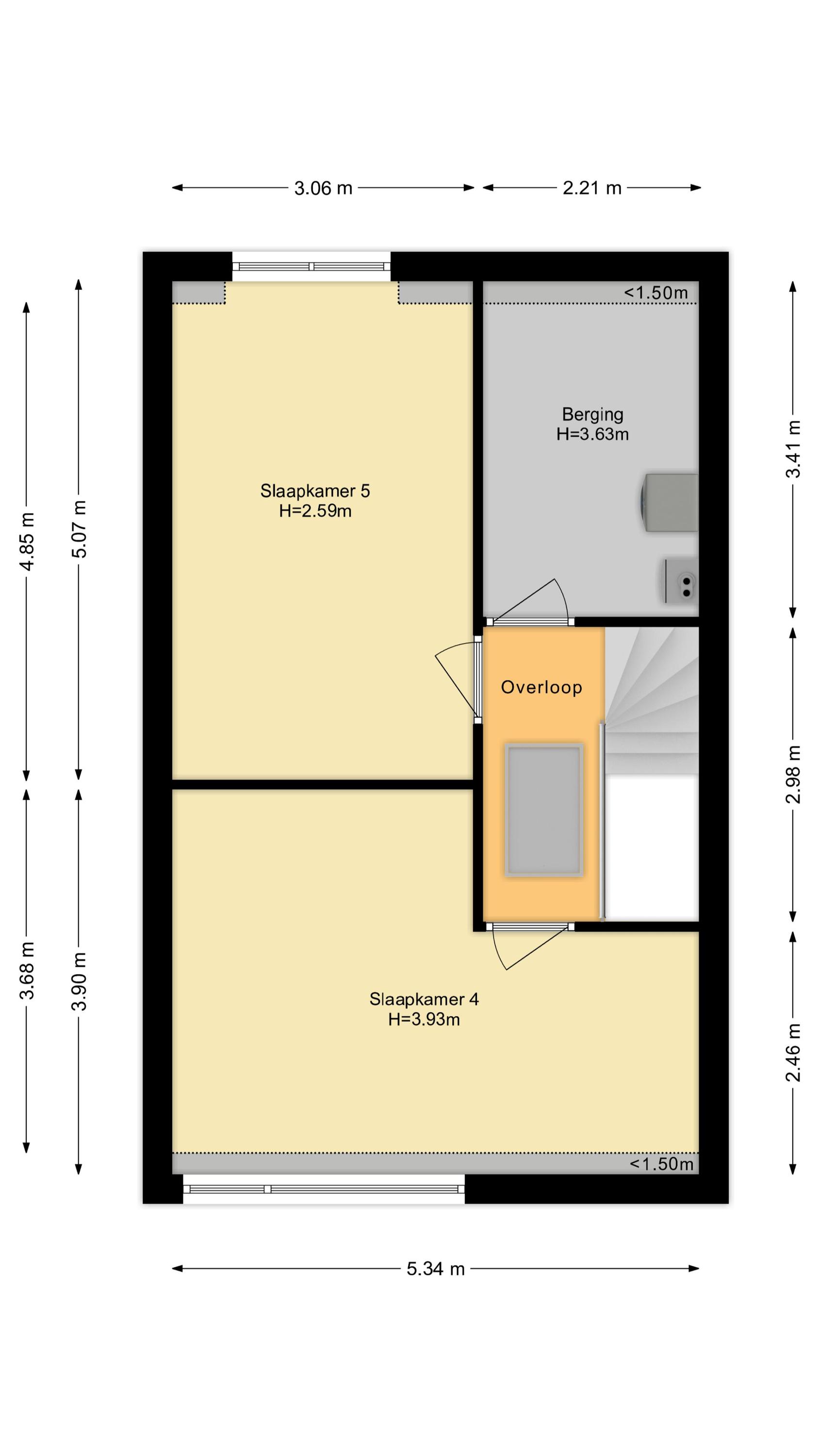 Tweede verdieping Via de vaste trap bereik je de tweede verdieping, met nog eens twee ruime slaapkamers, waarvan de slaapkamer aan de achterzijde ook een airco heeft en een aparte waskamer. De twee slaapkamers zijn ruim van opzet en hebben beide een dakkapel wat voor voldoende lichtinval zorgt.