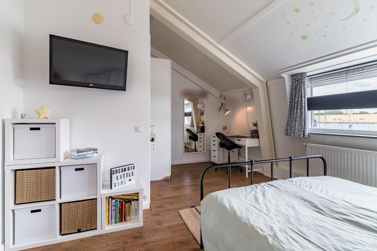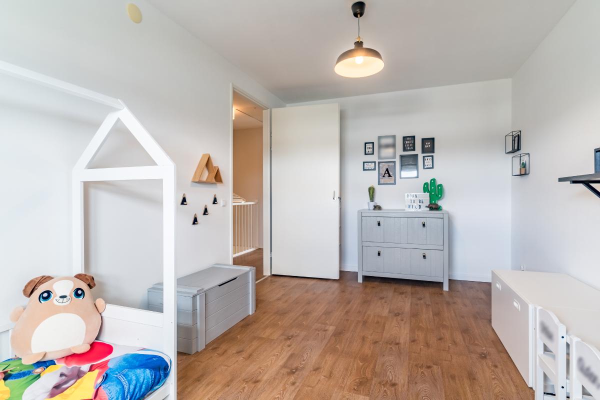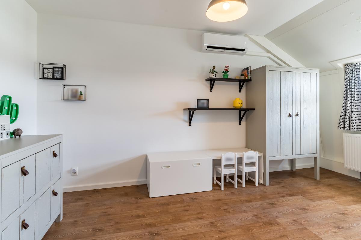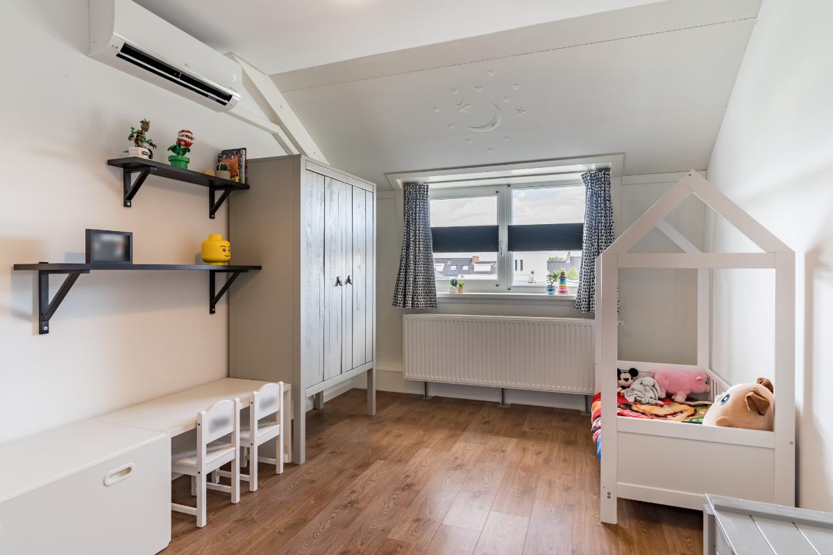 Slaapkamers Twee ruime kamers van circa 13 m² aan de voor- en achterzijde en een derde kamer van circa 8 m² bieden volop mogelijkheden als slaap-, werk- of hobbykamer. Alle kamers zijn voorzien van een keurige laminaatvloer en grotendeels strucwerkwanden. De slaapkamer aan de achterzijde heeft een airco.