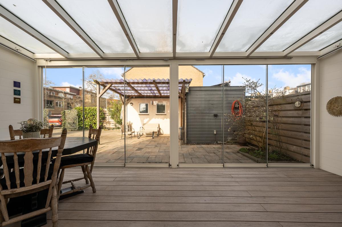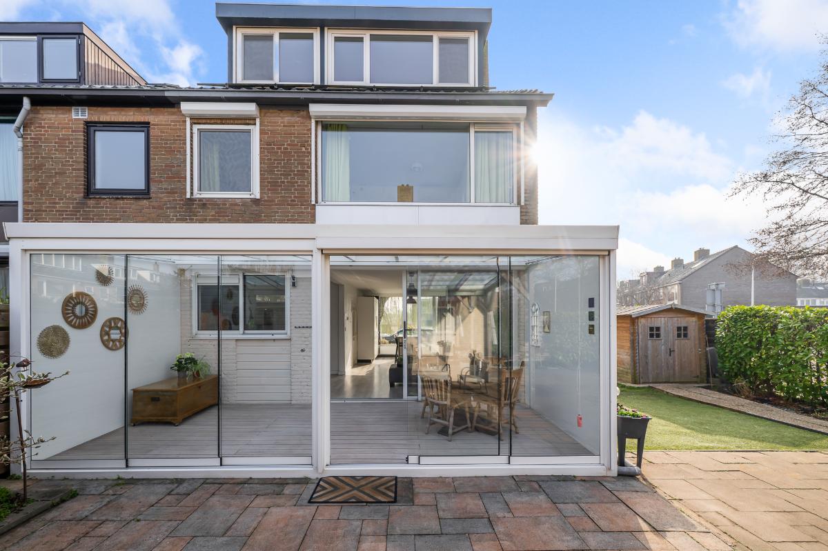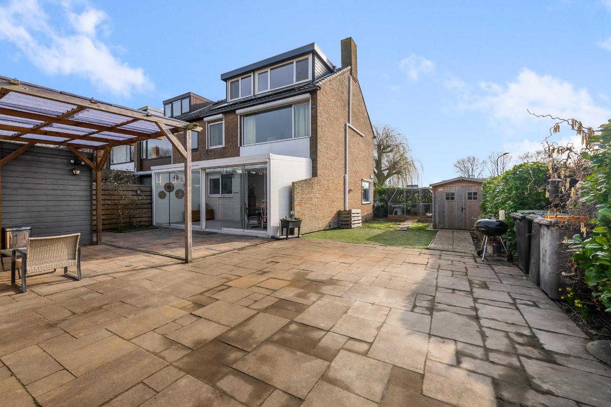 Een goed onderhouden woning, met veel lichtinval en een ruime tuin op de hoek. De woonkamer is gesitueerd tussen de open keuken met eiland en tuinkamer die te bereiken is via de schuifpui. De open keuken is voorzien van diverse inbouwapparatuur en bergruimte. De royale tuin op de hoek biedt ruimte voor diverse zitjes in zowel de zon als beschut in de tuinkamer, ook beschikt de tuin over een garage die helemaal omgetoverd is tot werkruimte. Op de 1e verdieping zijn er 3 slaapkamers en 1 badkamer. De slaapkamers beschikken allemaal over zonwering en de slaapkamer aan de voorzijde en achterzijde ook over airco. De tweede verdieping bevat een overloop met was-/stookruimte en een ruime slaapkamer met dakkapellen aan voor- en achterzijde. Ook deze slaapkamer heeft een airco en bergruimte. Dit huis ligt in een prachtige laan met veel parkeerruimte.