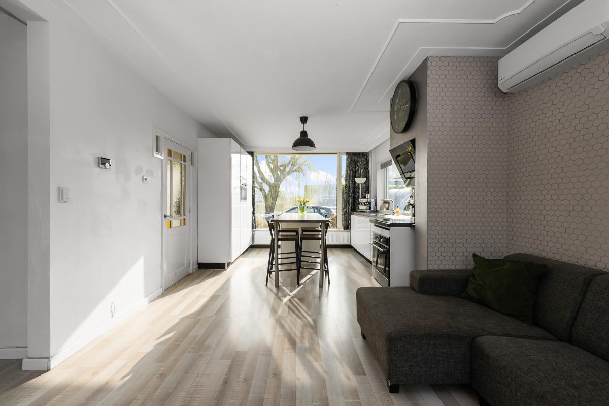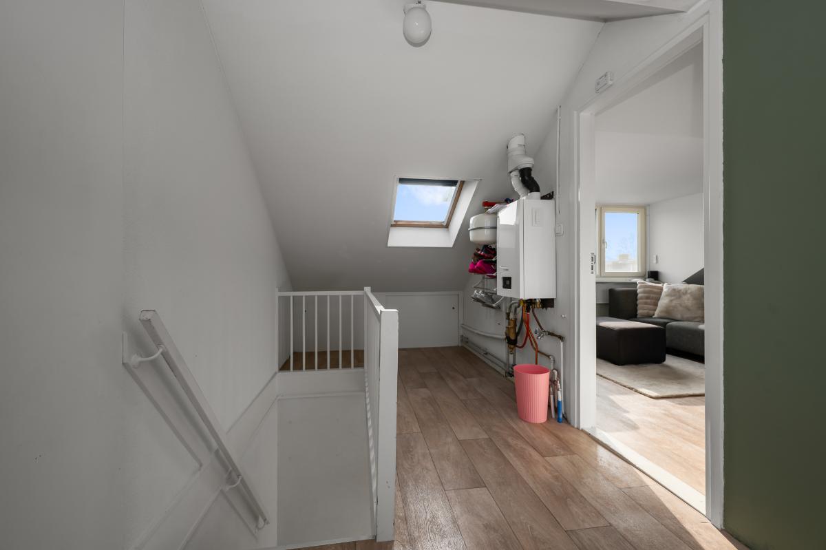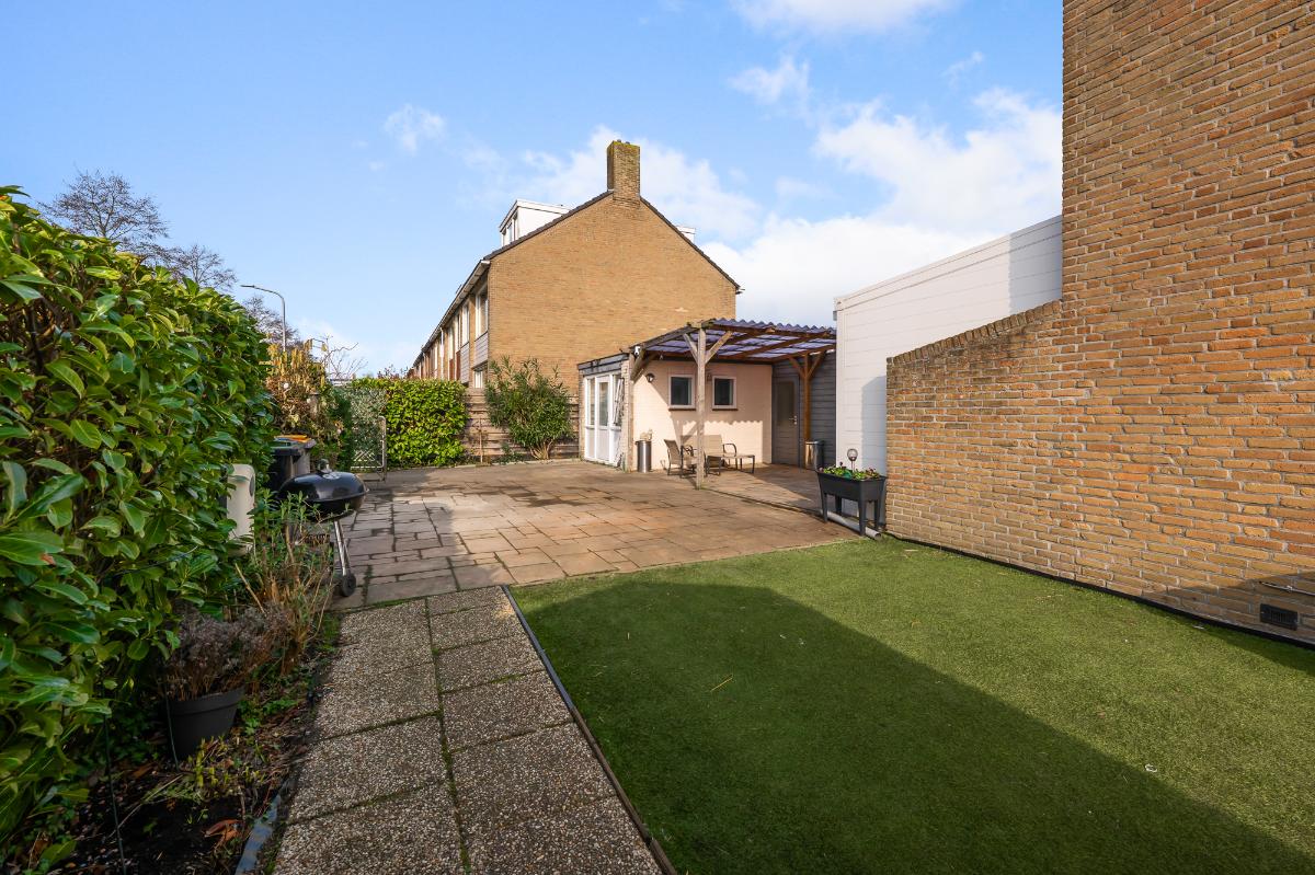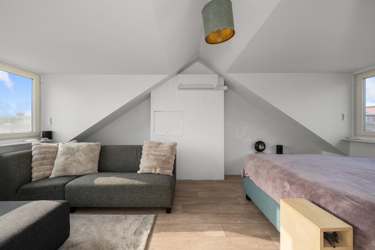 Een goed onderhouden woning, met veel lichtinval en een ruime tuin op de hoek. De woonkamer is gesitueerd tussen de open keuken met eiland en tuinkamer die te bereiken is via de schuifpui. De open keuken is voorzien van diverse inbouwapparatuur en bergruimte. De royale tuin op de hoek biedt ruimte voor diverse zitjes in zowel de zon als beschut in de tuinkamer, ook beschikt de tuin over een garage die helemaal omgetoverd is tot werkruimte. Op de 1e verdieping zijn er 3 slaapkamers en 1 badkamer. De slaapkamers beschikken allemaal over zonwering en de slaapkamer aan de voorzijde en achterzijde ook over airco. De tweede verdieping bevat een overloop met was-/stookruimte en een ruime slaapkamer met dakkapellen aan voor- en achterzijde. Ook deze slaapkamer heeft een airco en bergruimte. Dit huis ligt in een prachtige laan met veel parkeerruimte.