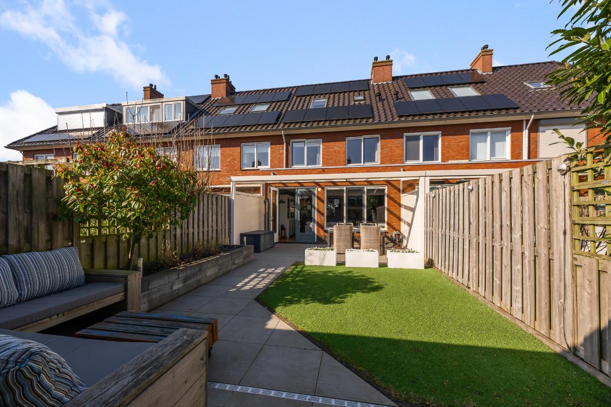 Deze moderne, uitgebouwde en goed geïsoleerde lichte woning ligt op een goede locatie met veel groen in de buurt. De woning heeft een dakkapel, veel ramen en een diepe, zonnige tuin met veranda. De woning is uitstekend ingedeeld, met een tuingerichte ruime woonkamer met prettige keuken, prima badkamer en 4 slaapkamers. Vanuit de woonkamer kunt u via de openslaande deuren naar de heerlijke zonnige, fraaie tuin met schuur en achterom.