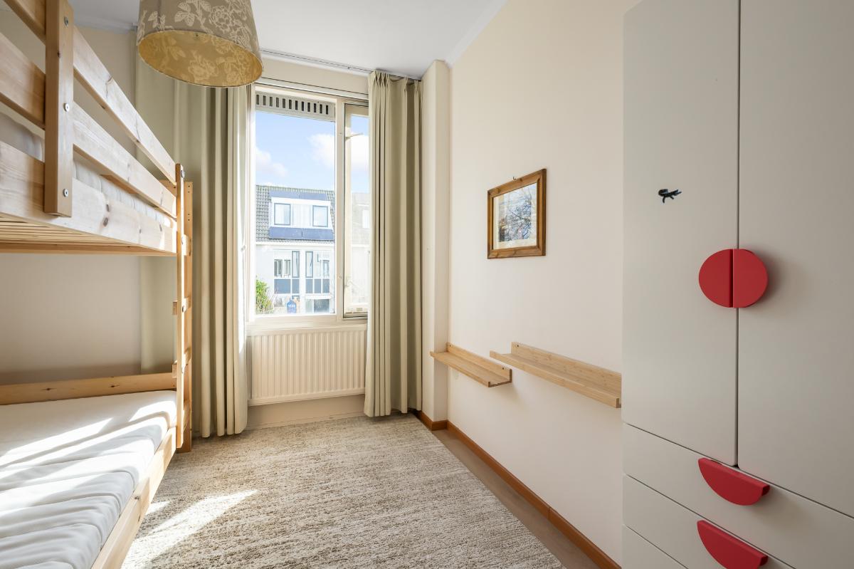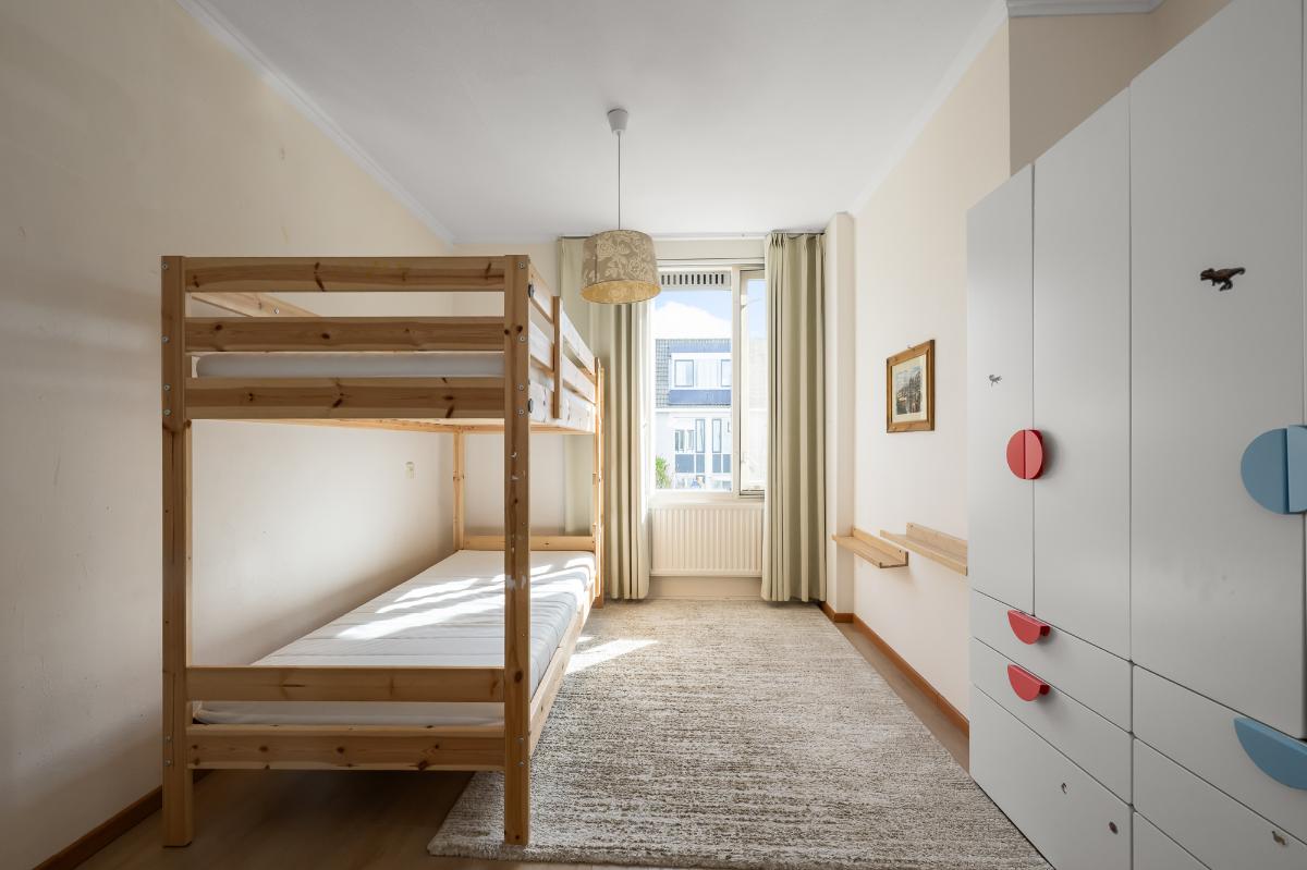 In dit lichte huis zijn nu 3 hele grote slaapkamers maar er zijn heel eenvoudig 5 goede kamers te maken! Via de hal met toilet met fontein en meterkast vind u toegang tot de ruim uitgebouwde woonkamer. De woonkamer heeft een open keuken voorzien van diverse inbouwapparatuur en aan de achterzijde een deur met toegang tot de veranda. Op de eerste verdieping zijn 2 slaapkamers (eenvoudig 3 te maken) en een badkamer met ligbad, wastafel en toilet waarbij de achterzijde van de verdieping is uitgebouwd. De 2e verdieping is v.v. een dakkapel en geeft toegang tot een hele ruime slaapkamer (2 kamers eenvoudig te maken) en er is een aparte was-/stookkamer..
