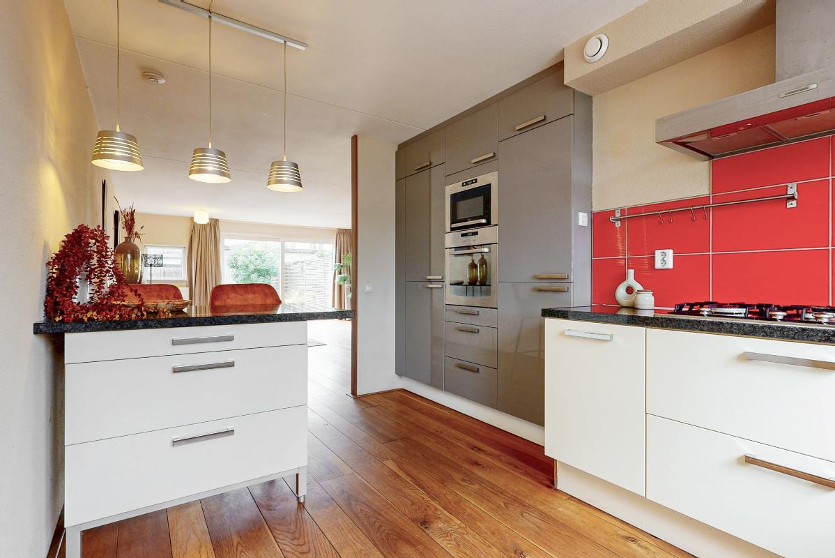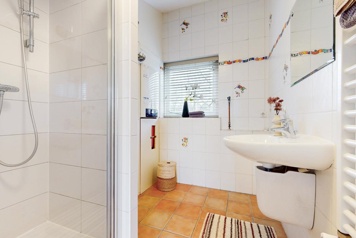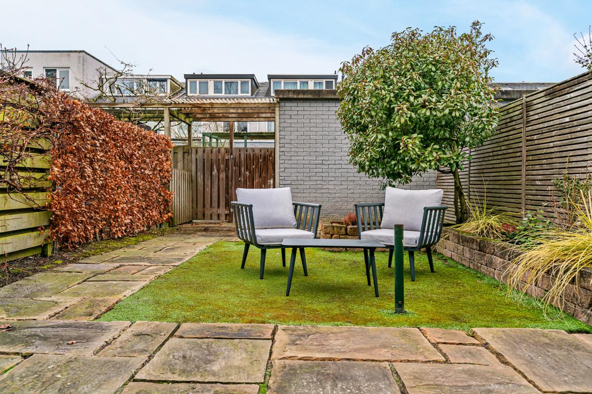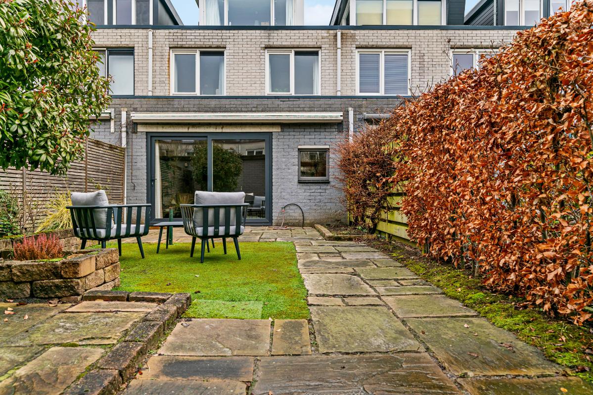 Je komt binnen via de ruime hal, compleet met toilet, meterkast en handige trapkast voor extra opbergruimte. Vanuit de hal stap je direct de uitgebouwde, lichte woonkamer in. Deze biedt volop plek voor een gezellige zithoek én een apart eetgedeelte. Dankzij de schuifpui naar de tuin is er veel natuurlijk licht en een fijne verbinding met buiten. Aan de voorzijde ligt de half open keuken, voorzien van alle gewenste inbouwapparatuur, veel opbergruimte en een gezellig barretje. De praktische indeling zorgt ervoor dat koken en wonen mooi gescheiden blijven, terwijl je toch contact houdt met het gezin. Op de eerste verdieping bereik je via de overloop met handige bergkast drie ruime slaapkamers: twee aan de achterzijde en een master bedroom aan de voorzijde. Alle kamers zijn royaal en flexibel in te delen, bijvoorbeeld als werk- of slaapkamer. De complete badkamer op deze verdieping is voorzien van een ligbad met douche, wastafel met meubel en toilet; ideaal voor het hele gezin. Via de trap kom je op de tweede verdieping, met een overloop die toegang geeft tot twee slaapkamers. Aan de voorzijde ligt een fijne slaapkamer. Aan de achterzijde vind je een ruime slaapkamer met dakkapel, airco en extra opbergruimte in de netjes weggewerkte knieschotten. Hier is ook de tweede badkamer met douche en wastafel, plus de keurig in kastruimte verwerkte stookruimte. Vanuit de woonkamer stap je via de schuifpui zo de fijne, ruime achtertuin in, gelegen op het westen. Hier kun je ’s middags en ’s avonds heerlijk van de zon genieten. De tuin is groen en verzorgd, met een vrijstaande stenen berging en een achterom voor extra gemak.