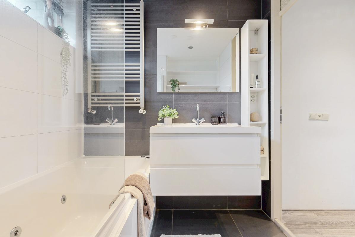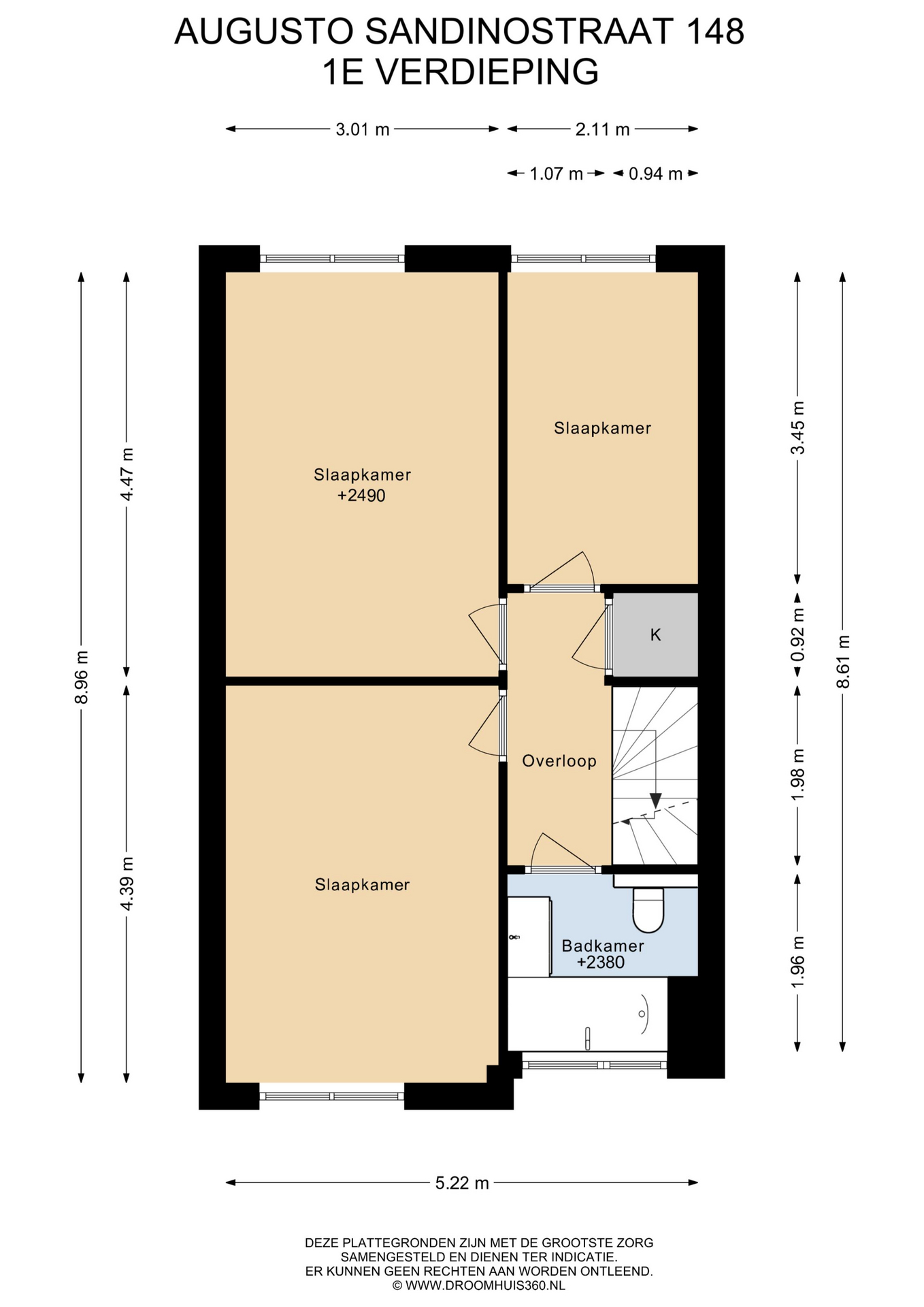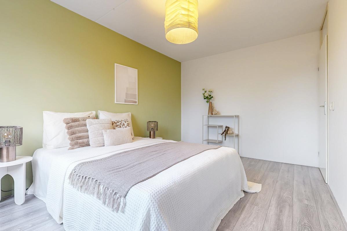 Je komt binnen via de ruime hal, compleet met toilet, meterkast en handige trapkast voor extra opbergruimte. Vanuit de hal stap je direct de uitgebouwde, lichte woonkamer in. Deze biedt volop plek voor een gezellige zithoek én een apart eetgedeelte. Dankzij de schuifpui naar de tuin is er veel natuurlijk licht en een fijne verbinding met buiten. Aan de voorzijde ligt de half open keuken, voorzien van alle gewenste inbouwapparatuur, veel opbergruimte en een gezellig barretje. De praktische indeling zorgt ervoor dat koken en wonen mooi gescheiden blijven, terwijl je toch contact houdt met het gezin. Op de eerste verdieping bereik je via de overloop met handige bergkast drie ruime slaapkamers: twee aan de achterzijde en een master bedroom aan de voorzijde. Alle kamers zijn royaal en flexibel in te delen, bijvoorbeeld als werk- of slaapkamer. De complete badkamer op deze verdieping is voorzien van een ligbad met douche, wastafel met meubel en toilet; ideaal voor het hele gezin. Via de trap kom je op de tweede verdieping, met een overloop die toegang geeft tot twee slaapkamers. Aan de voorzijde ligt een fijne slaapkamer. Aan de achterzijde vind je een ruime slaapkamer met dakkapel, airco en extra opbergruimte in de netjes weggewerkte knieschotten. Hier is ook de tweede badkamer met douche en wastafel, plus de keurig in kastruimte verwerkte stookruimte. Vanuit de woonkamer stap je via de schuifpui zo de fijne, ruime achtertuin in, gelegen op het westen. Hier kun je ’s middags en ’s avonds heerlijk van de zon genieten. De tuin is groen en verzorgd, met een vrijstaande stenen berging en een achterom voor extra gemak.