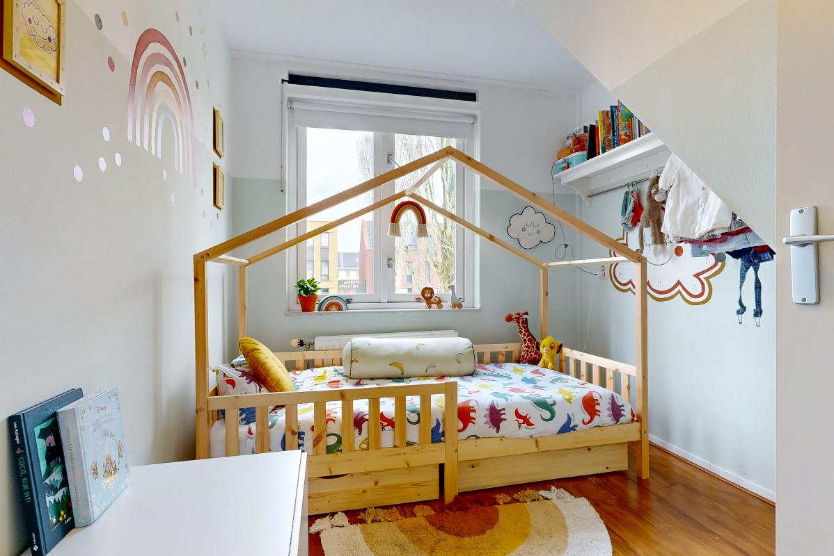 Op de eerste verdieping bevinden zich drie ruime slaapkamers en een nette badkamer. De badkamer is voorzien van een ligbad, douche, wastafel en toilet. De tweede verdieping biedt een royale zolderverdieping met veel mogelijkheden. Zo vind je hier een royale vierde slaapkamer met veel lichtinval, dankzij de dakkapel. Ook de royale overloop is heerlijk licht dankzij de ramen. Op zolder bevindt zich de aansluiting voor de wasmachine, keurig weggewerkt, en veel extra bergruimte.