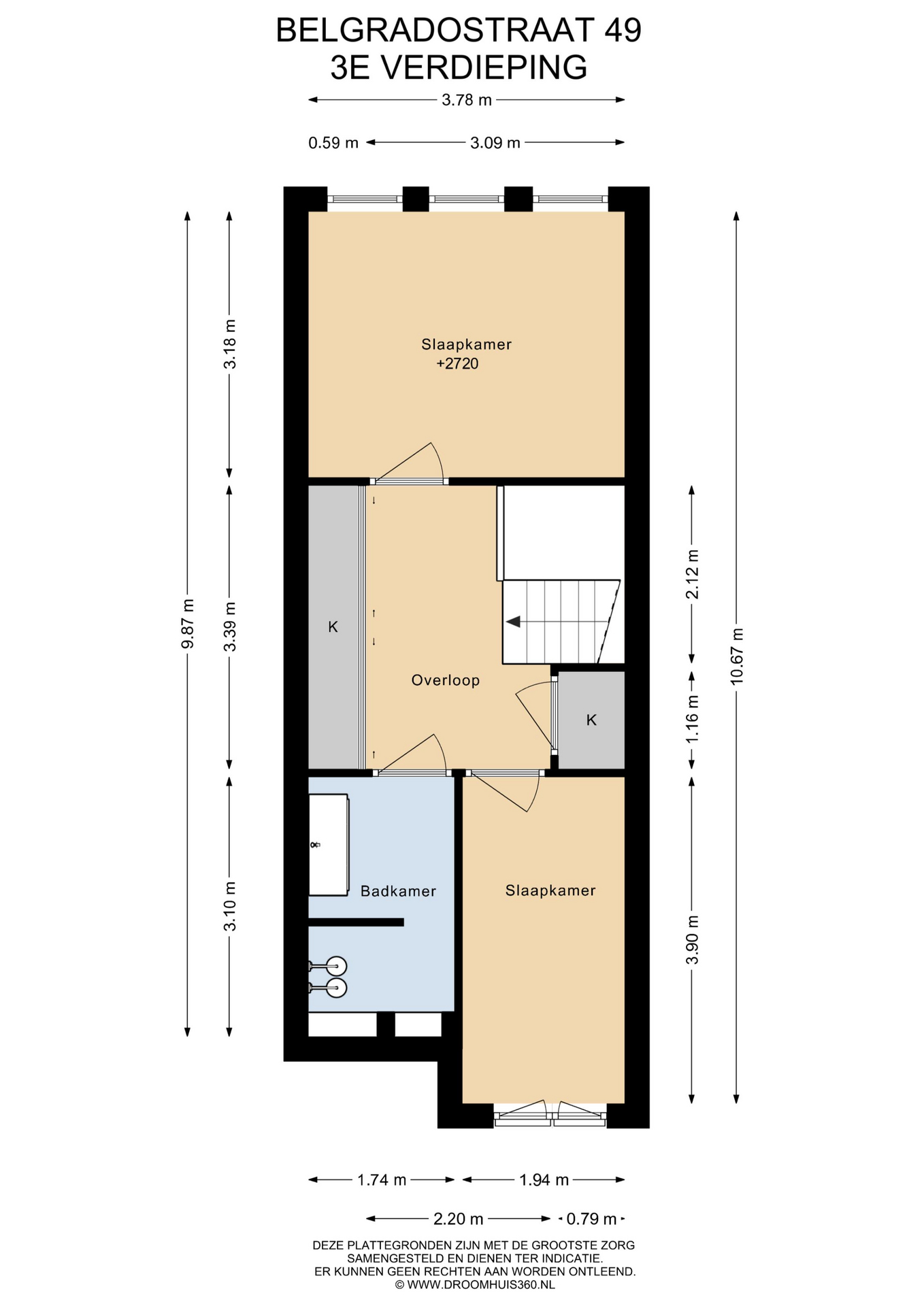 De derde etage biedt vanuit de overloop toegang tot de ruime badkamer met royale inloopdouche en wastafelmeubel en tot twee comfortabele slaapkamers. De ruime hoofdslaapkamer beschikt over drie grote ramen, waardoor er volop daglicht binnenvalt. De slaapkamer aan de voorzijde heeft een groot raam met een Frans balkon, wat de woning extra charme en karakter geeft.