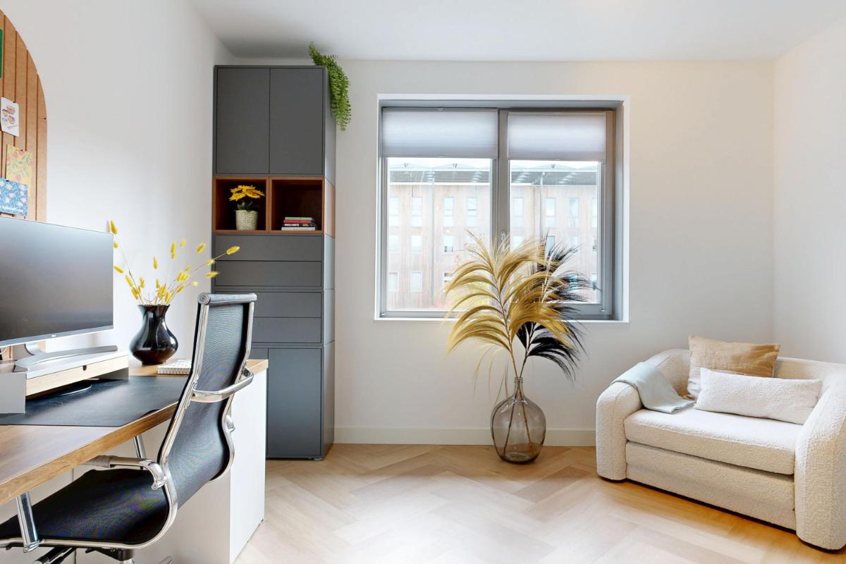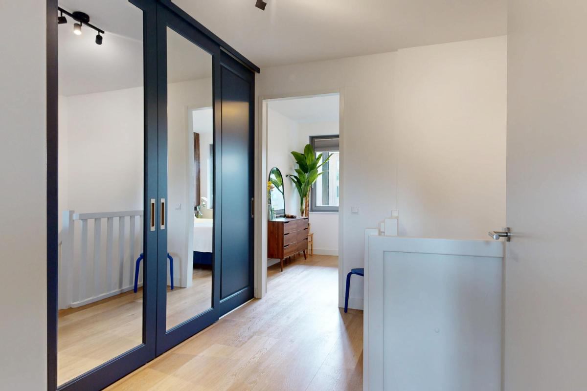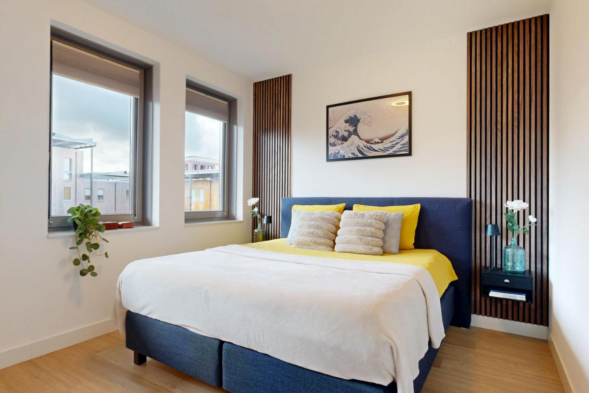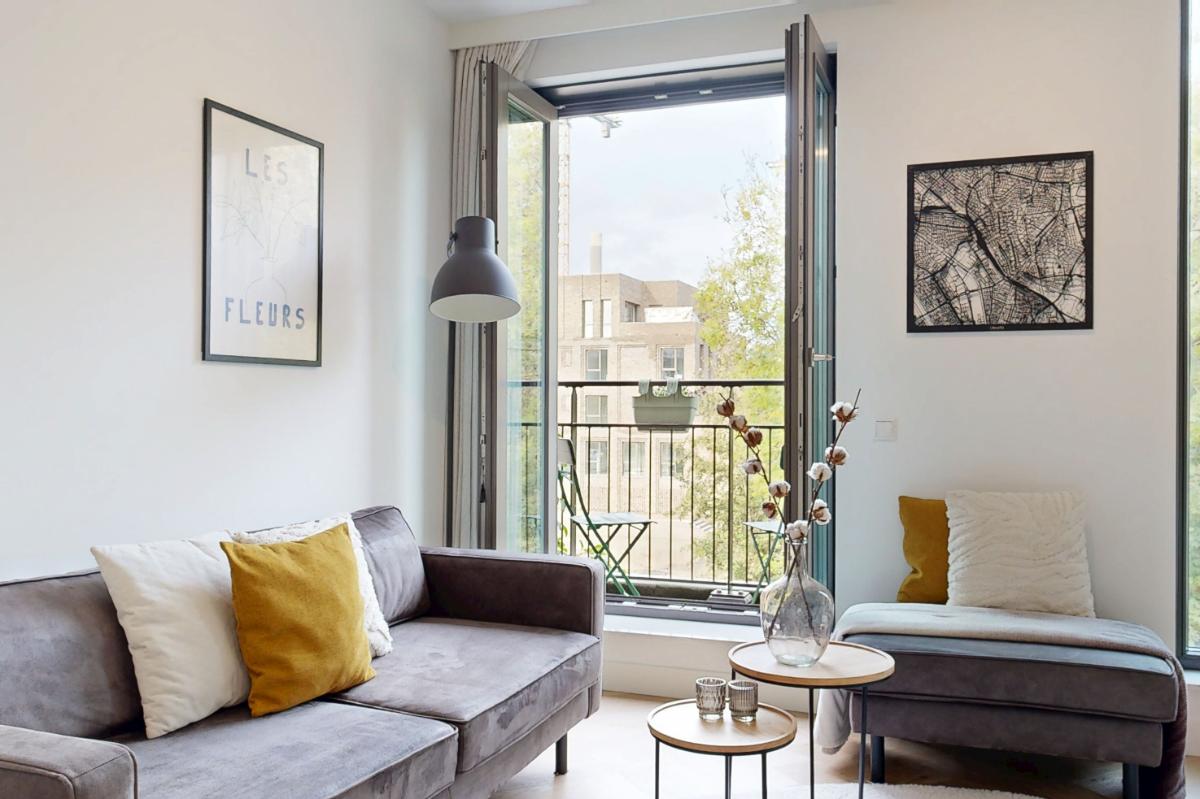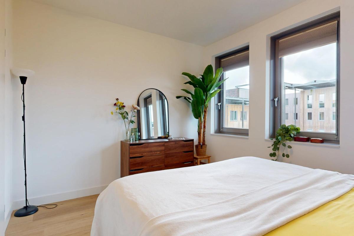 Op de tweede etage kom je uit op een ruime overloop met een separaat toilet en een praktische wasruimte voor de wasmachine en droger. Aan de voorzijde ligt de woonkamer: een lichte, comfortabele ruimte met veel daglicht en een klein balkon, met uitzicht op groen en water. Aan de achterzijde bevindt zich een veelzijdige kamer — ideaal voor thuiswerken of als extra slaapkamer. De hoogwaardige afwerking zorgt voor een moderne, verfijnde uitstraling.