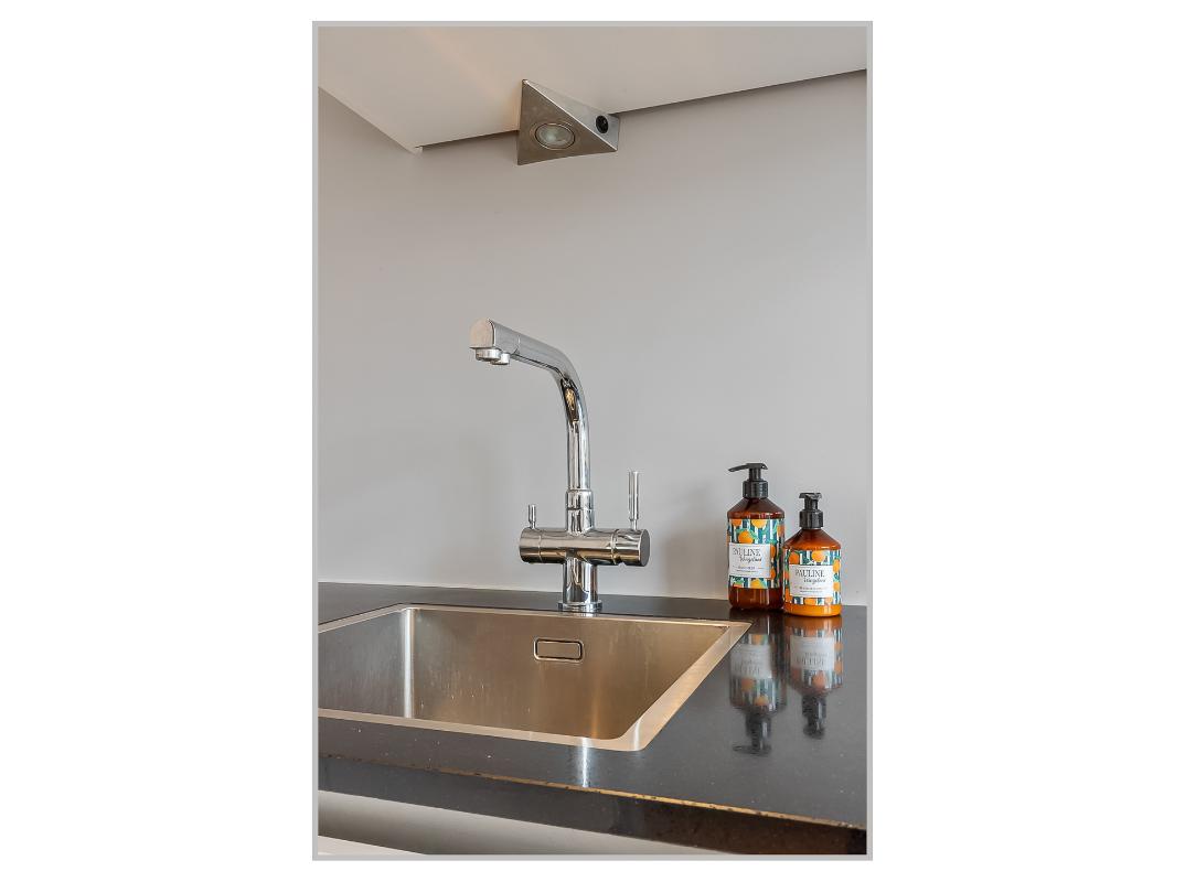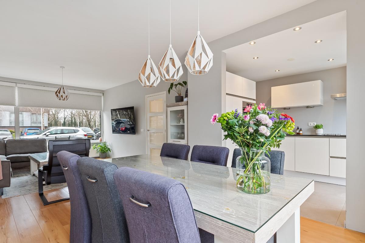 Begane grond: entree, ruime hal met garderobe, toilet met fontein, trapkast. Zeer royale en lichte woonkamer met schuifpui aan de achterzijde en open keuken. De wanden zijn glad gestuukt. De woonkamer is voorzien van een airco-installatie. De open keuken is vernieuwd in 2020 en is voorzien van een koelkast, vriezer, inductiekookplaat, afzuigkap, combioven en een vaatwasser. De keuken is voorzien van vloerverwarming.